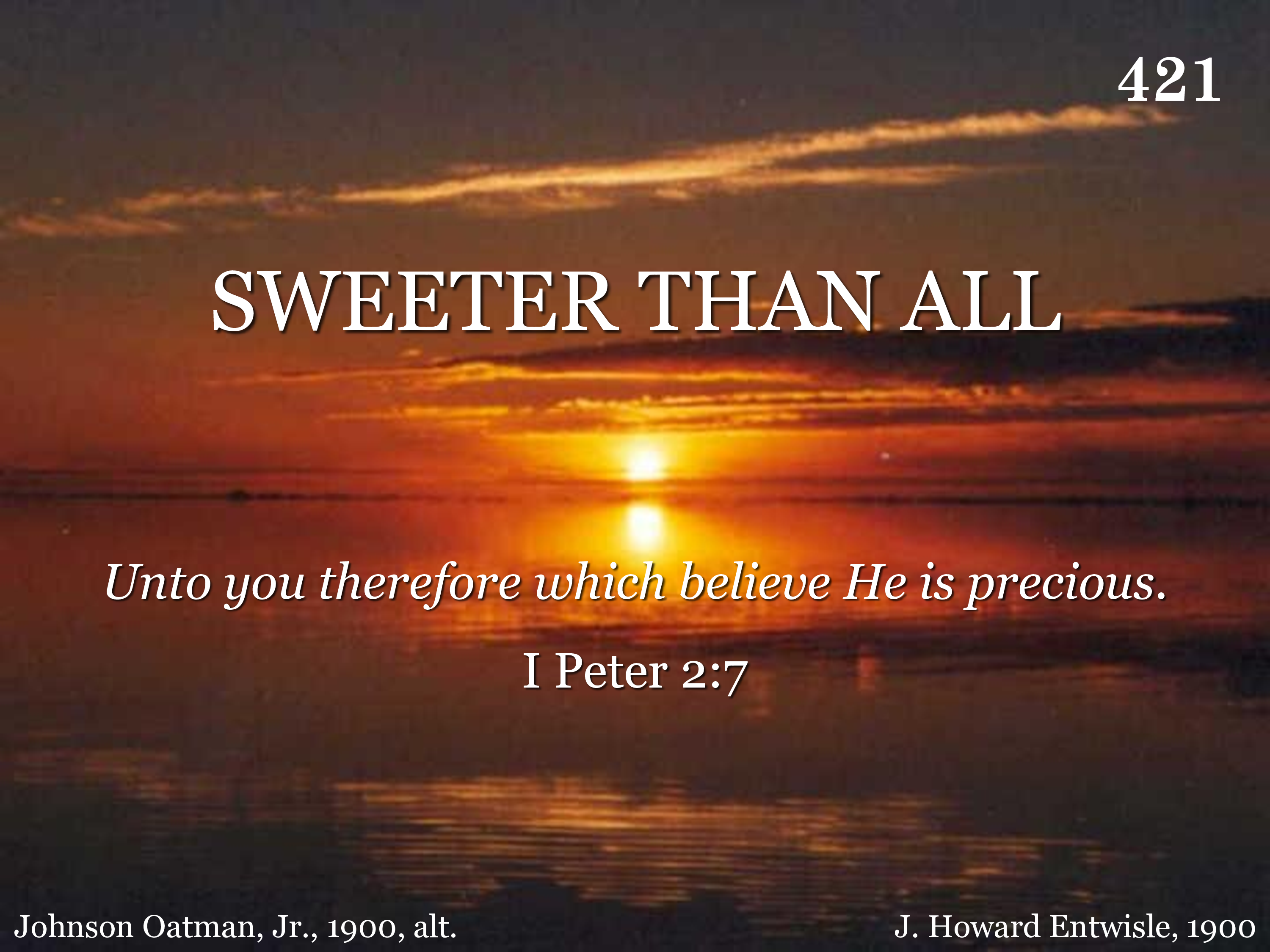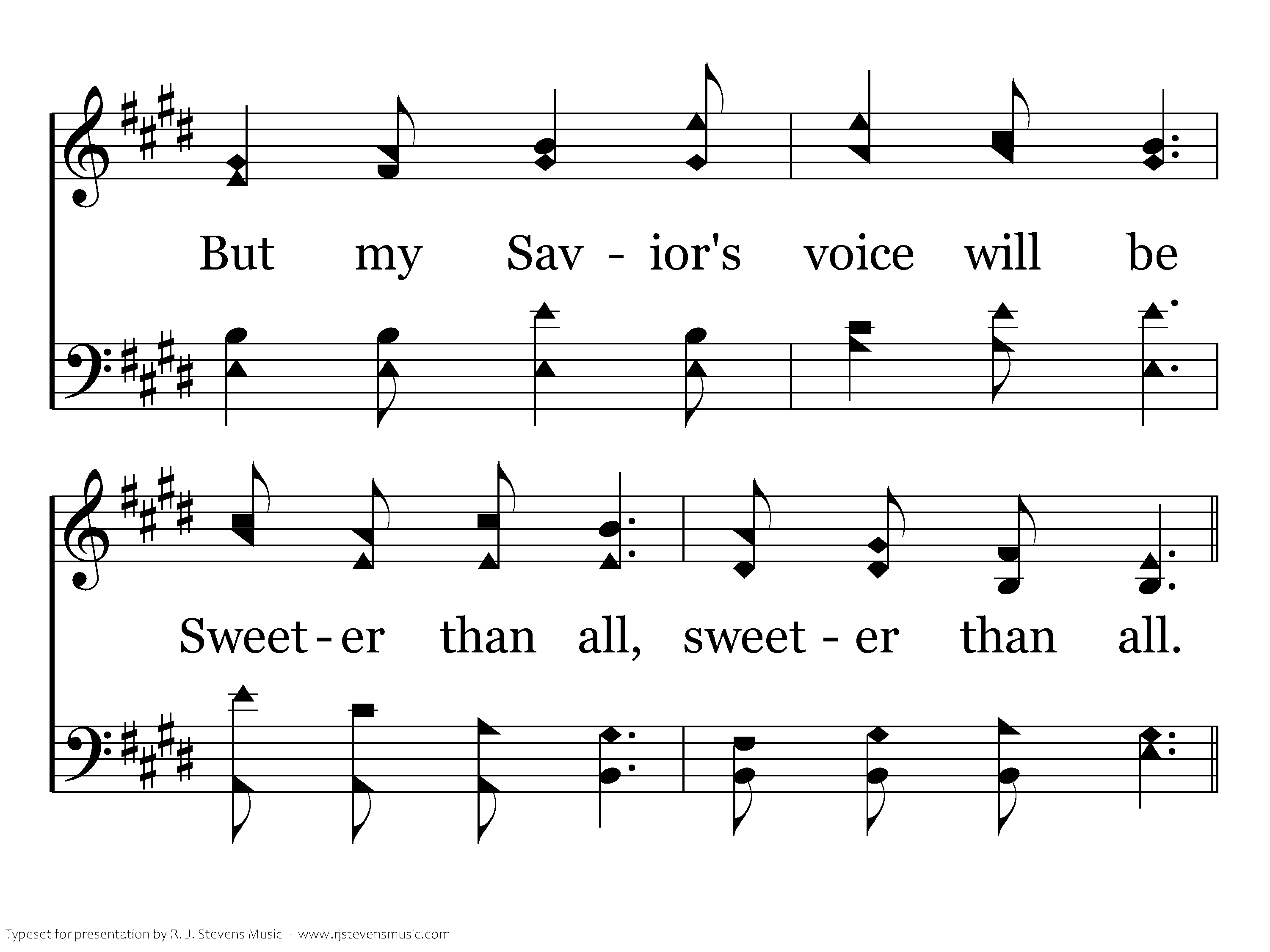 Jesus is now and ever will be, Sweeter than all the world to me, Since I heard His loving call, Sweeter than all, sweeter than all.
