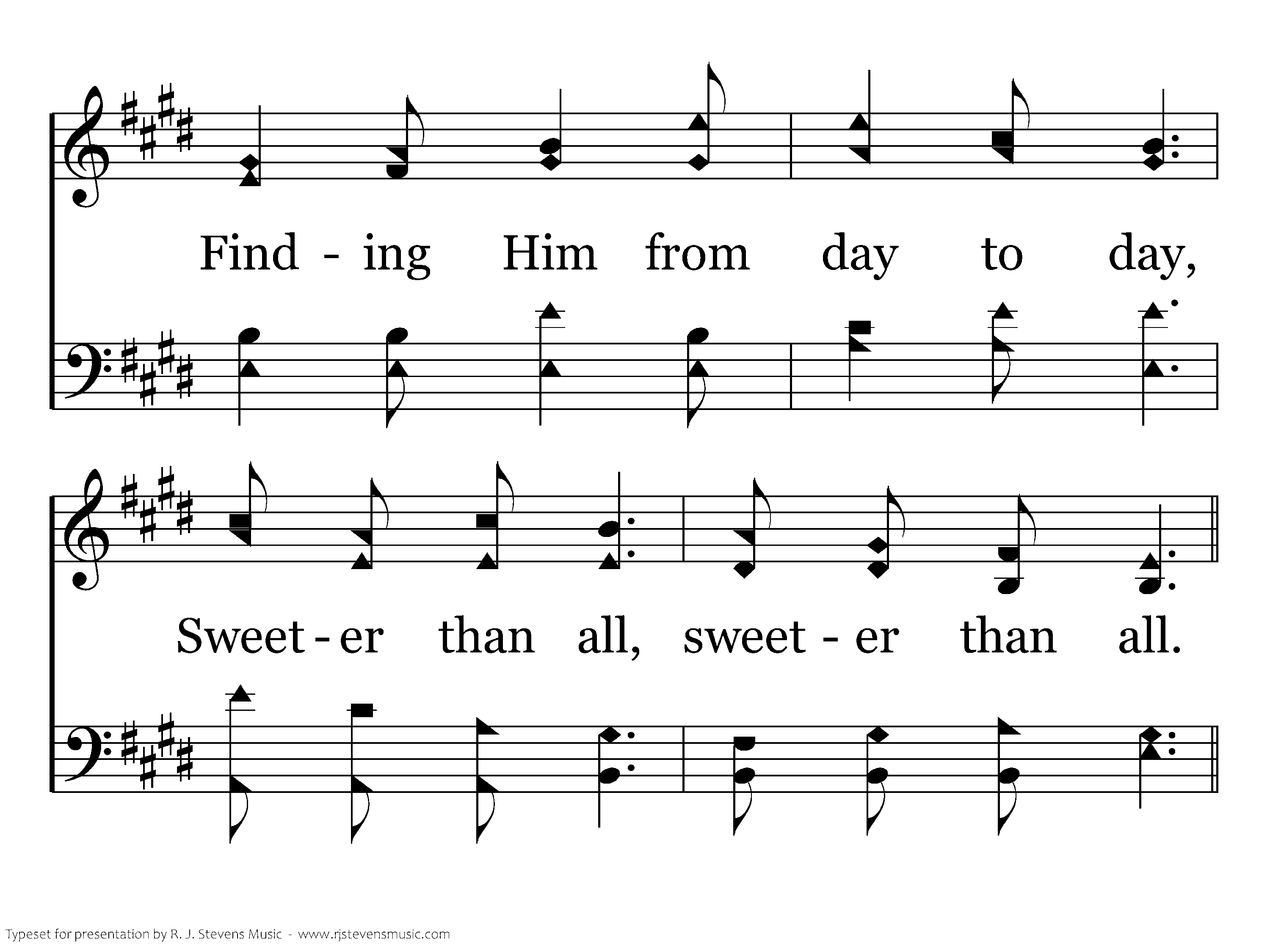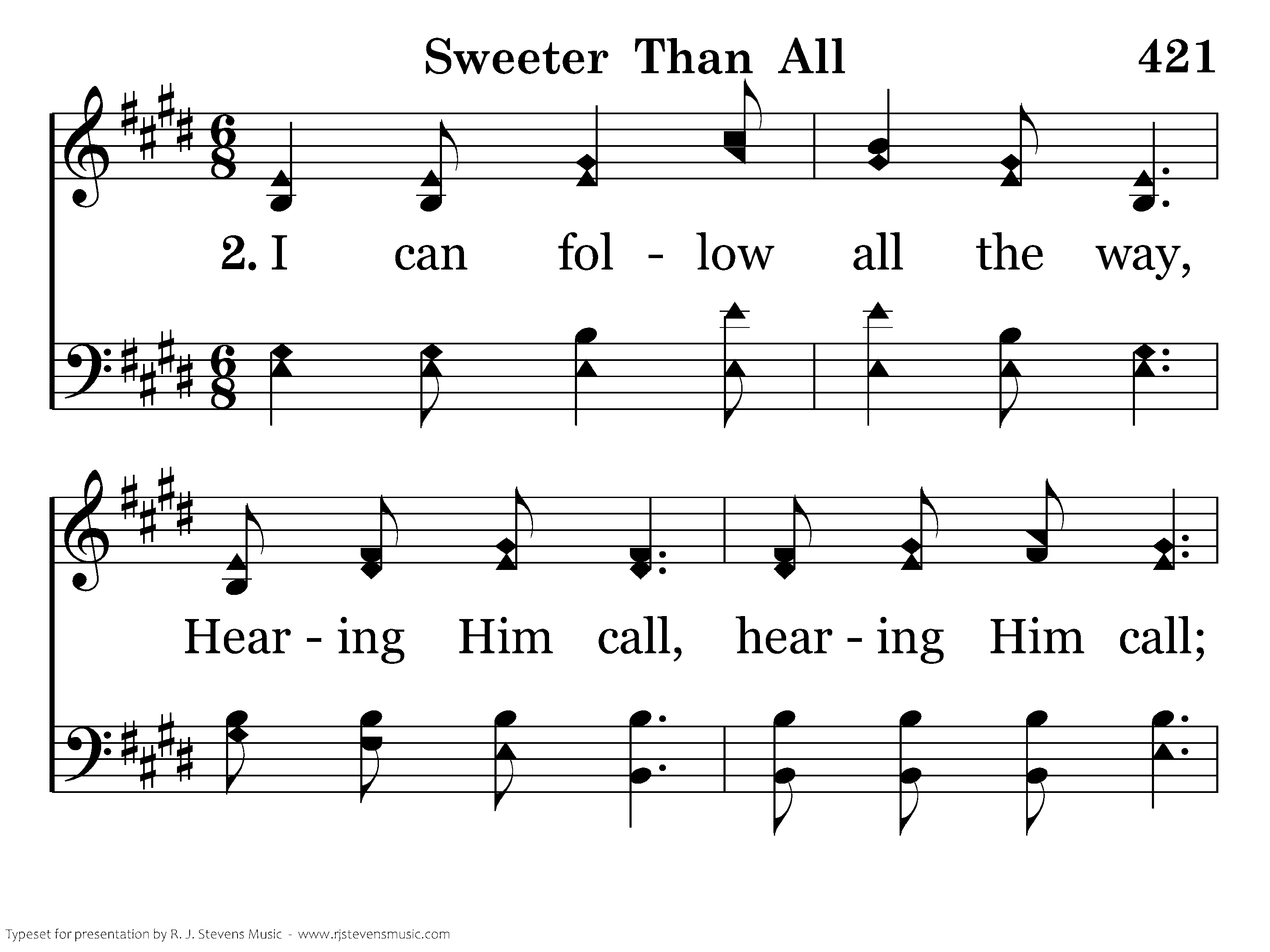 I can follow all the way, Hearing Him call, hearing Him call; Finding Him from day to day, Sweeter than all, sweeter than all.