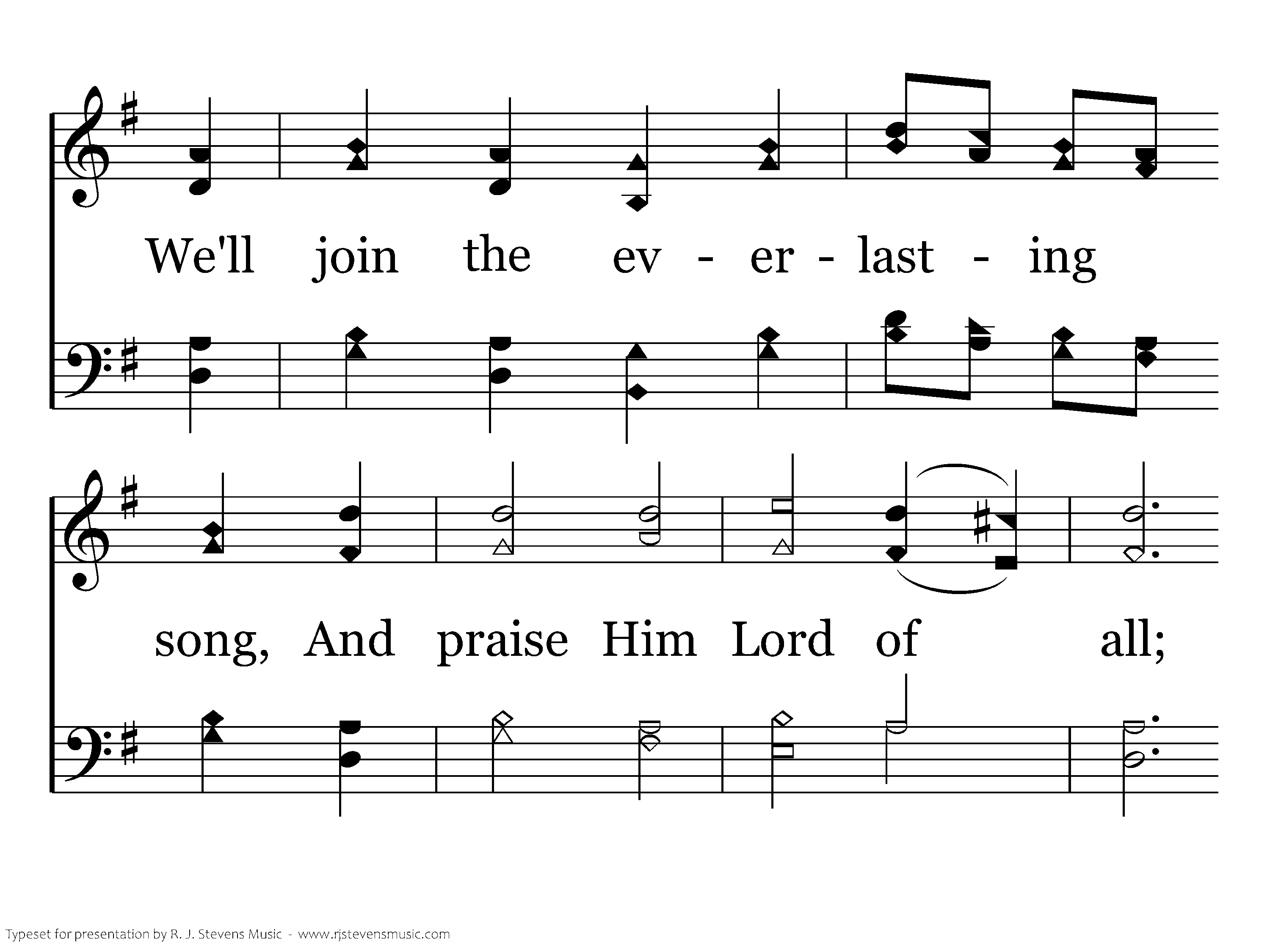 Let ev-'ry kindred, ev'ry tribe, On this terrestrial ball, To Him all majesty ascribe, And crown Him Lord of all; To Him all majesty ascribe, And crown Him Lord of all.