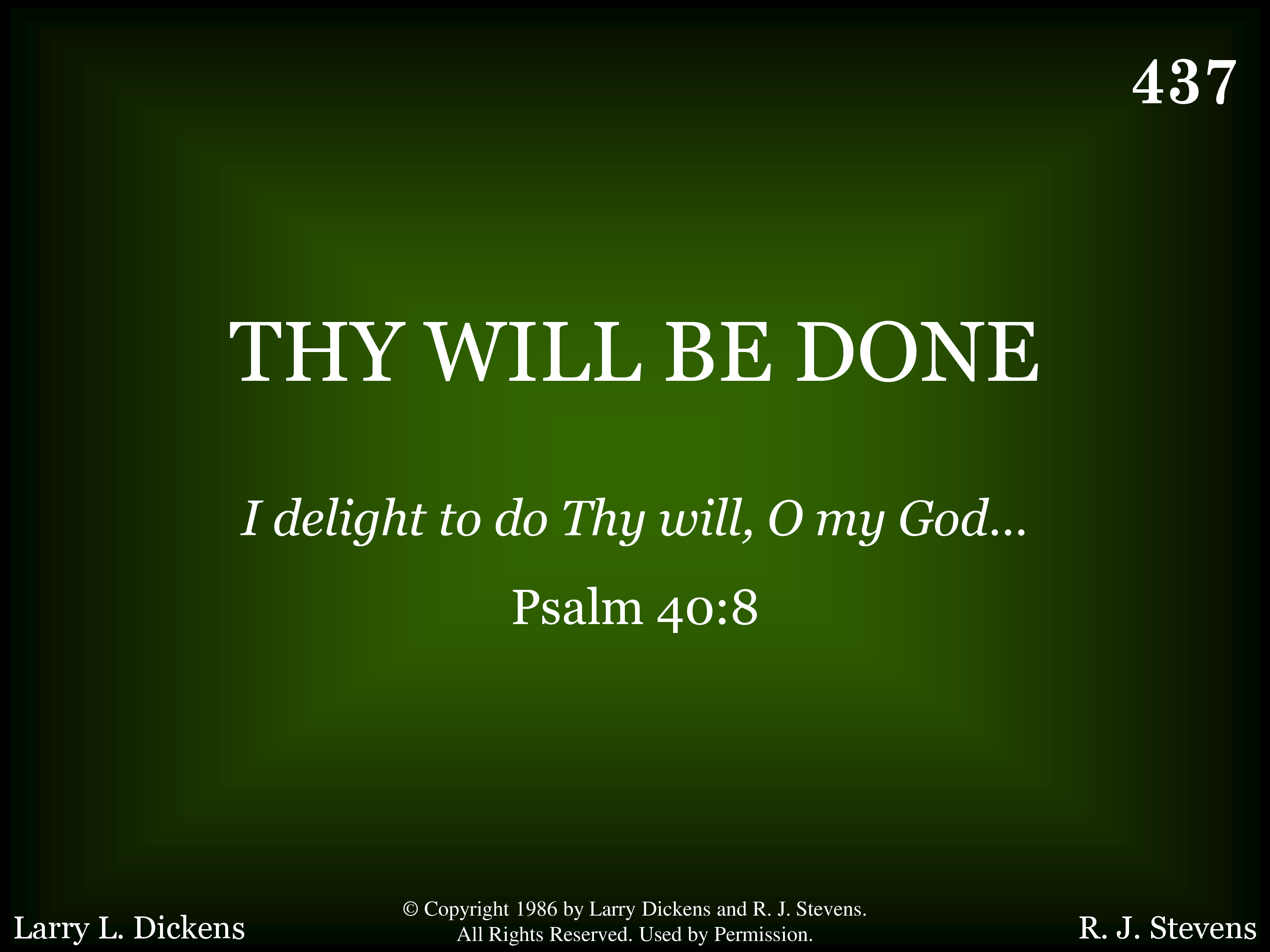 - Copyright © 1986 by Larry Dickens & R. J. Stevens. All Rights Reserved. Used by Permission.