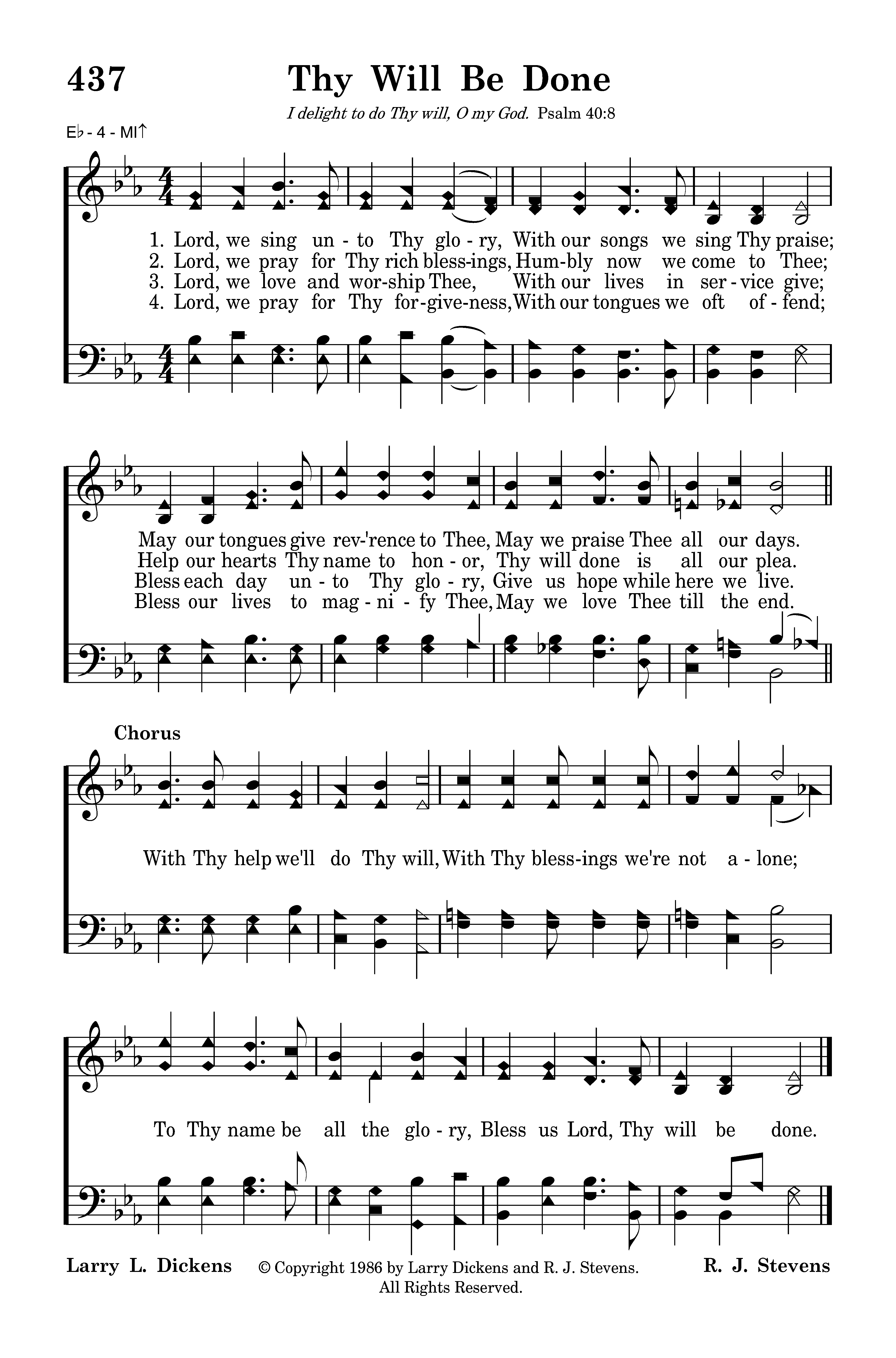 Lord, we sing unto Thy glory, With our songs we sing Thy praise; May our tongues give rev'rence to Thee, May we praise Thee all our days.