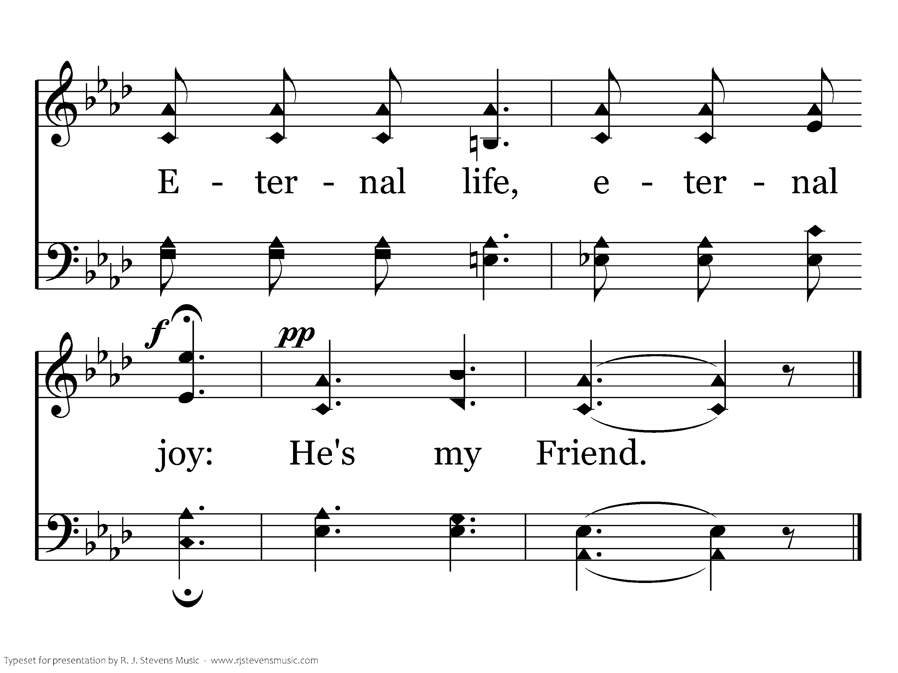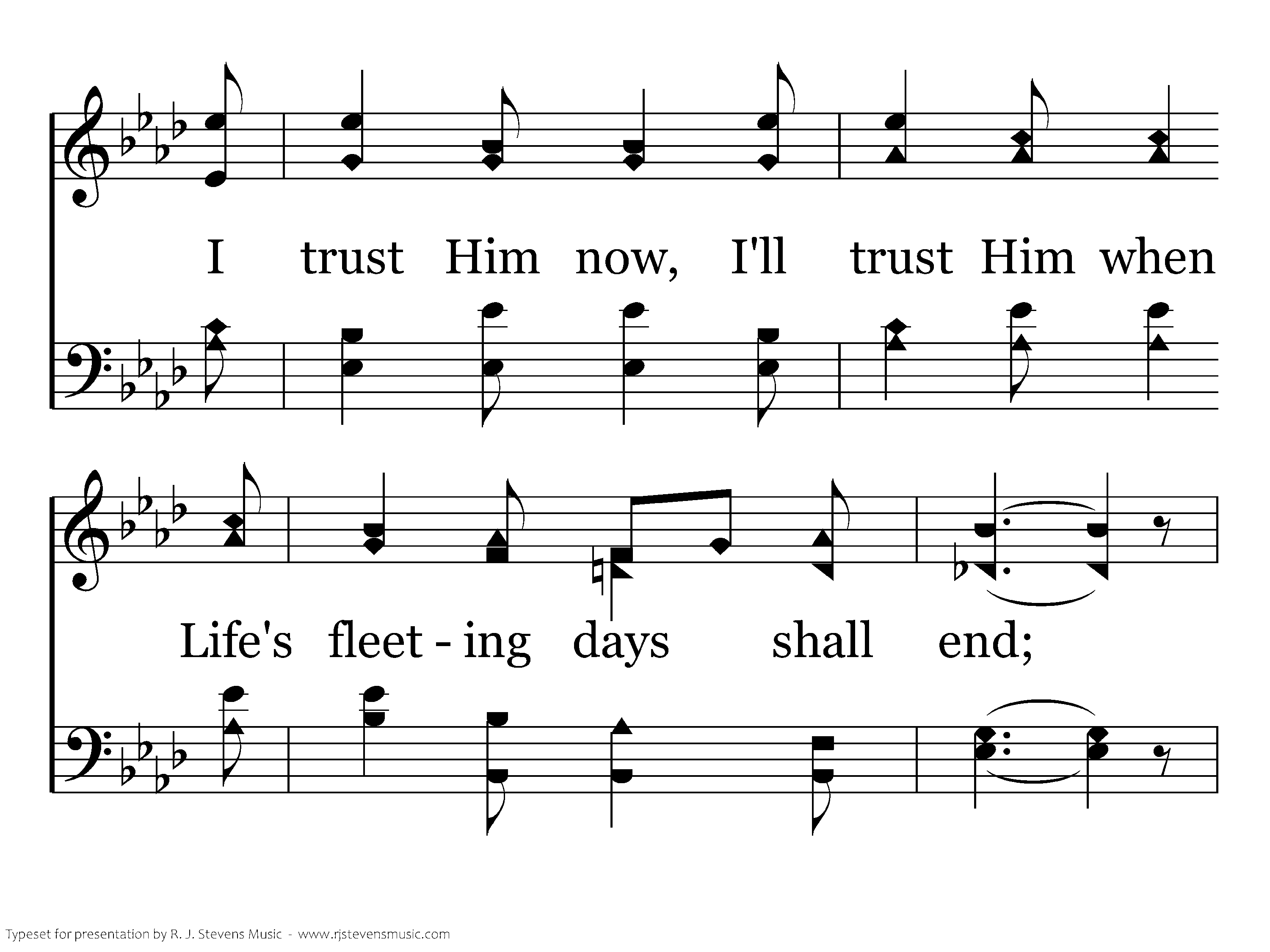 Jesus is all the world to me, I want no better friend; I trust Him now, I'll trust Him when Life's fleeting days shall end; Beautiful life with such a Friend; Beautiful life that has no end; Eternal life, eternal joy: He's my Friend.