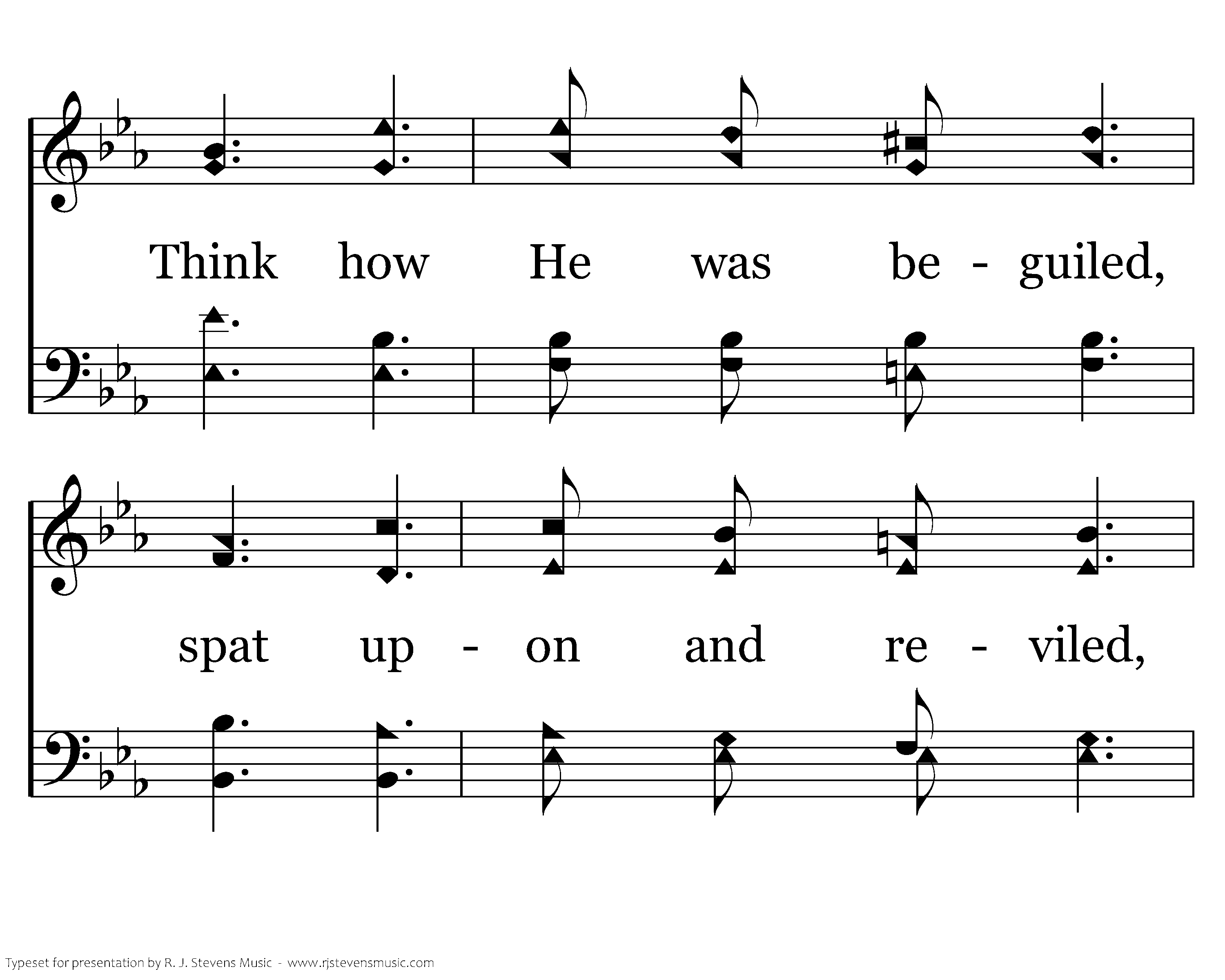 When somebody has been so unkind to you, Some word spoken that pierces you thru and thru, Think how He was beguiled, spat upon and reviled, Let the beauty of Jesus be seen in you.