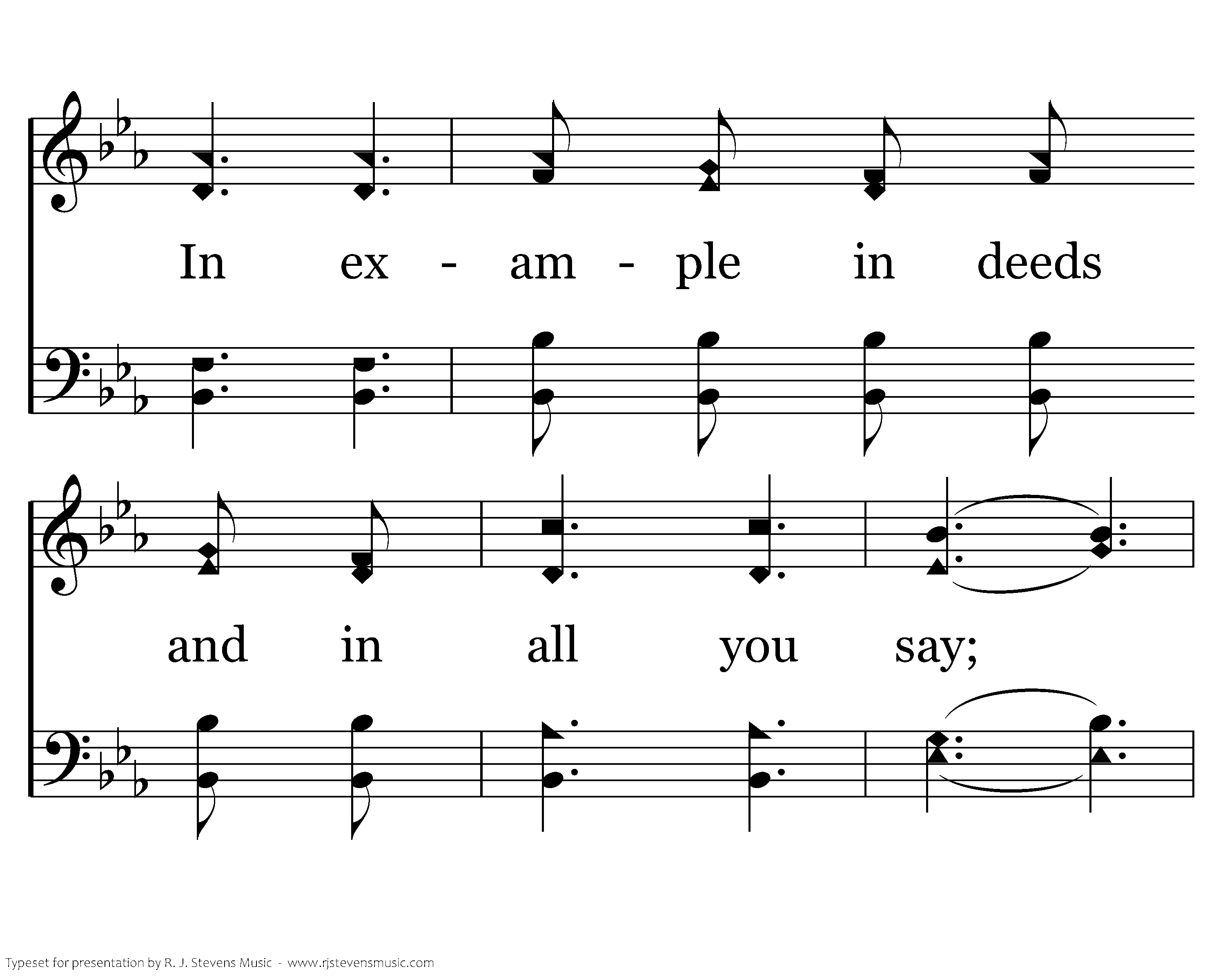 From the dawn of the morning to close of day, In example in deeds and in all you say; Lay your gifts at His feet, ever strive to keep sweet, Let the beauty of Jesus be seen in you.