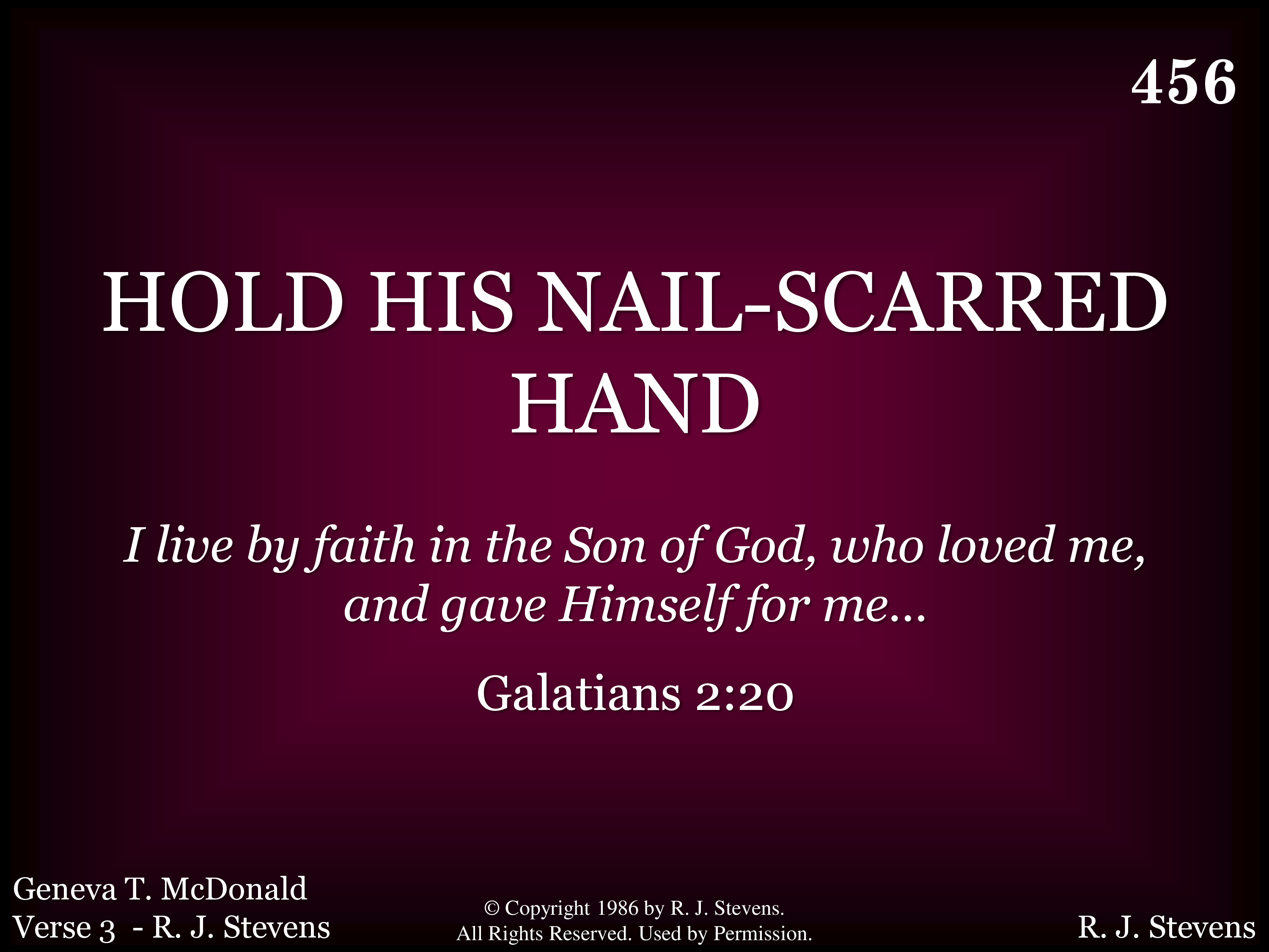 - Copyright © 1986 R. J. Stevens. All Rights Reserved. Used by Permission.