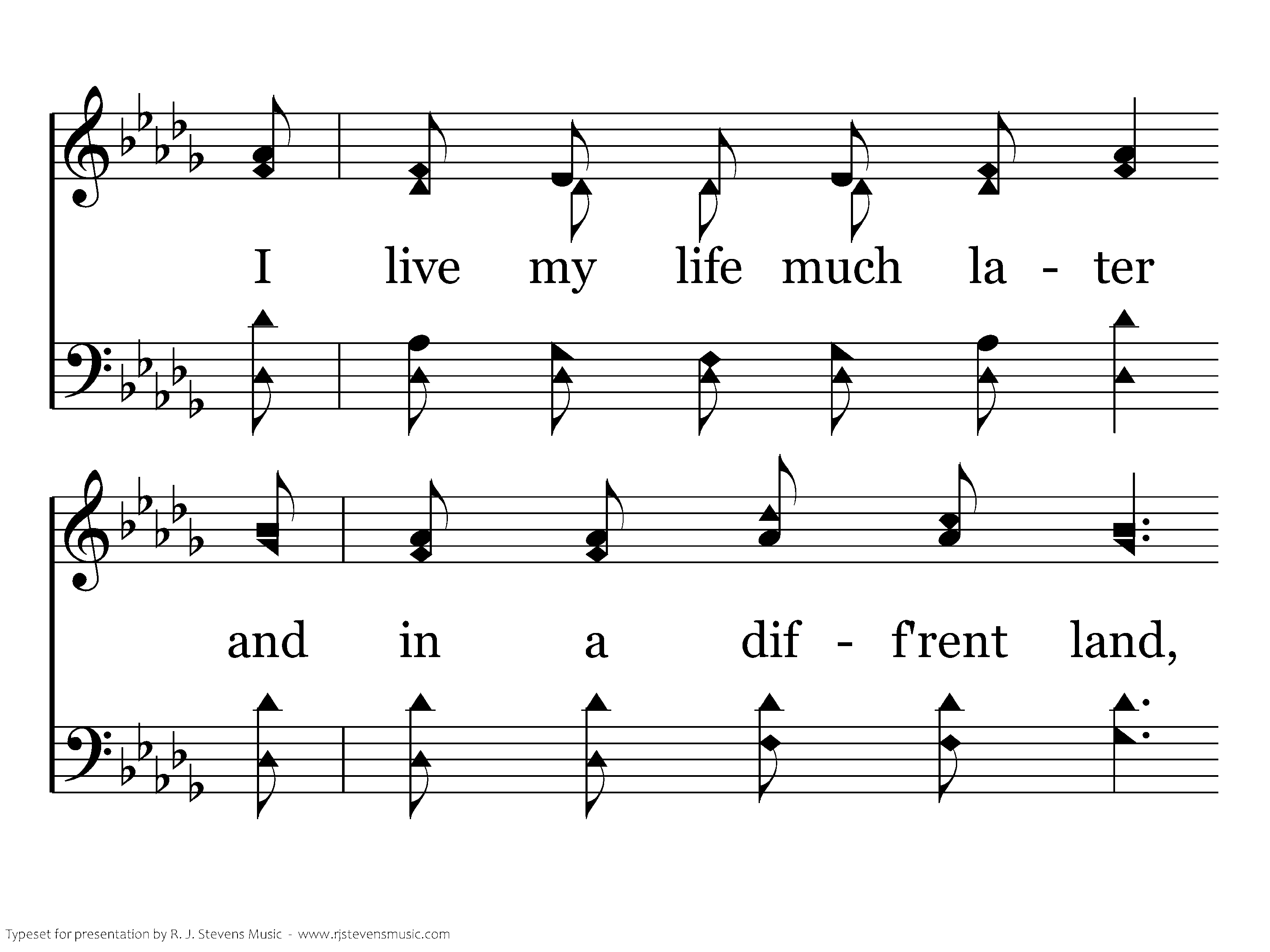 I did not see the lightning as it flashed on that sad day, Nor help the woman, Mary, place spices where He lay; I live my life much later and in a diff'rent land, But as I sin, I drive again a nail into His hand.