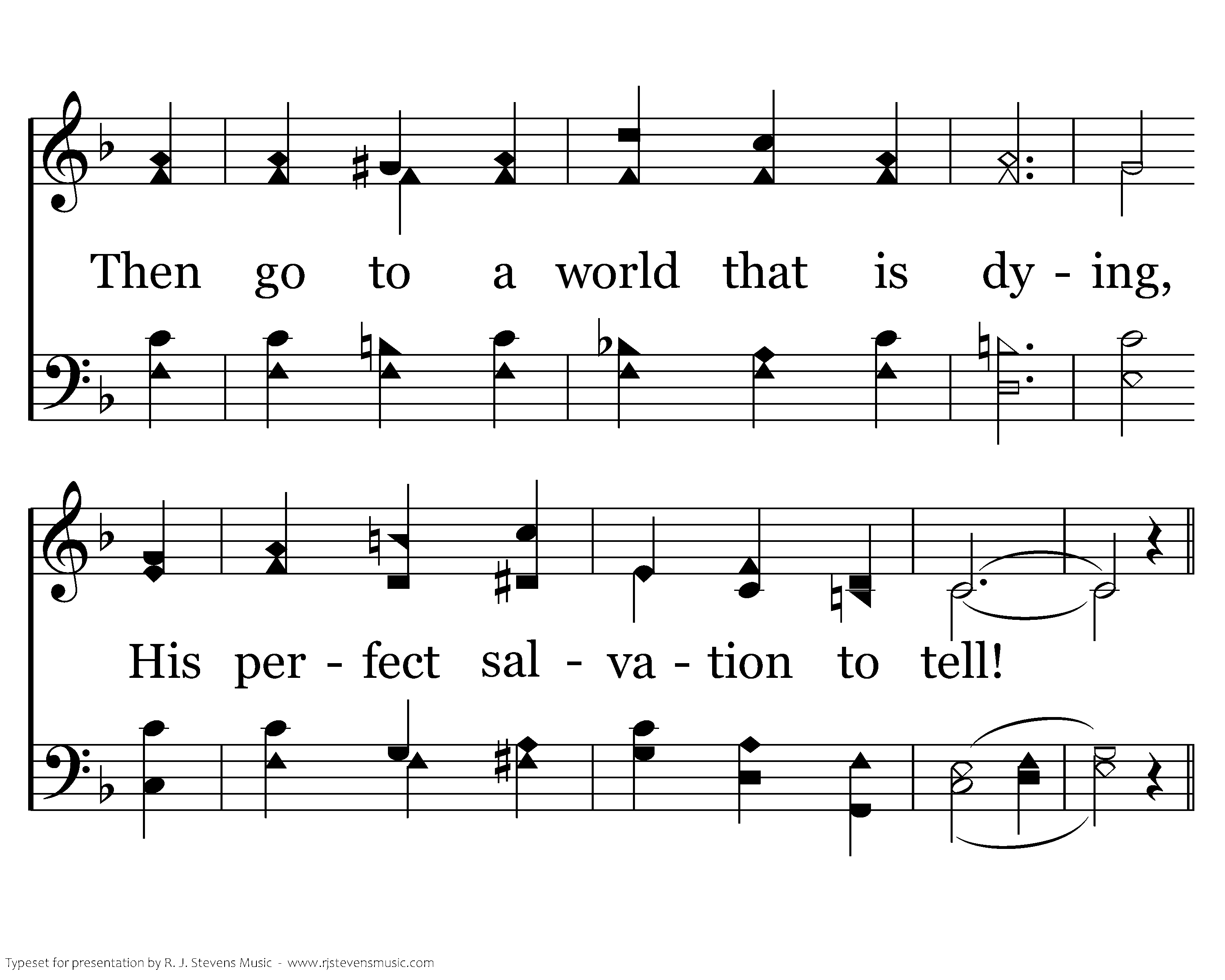 His word shall not fail you, He promised; Believe Him, and all will be well: Then go to a world that is dying, His perfect salvation to tell!