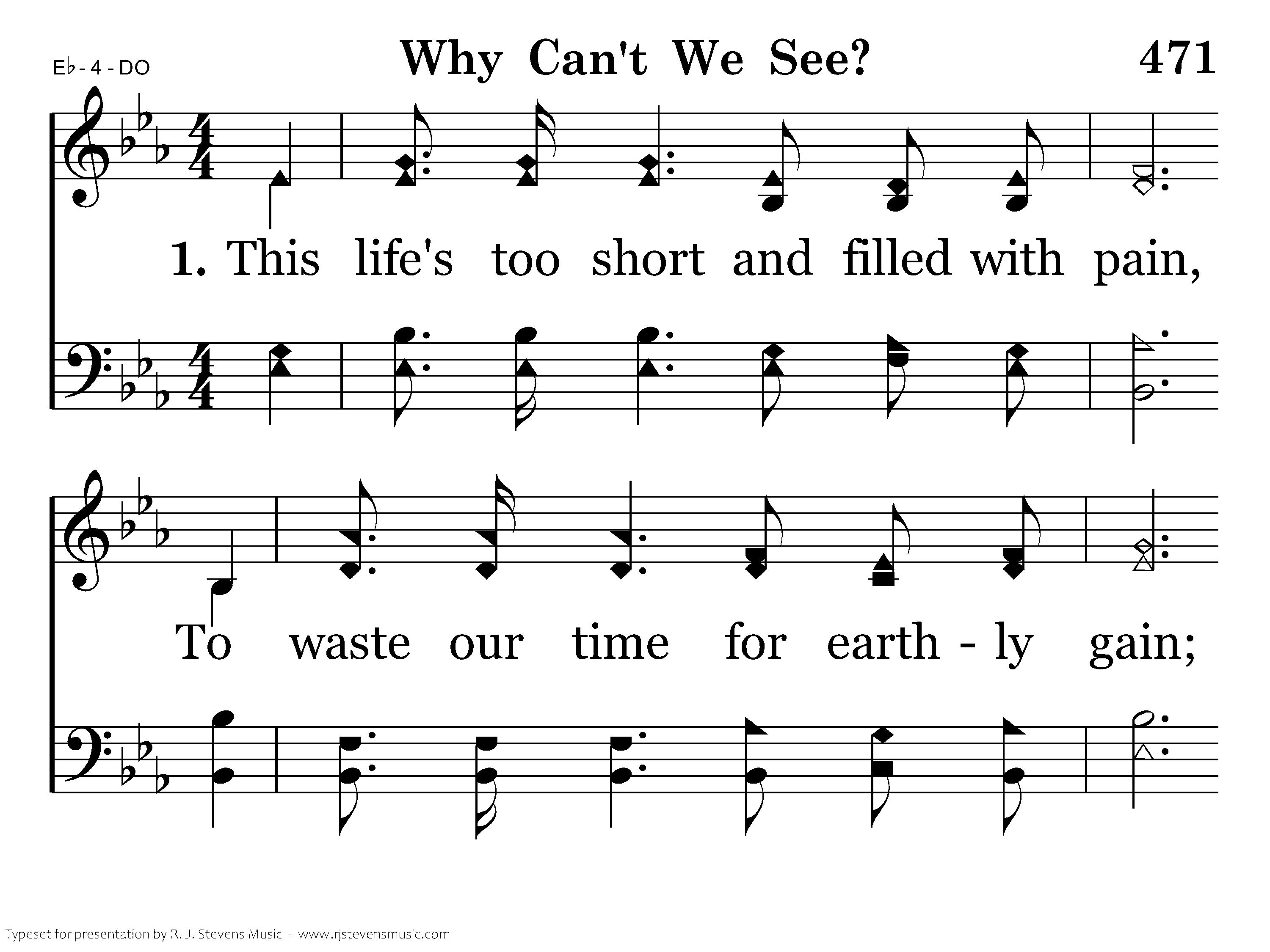 This life's too short and filled with pain, To waste our time for earthly gain; It has to be much sweeter there, Why can't we see? Lord, hear our prayer.