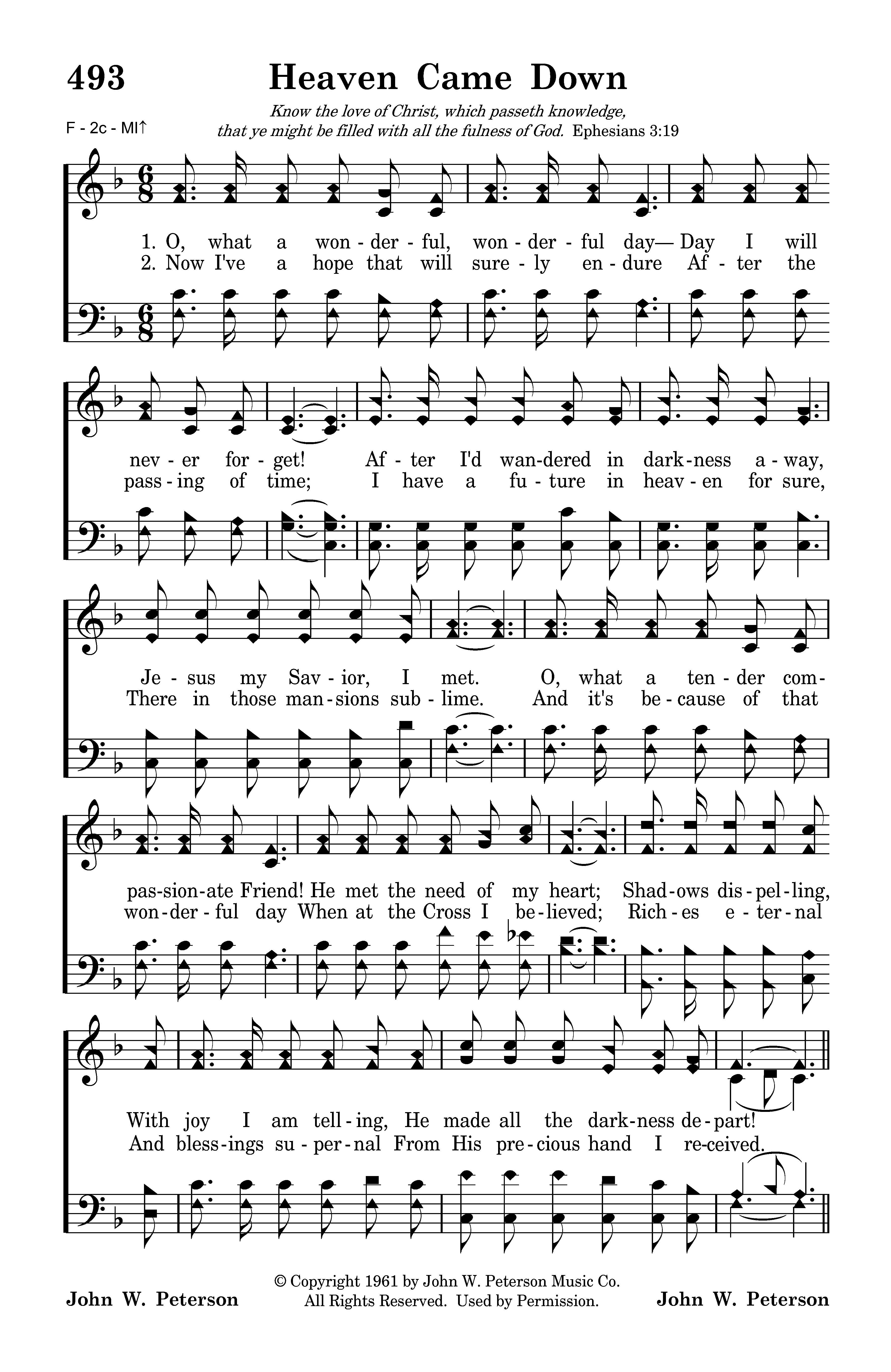 - Copyright © 1961 by John W. Peterson Music Co. (Admin. by John W. Peterson Music Co.) All Rights Reserved. Used by Permission.