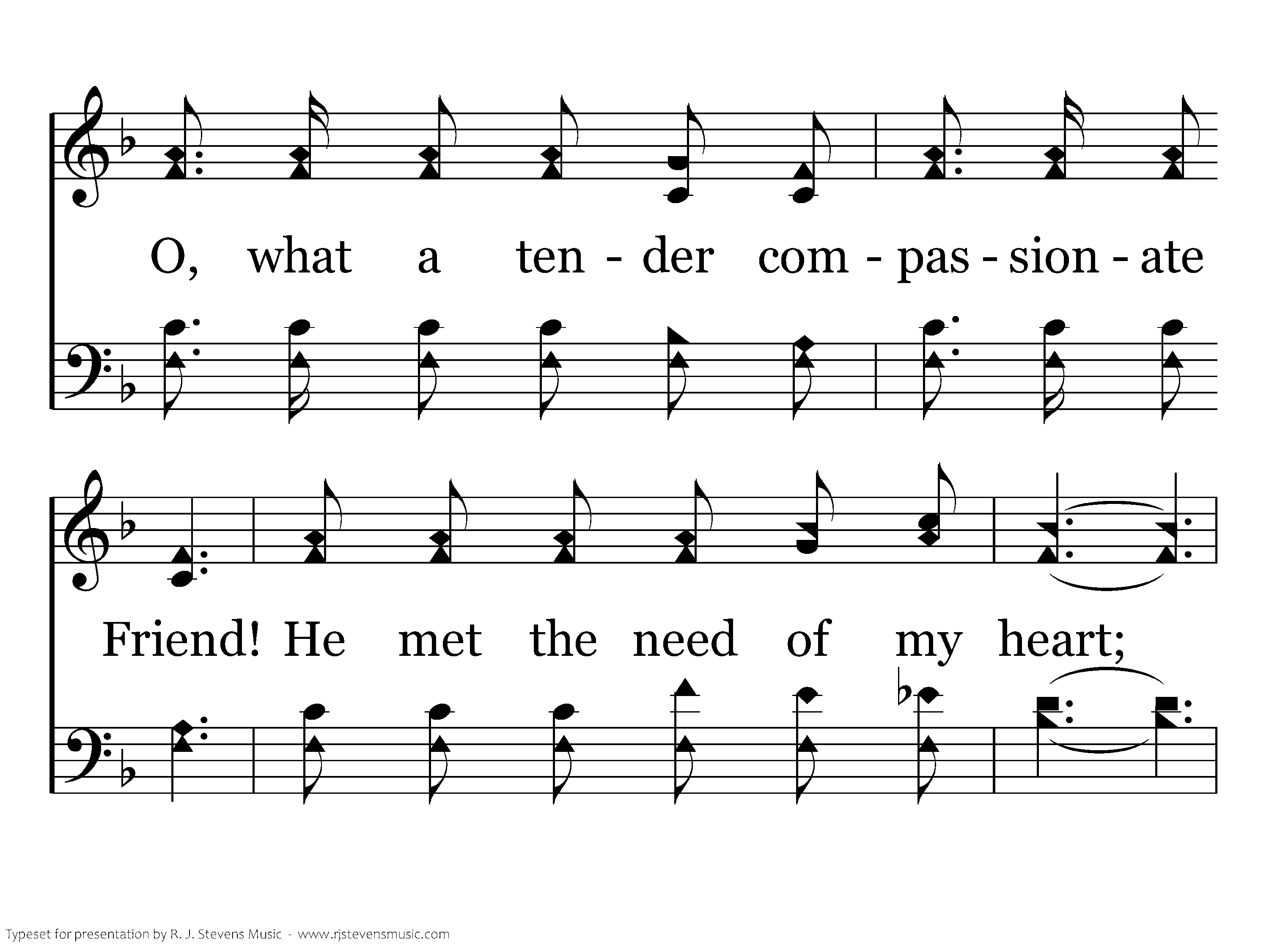 O, what a wonderful, wonderful day Day I will never forget! After I'd wandered in darkness away, Jesus my Savior, I met. O, what a tender compassionate Friend! He met the need of my heart; Shadows dispelling, With joy I am telling, He made all the darkness depart!