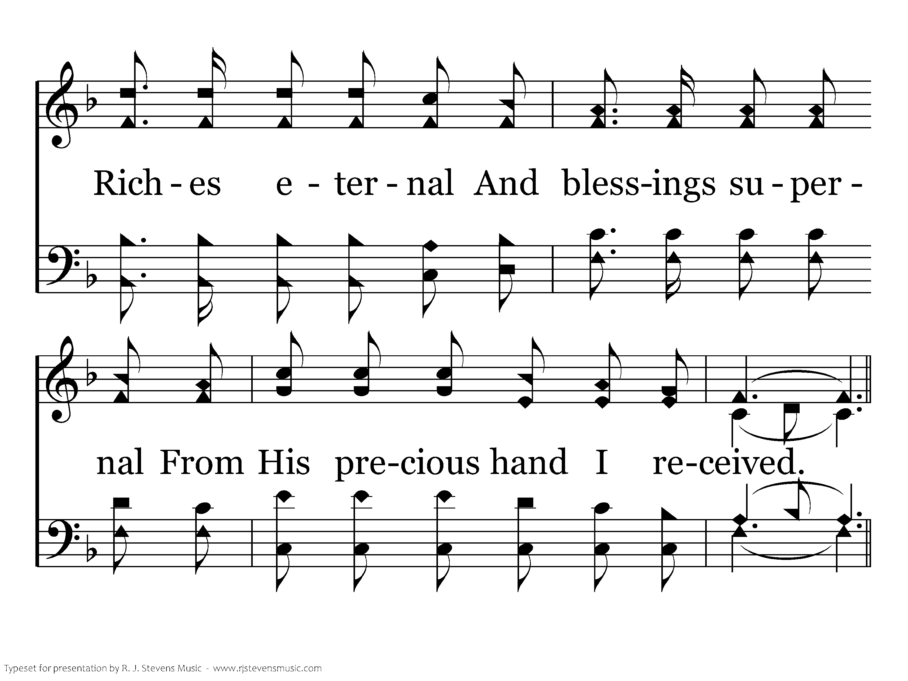 Now I've a hope that will surely endure After the passing of time; I have a future in heaven for sure, There in those mansions sublime. And it's because of that wonderful day When at the Cross I believed; Riches eternal And blessings supernal From His precious hand I received.