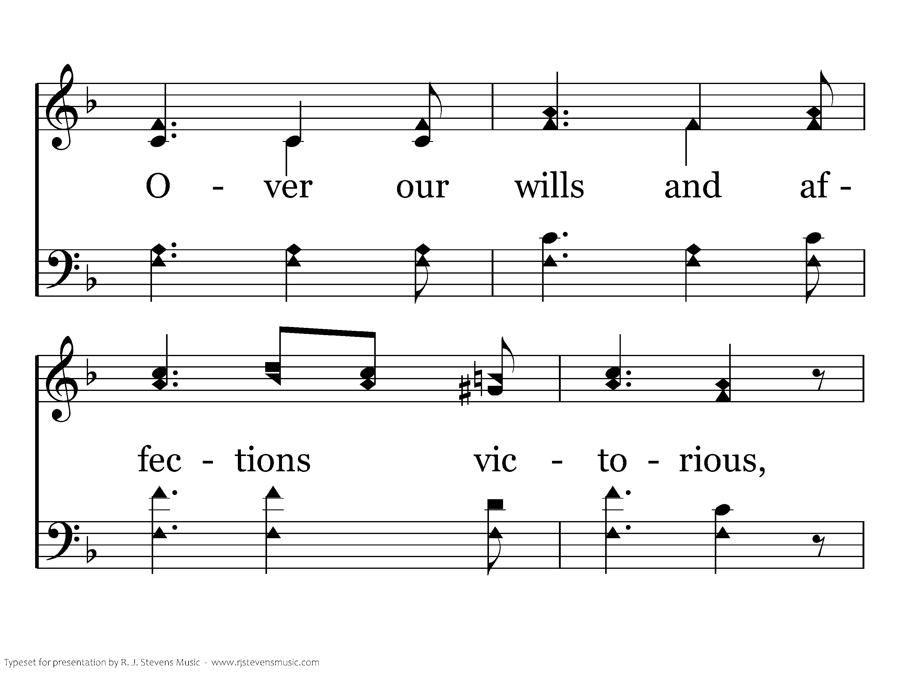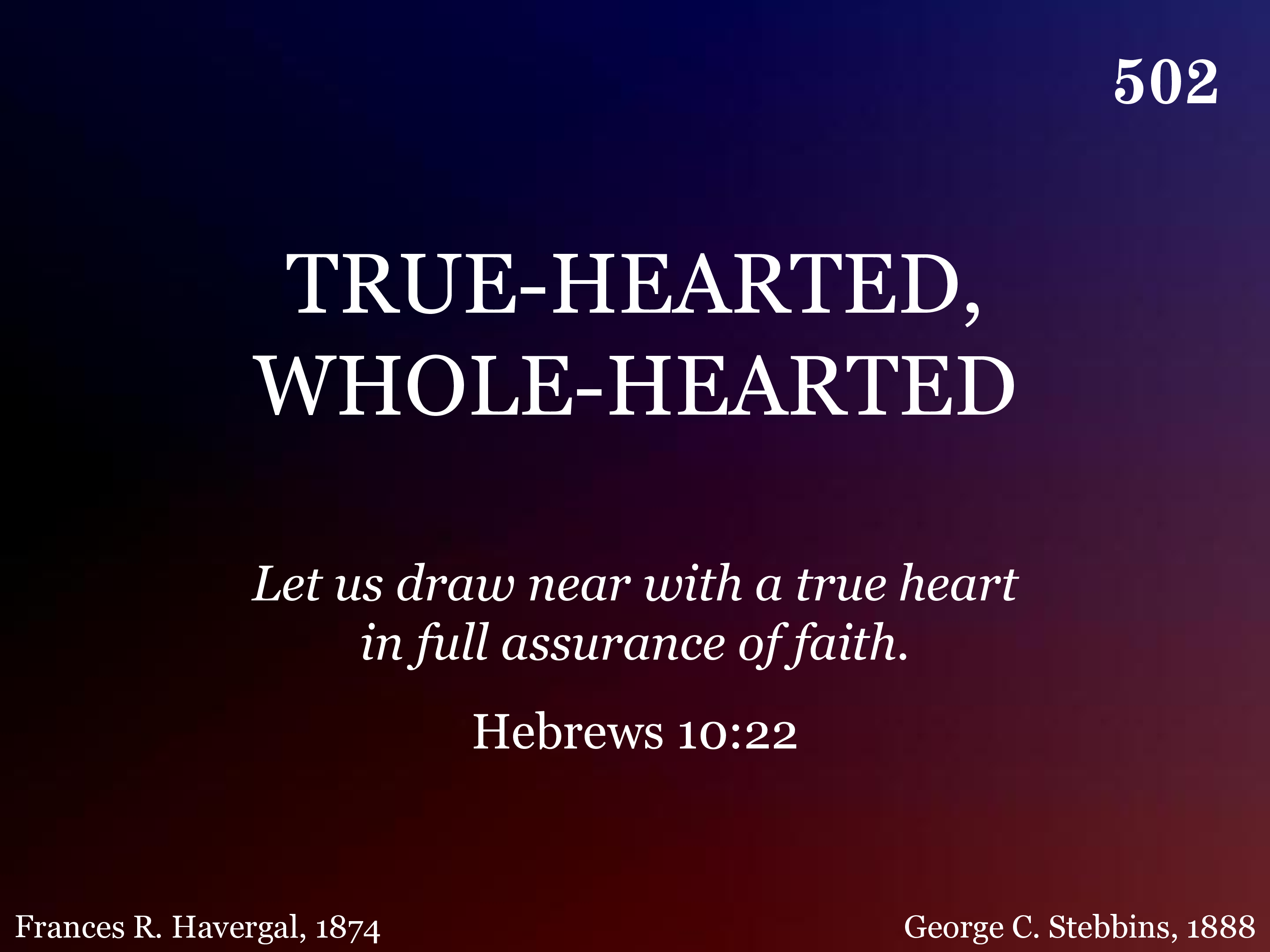 Truehearted, wholehearted, Savior all glorious! Take Thy great power and reign there alone, Over our wills and affections victorious, Freely surrendered and wholly Thine own.