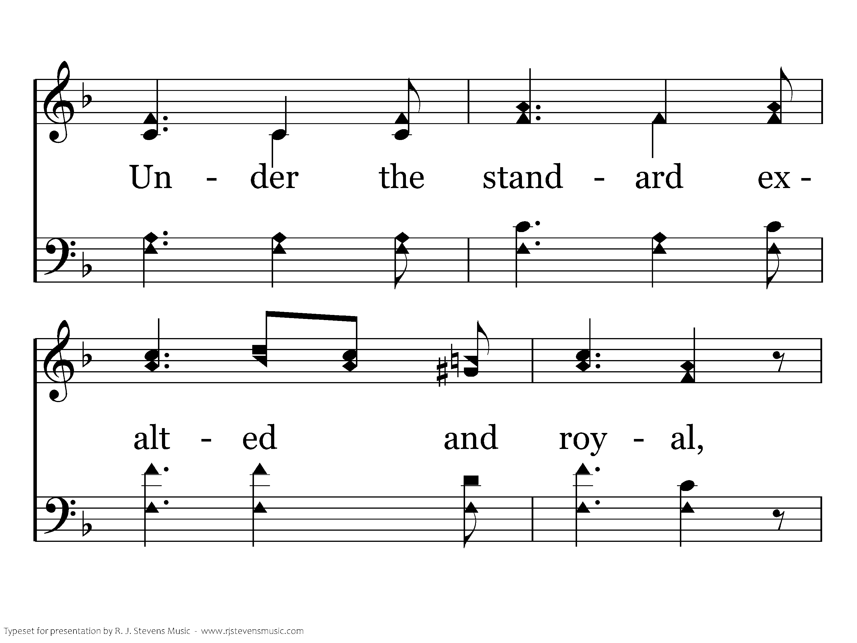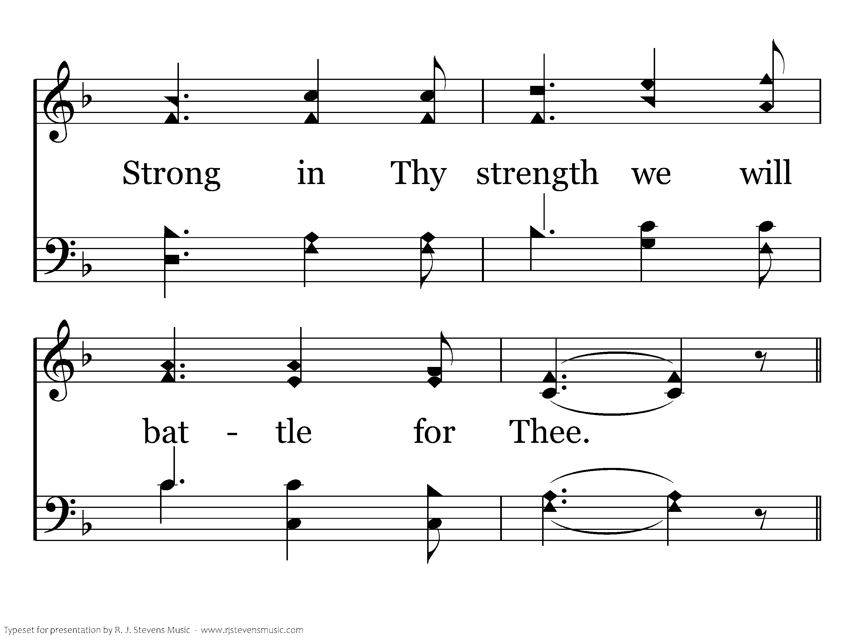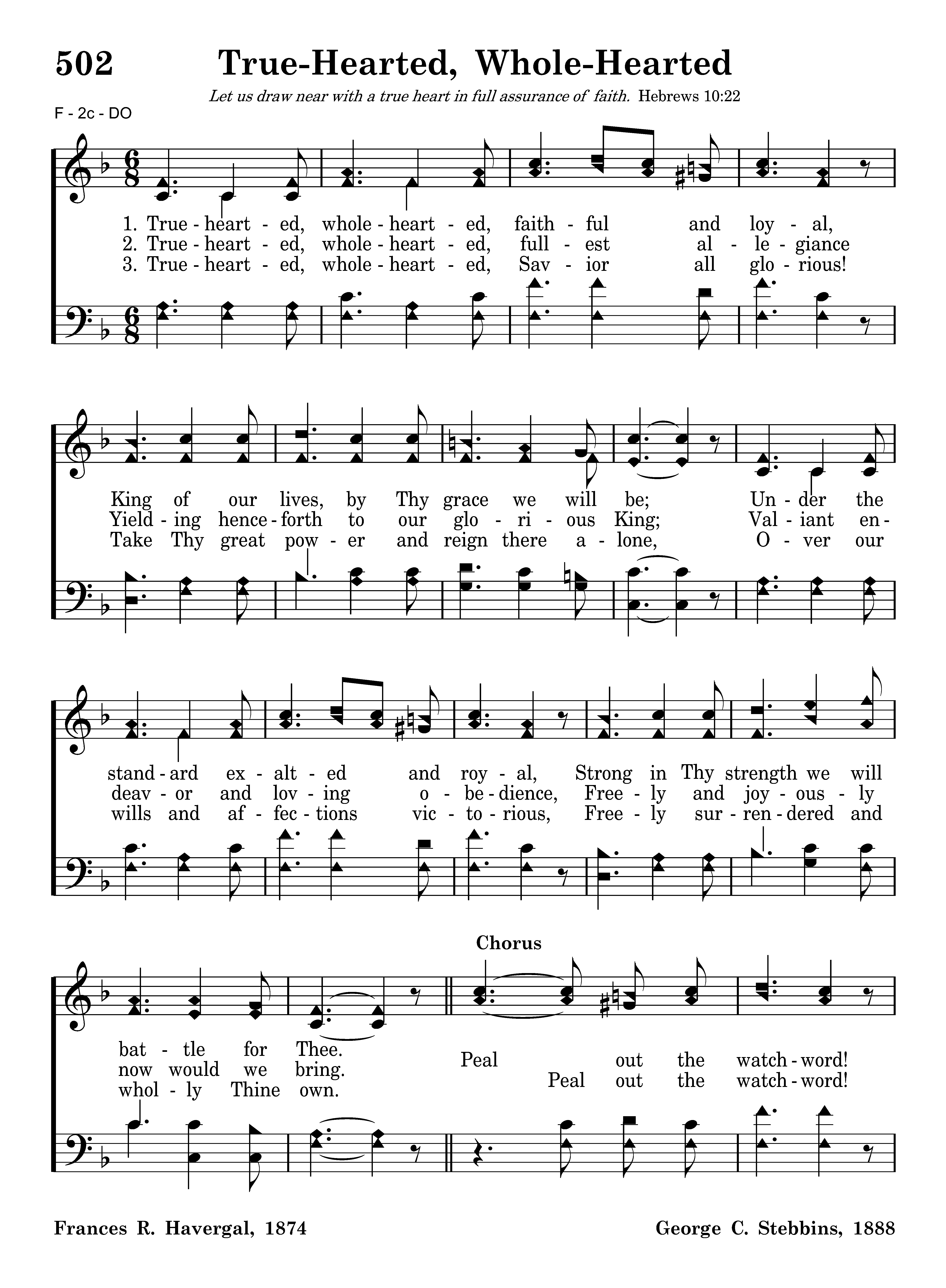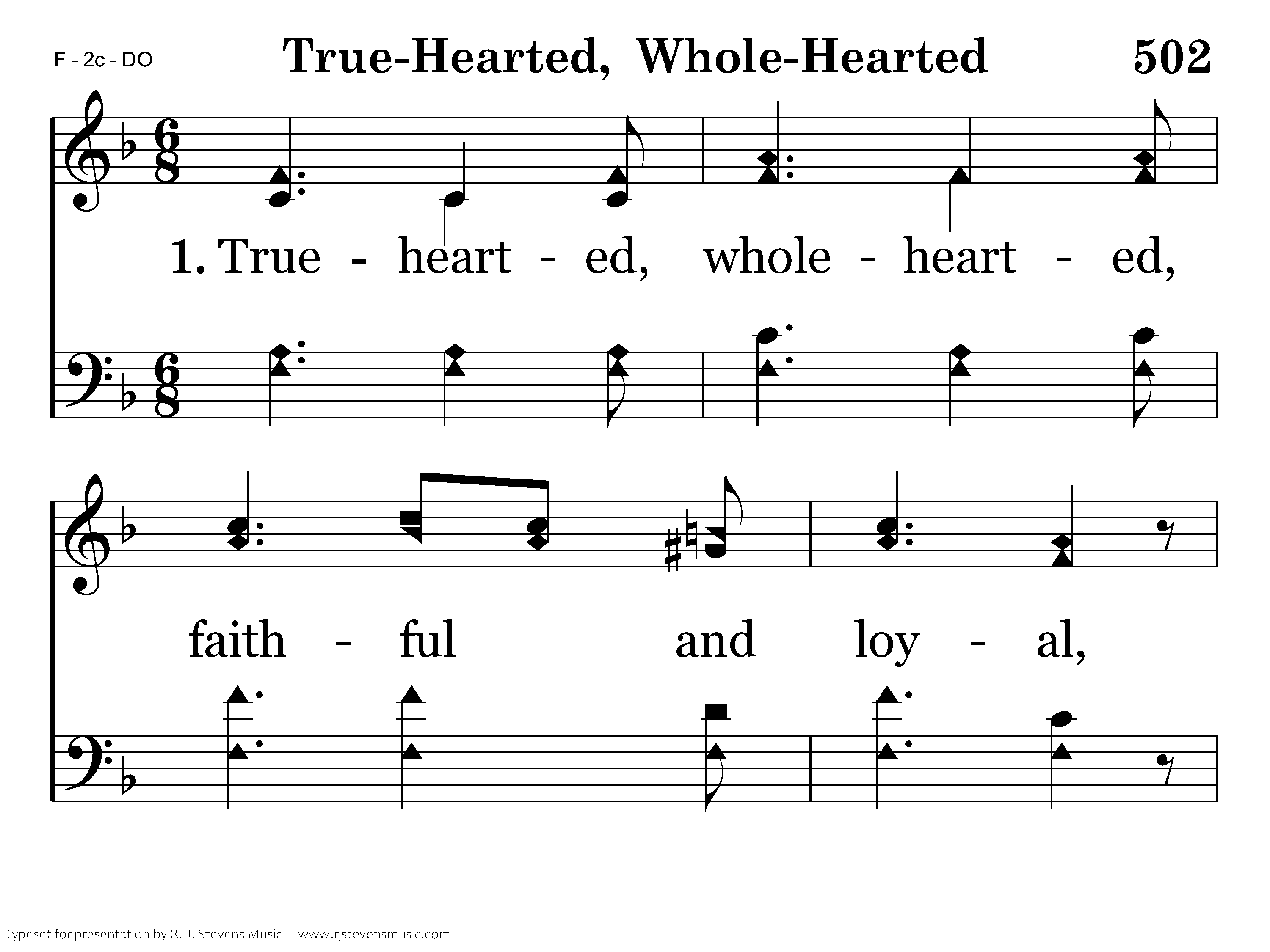 Truehearted, wholehearted, faithful and loyal, King of our lives, by Thy grace we will be; Under the standard exalted and royal, Strong in Thy strength we will battle for Thee.