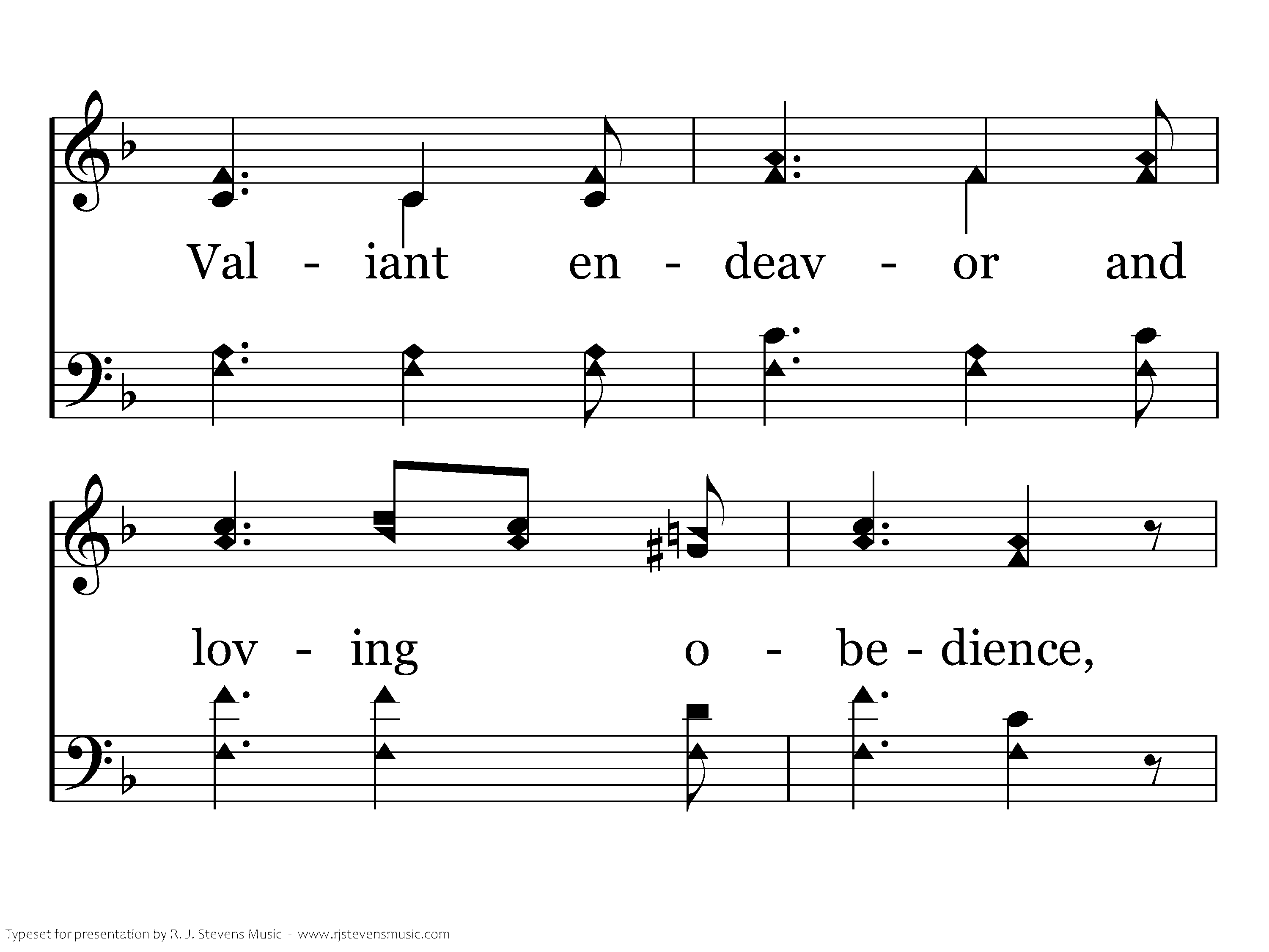 Truehearted, wholehearted, fullest allegiance Yielding henceforth to our glorious King; Valiant endeavor and loving obedience, Freely and joyously now would we bring.