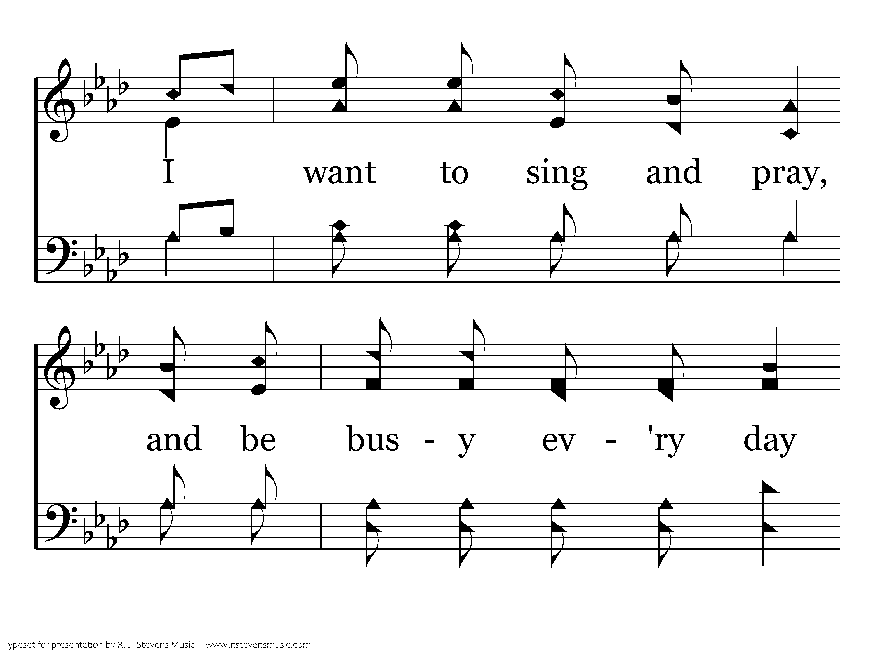 I want to be a worker for the Lord, I want to love and trust His holy word; I want to sing and pray, and be busy ev'ry day In the In the kingdom of the Lord.