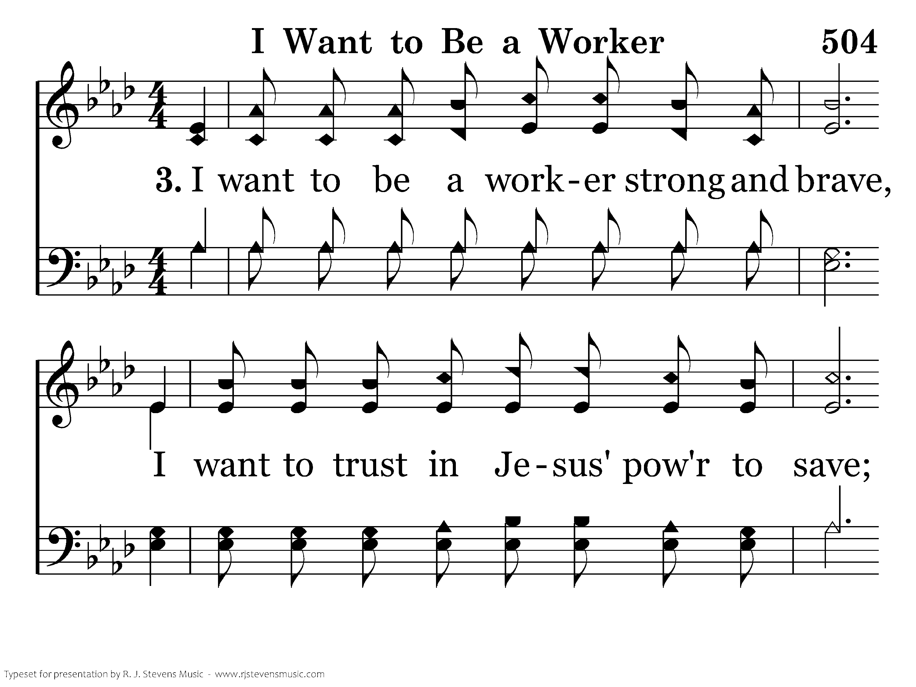 I want to be a worker strong and brave, I want to trust in Jesus' pow'r to save; All who will truly come, shall find a happy home, in the kingdom of the Lord.