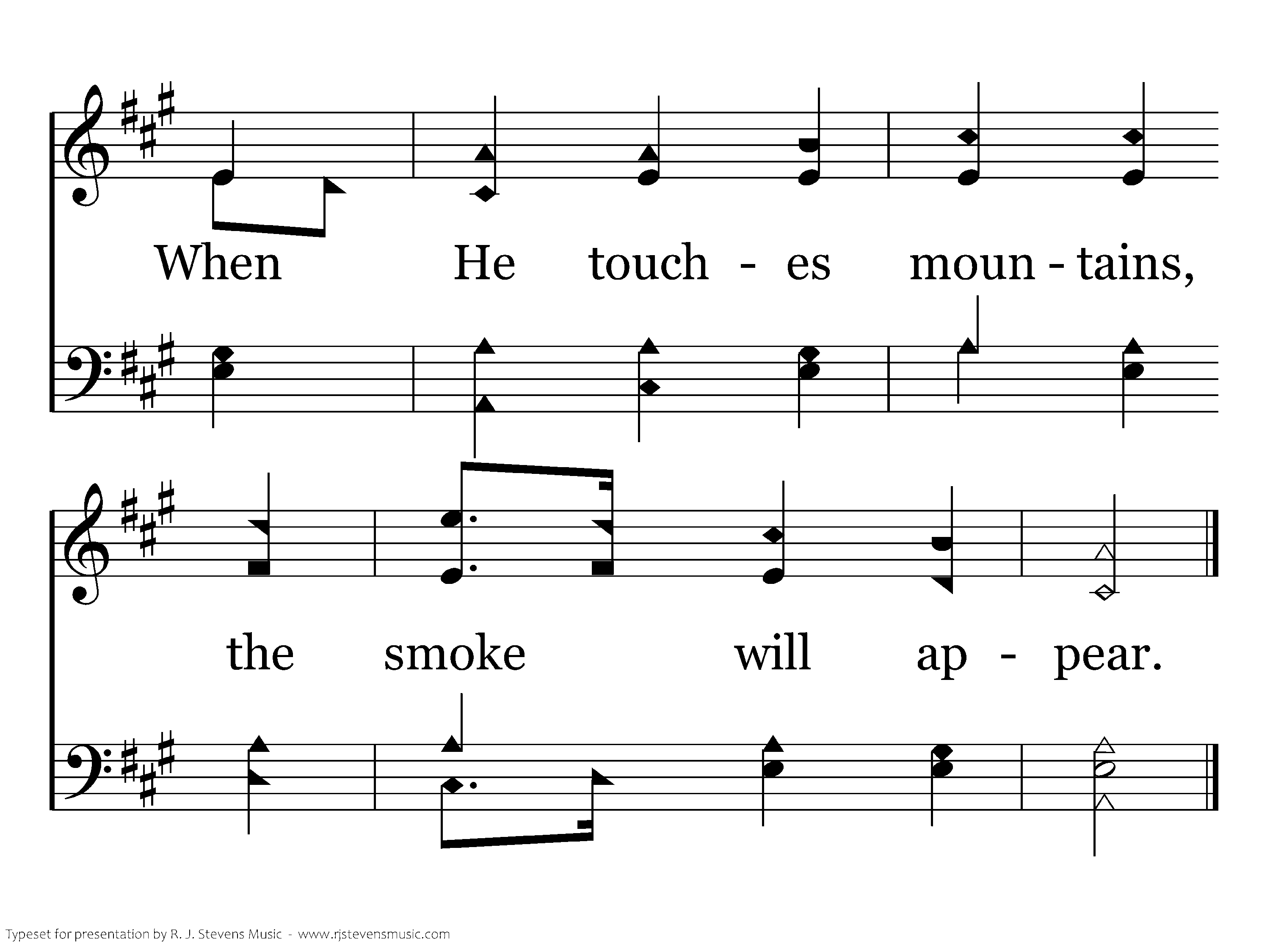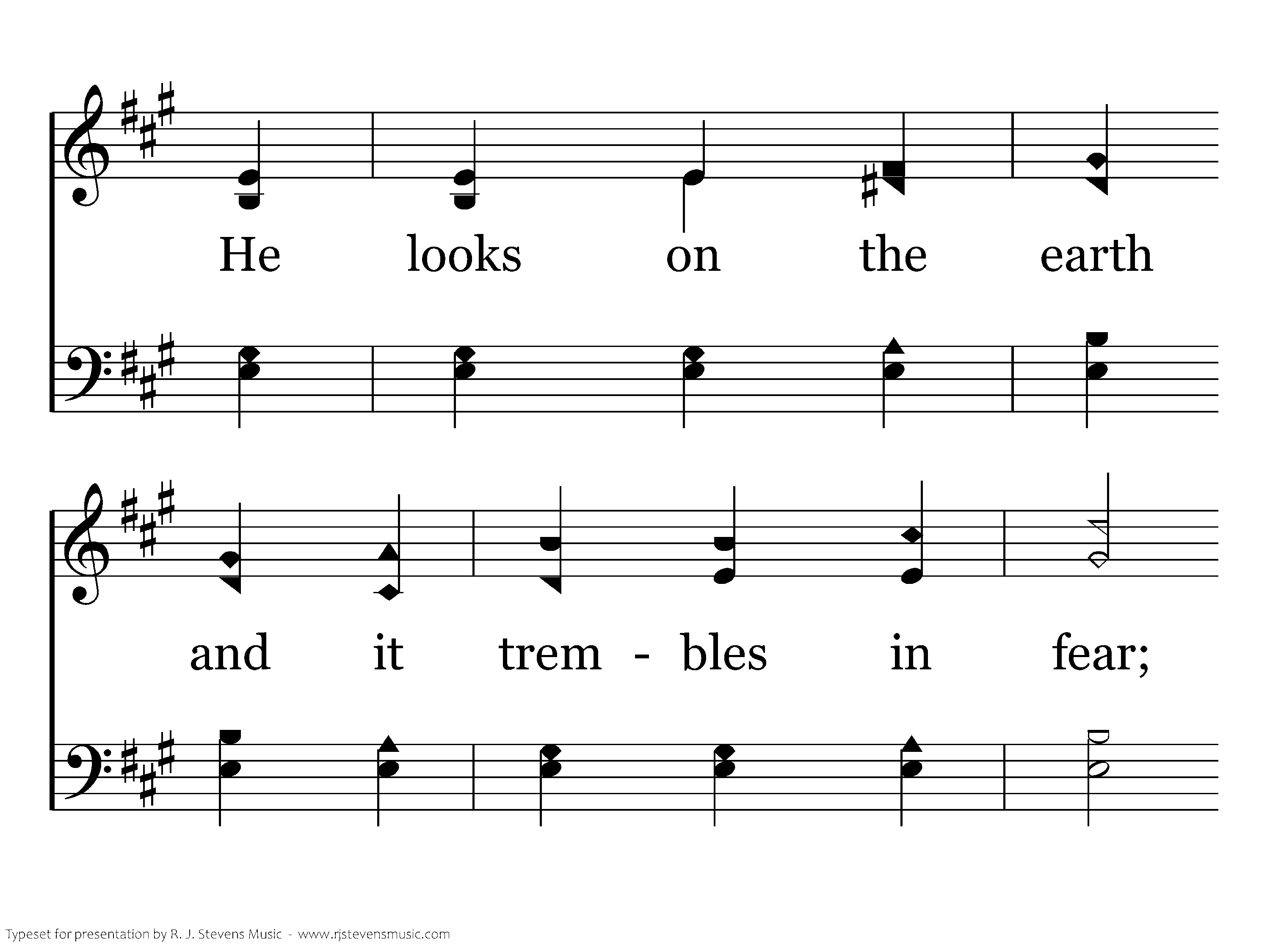 Forever O may the Lord's glory stand! The Lord shall enjoy each work of His hand. He looks on the earth and it trembles in fear; When He touches mountains, the smoke will appear.
