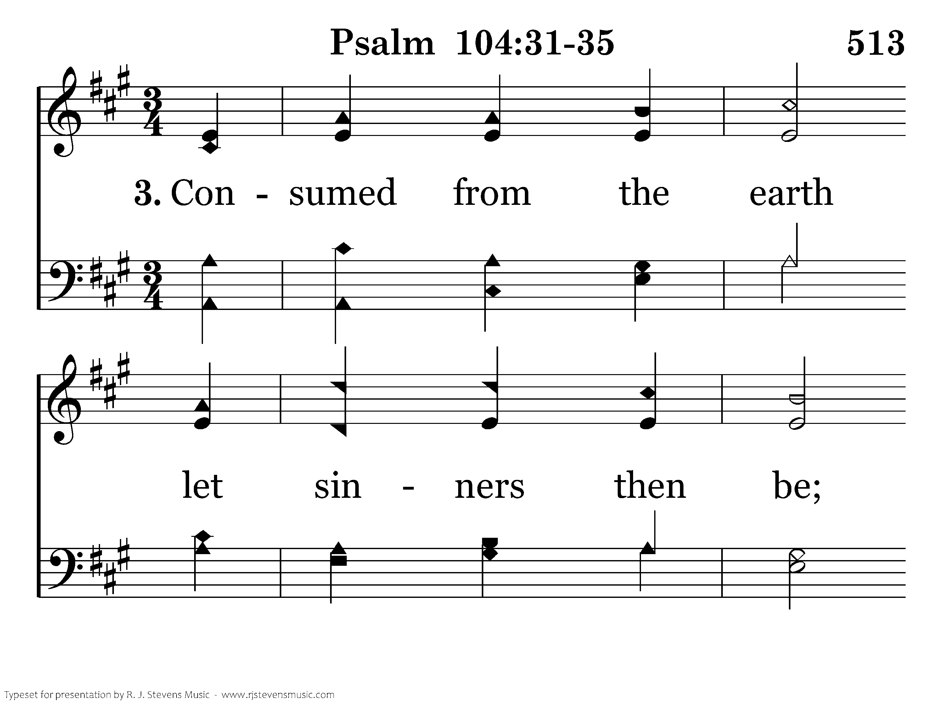 Consumed from the earth let sinners then be; The wicked in life no more let us see. And now, O my soul, blessing give to the Lord; Let glad hallelujahs ring; O praise the Lord!