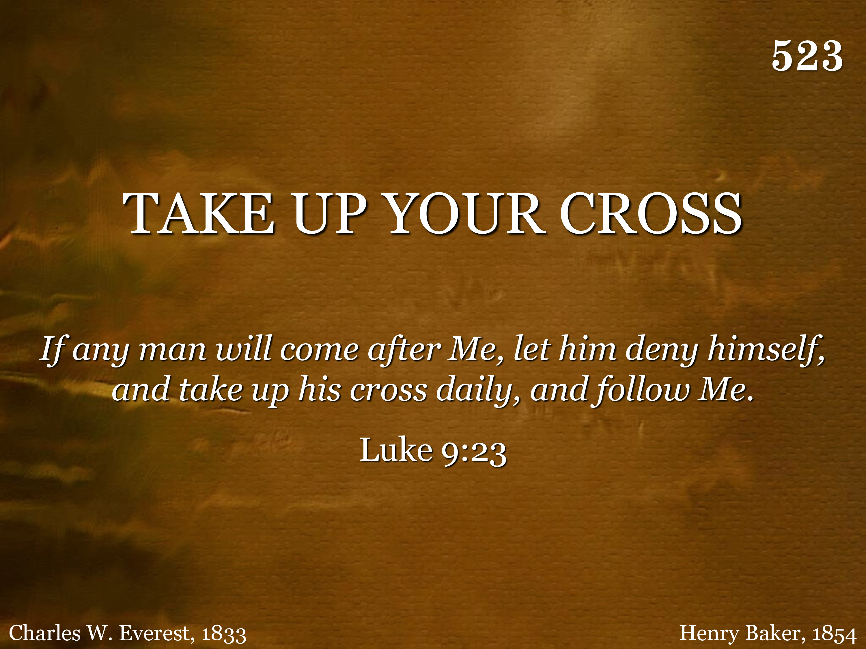 "Take up your cross," the Savior said, "If you would my disciple be; Take up your cross with willing heart, And humbly follow after me."