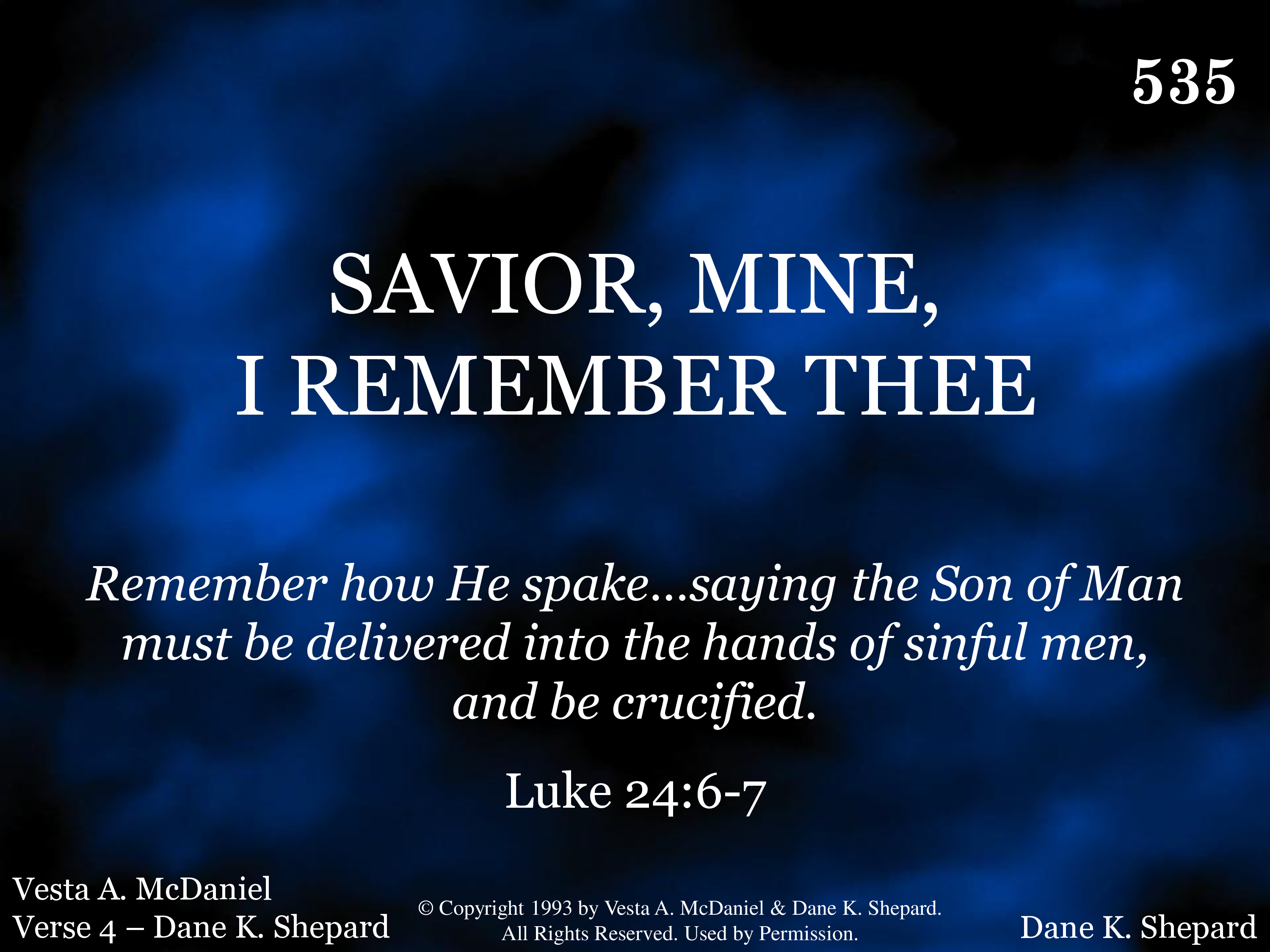 Savior, mine, I remember Thee Suff'ring on that cruel tree; Now I seek to do Thy will And in love Thy word fulfill.