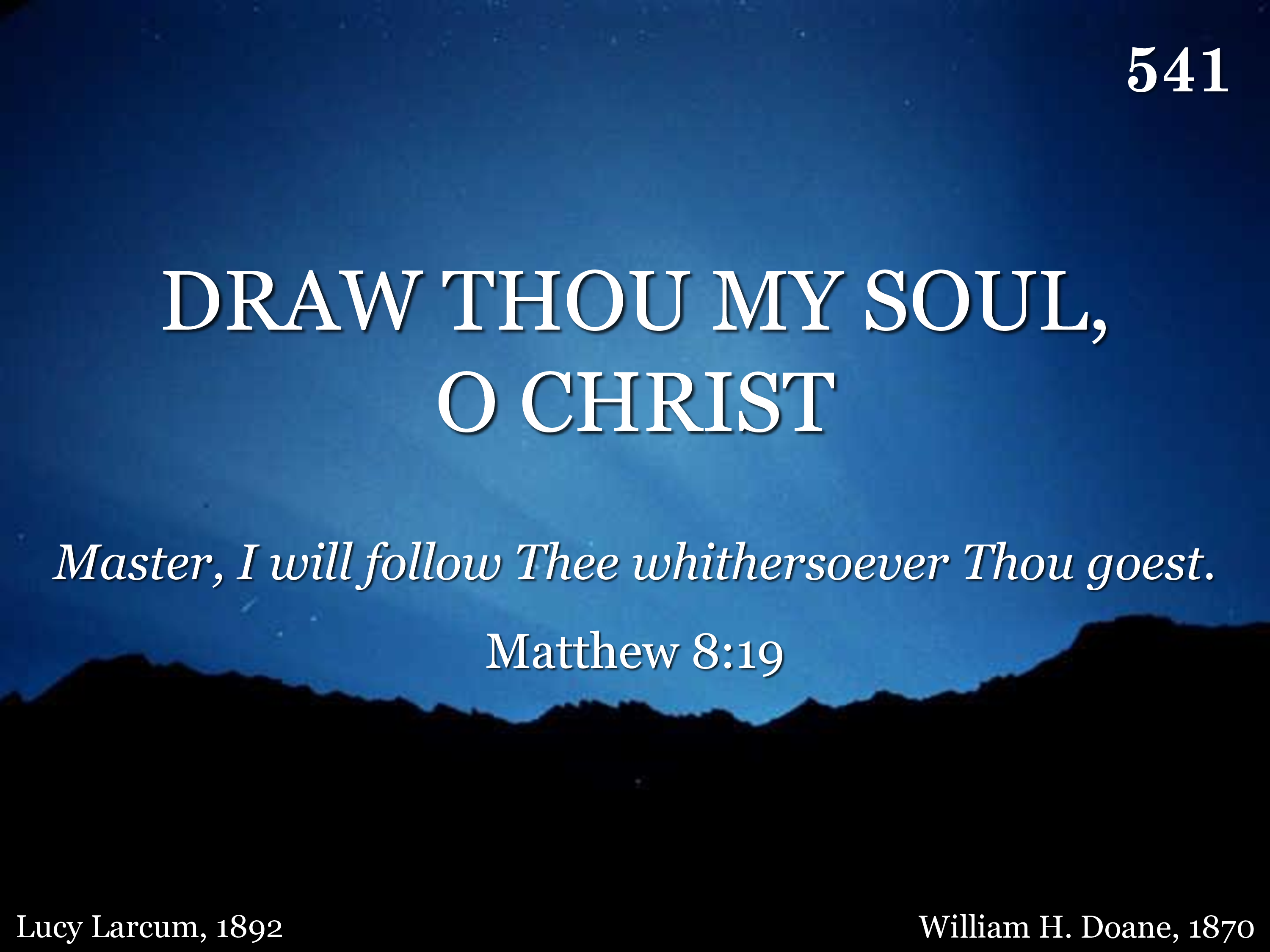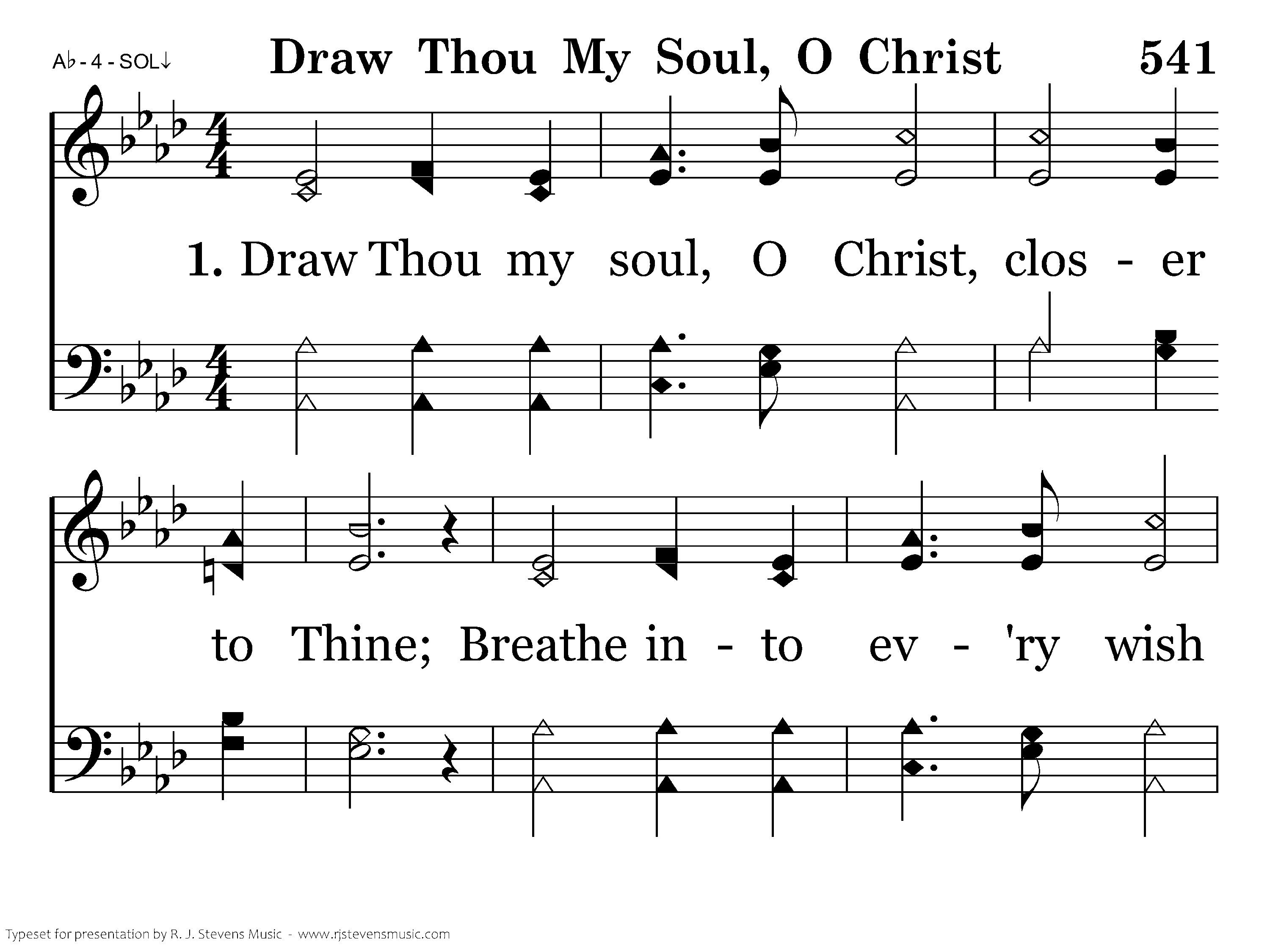 Draw Thou my soul, O Christ, closer to Thine; Breathe into ev'ry wish Thy will divine; Raise my low self above won by Thy deathless love; O Christ, thru mine let Thy life shine.