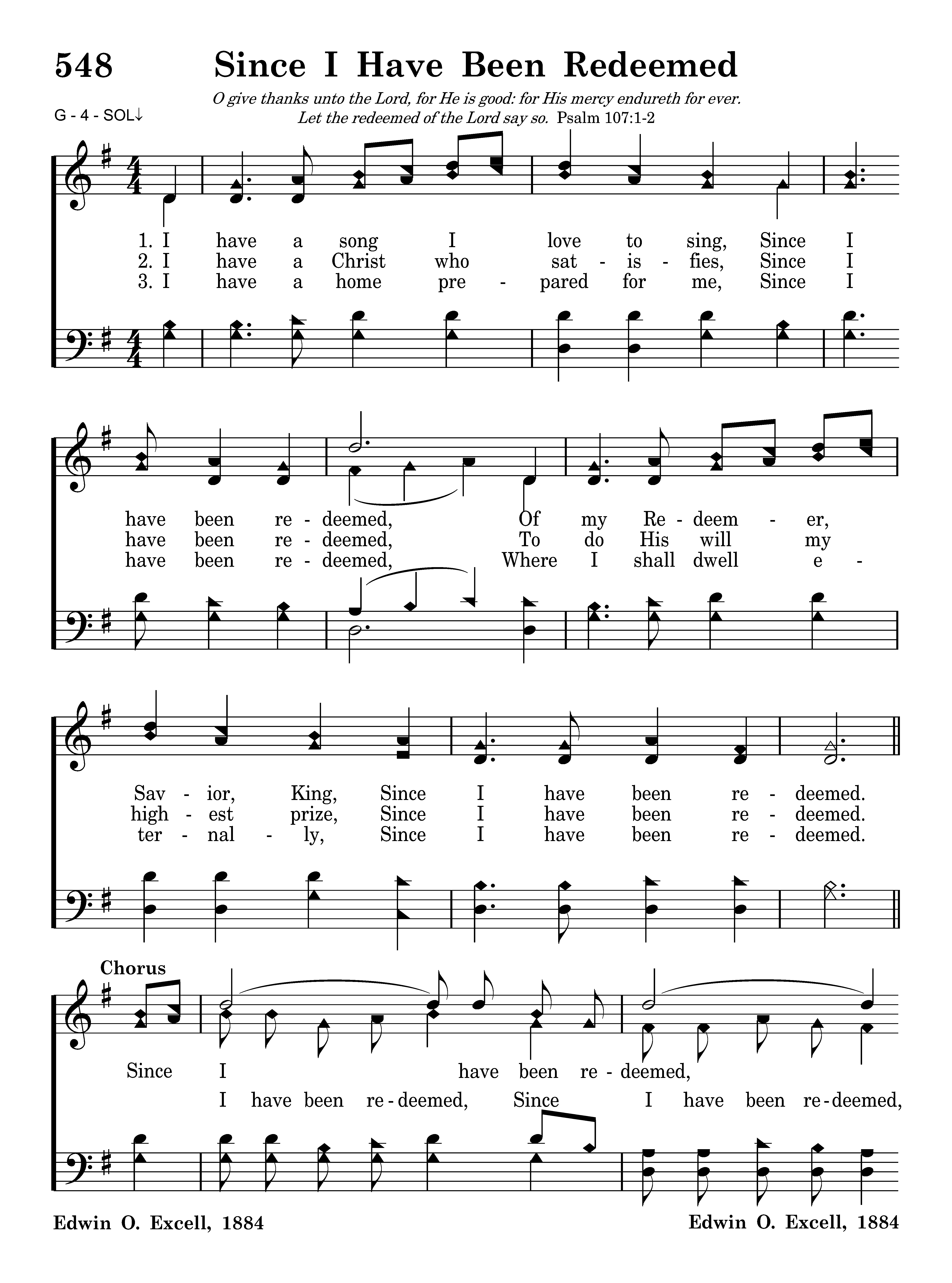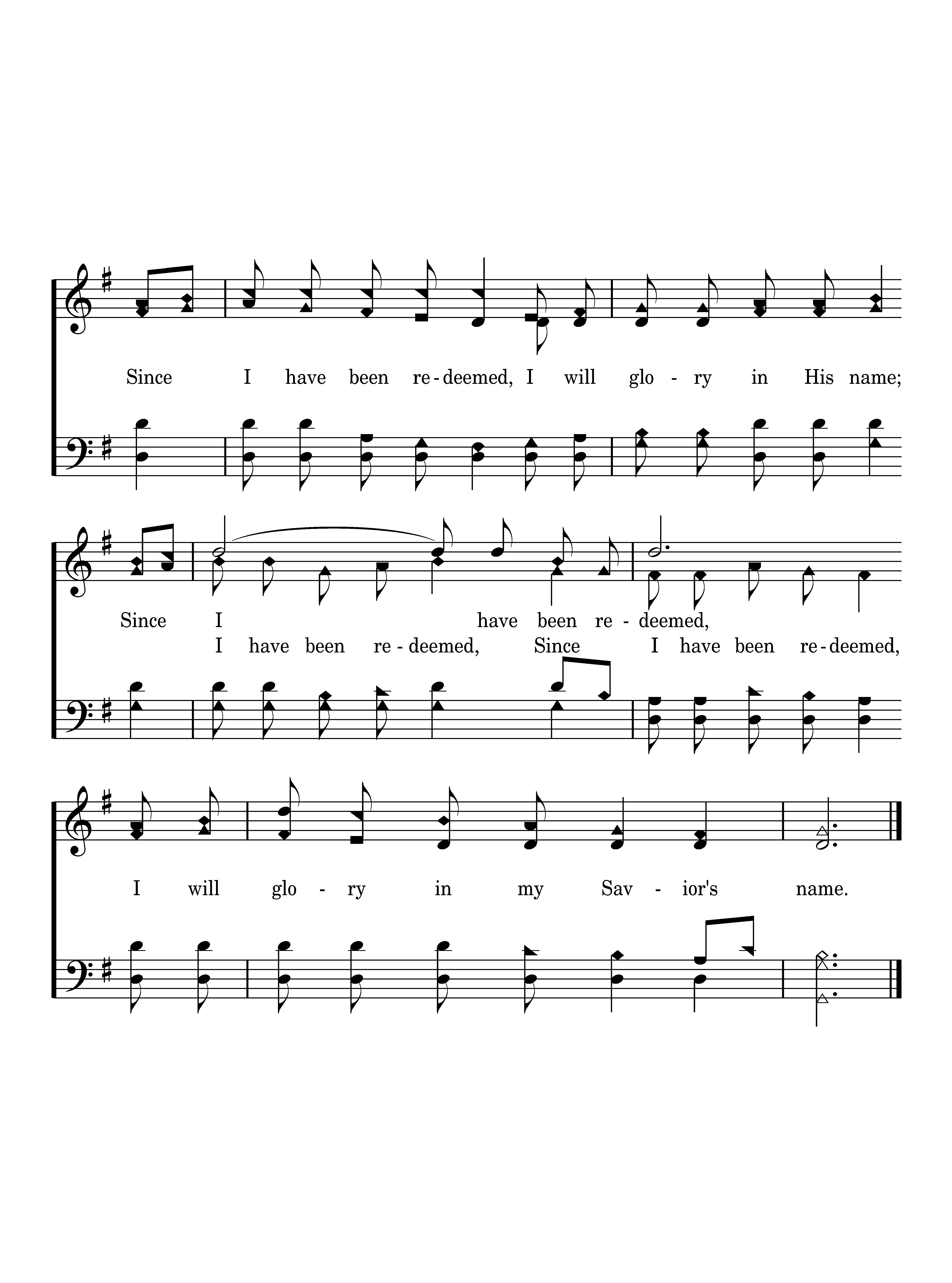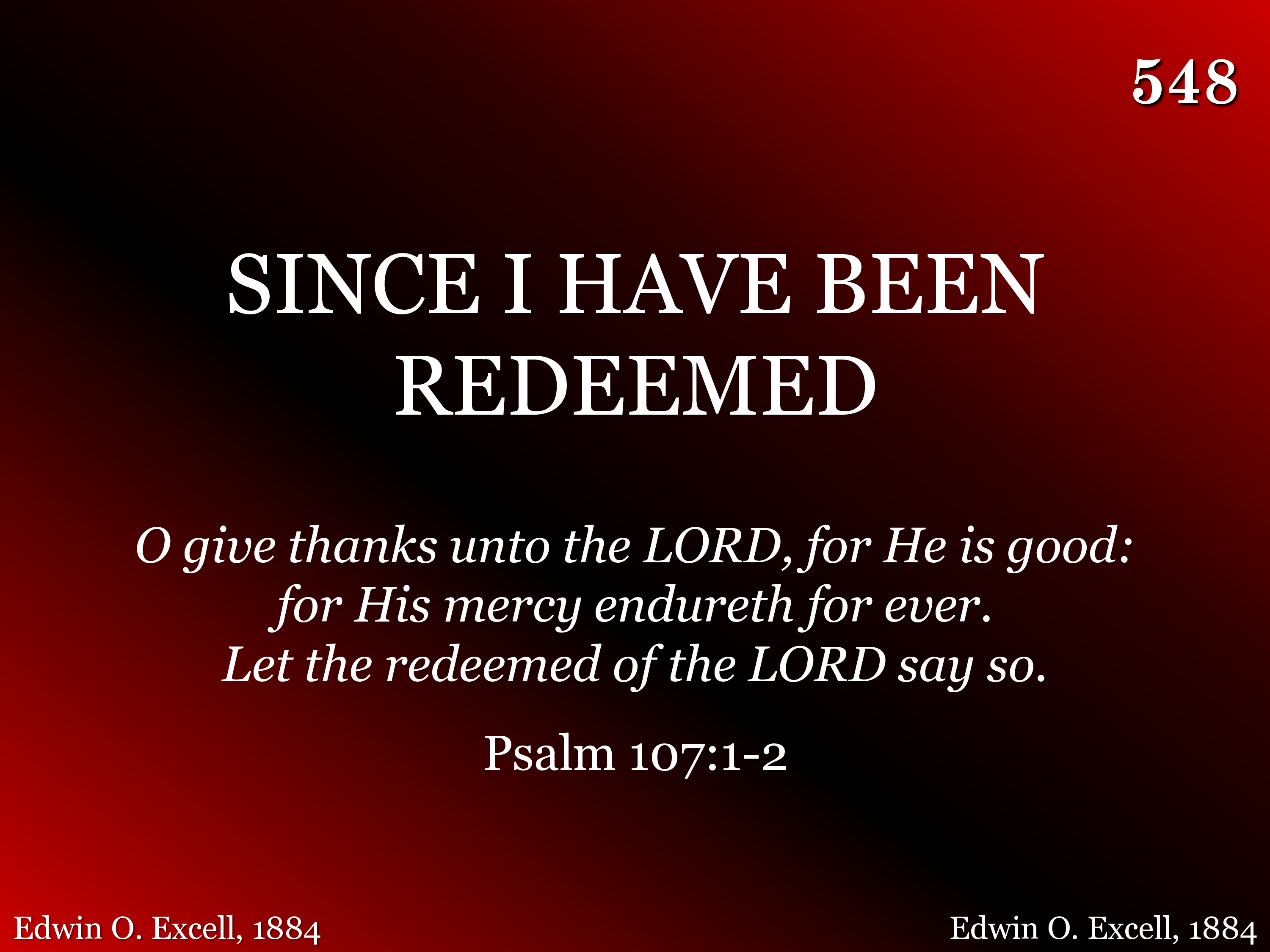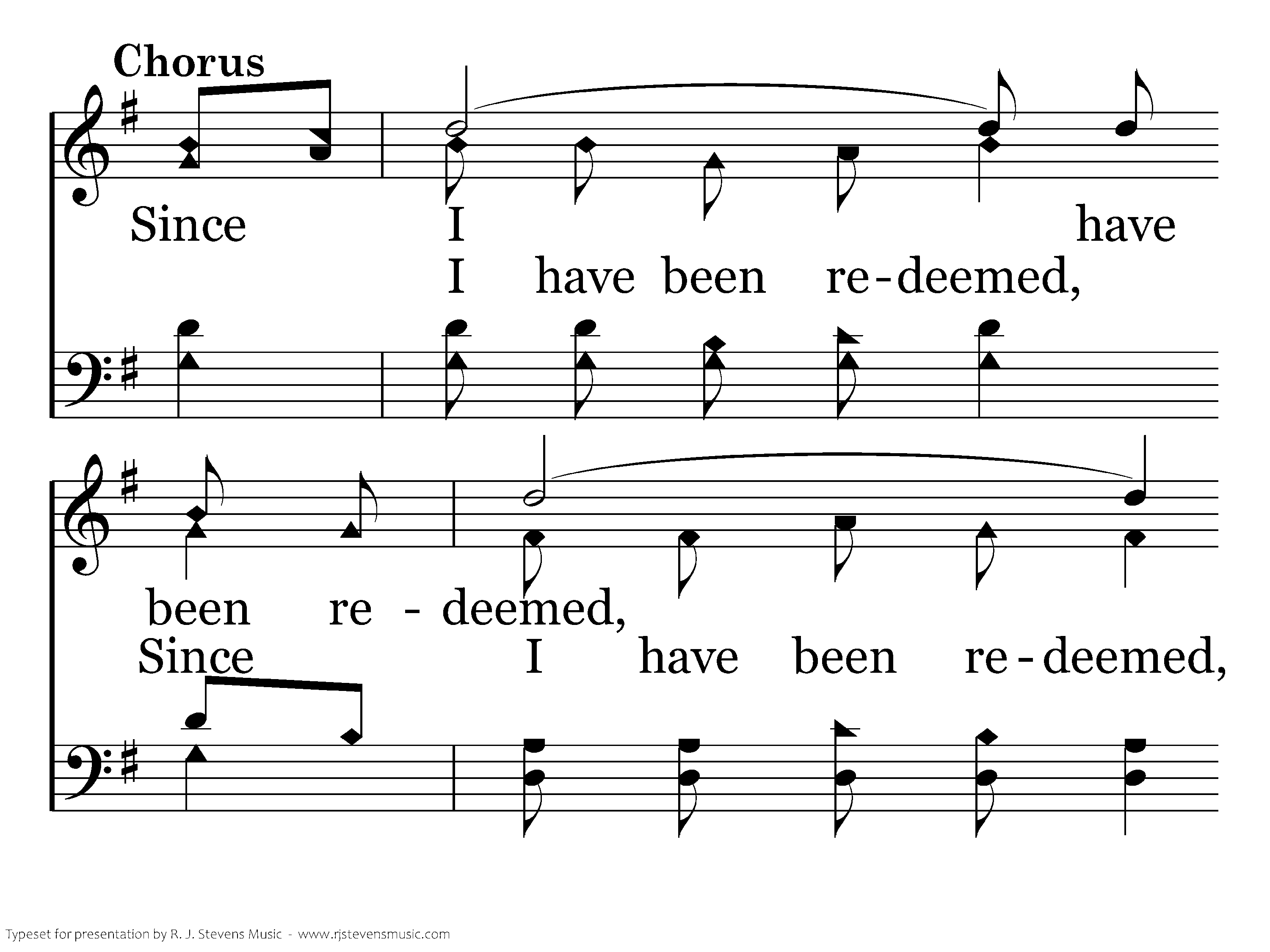 Since I have been redeemed, Since I have been redeemed I will glory in His name; Since I have been redeemed, I will glory in my Savior's name.