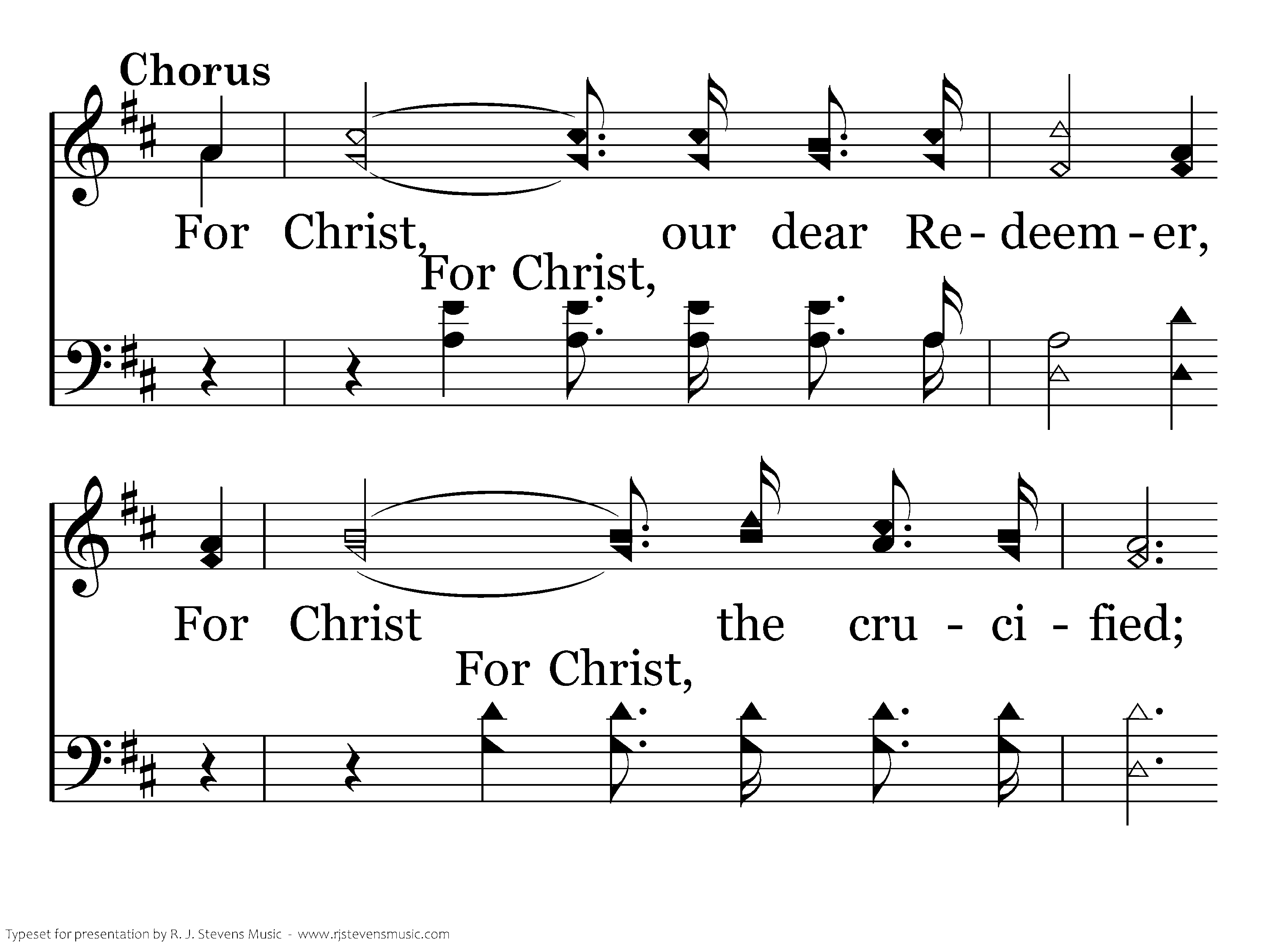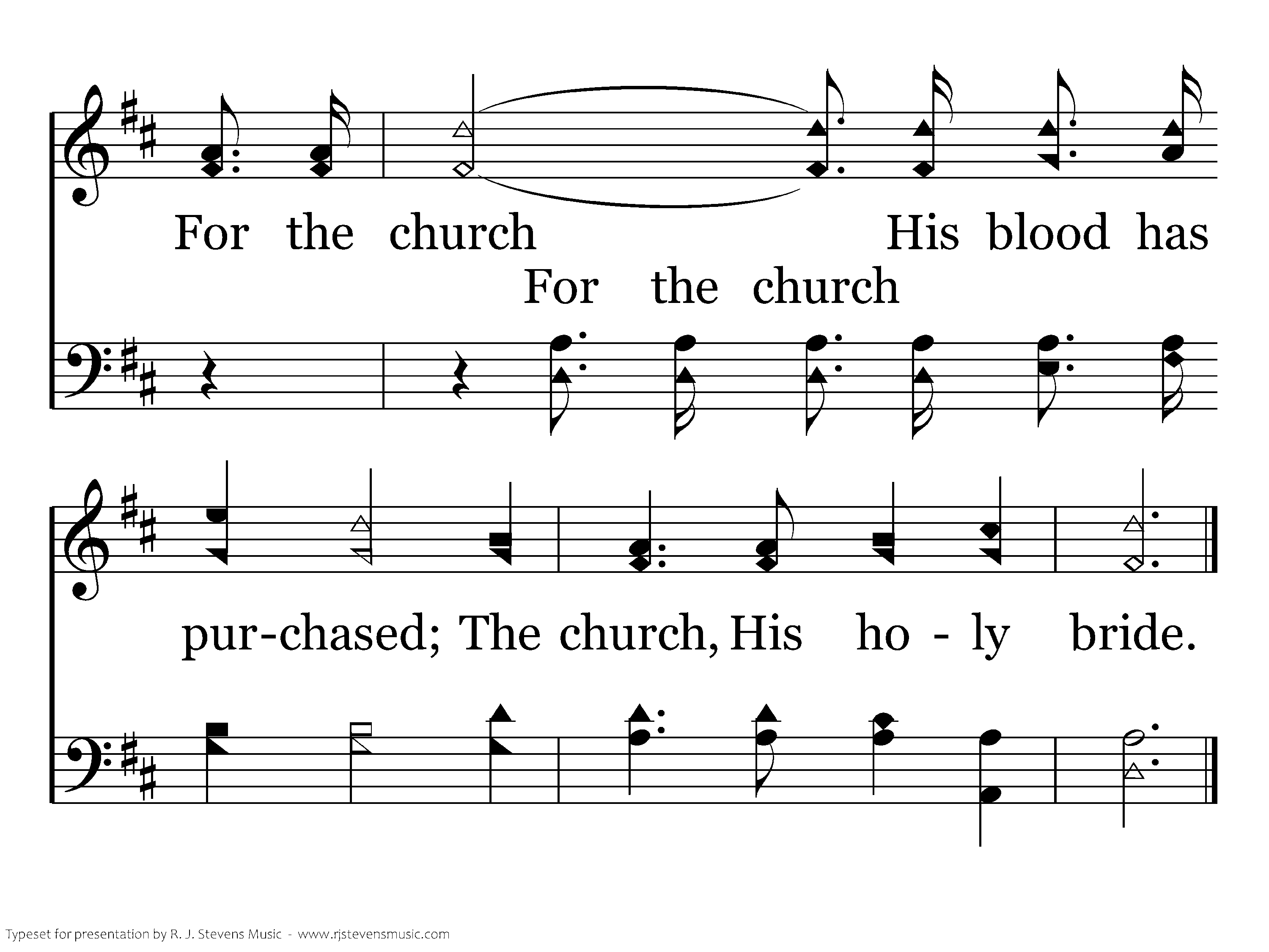For Christ, our dear Redeemer, For Christ, the crucified; For the church His blood hath purchased; The church, His holy bride.