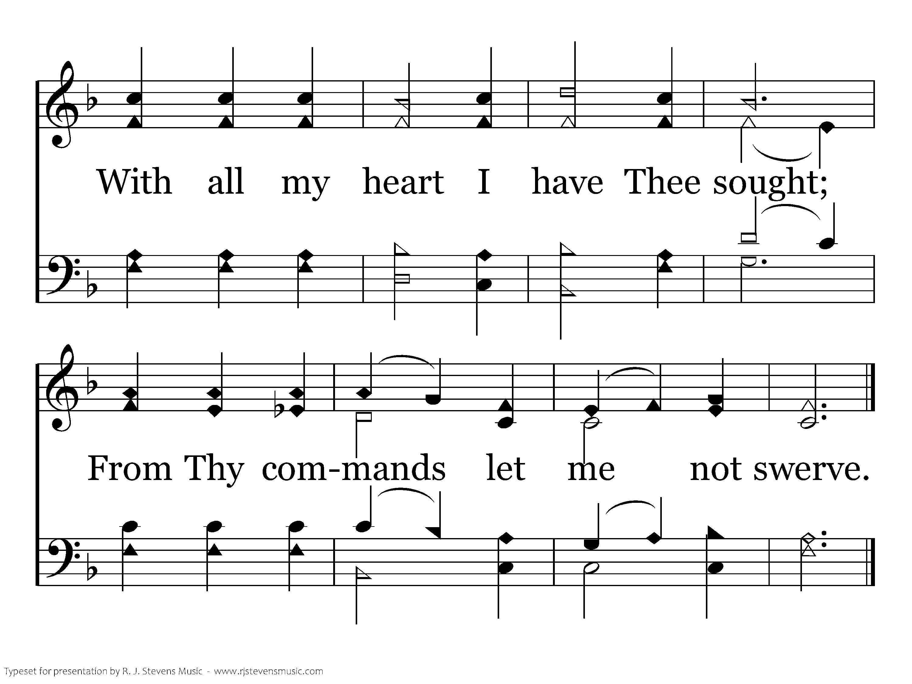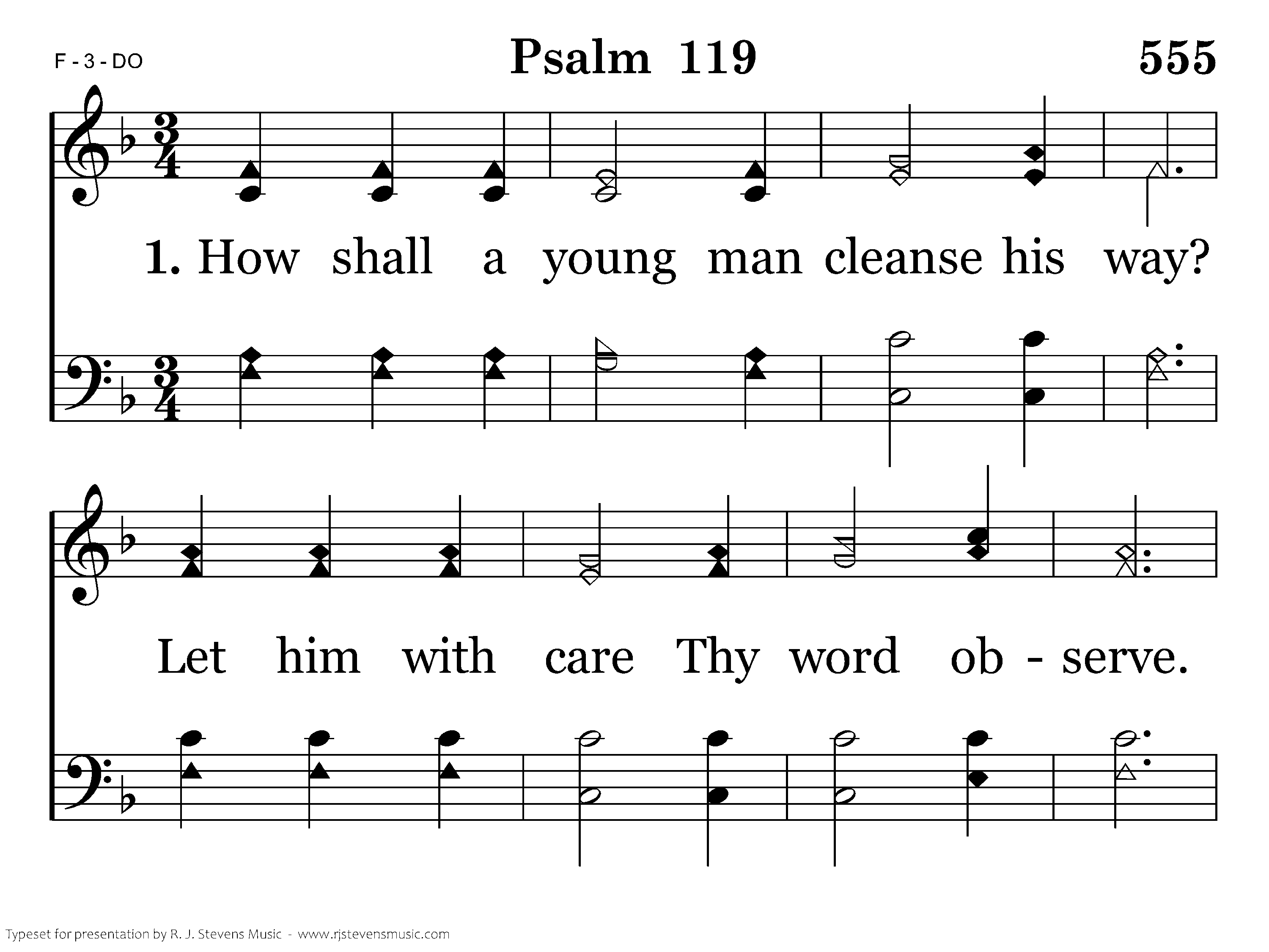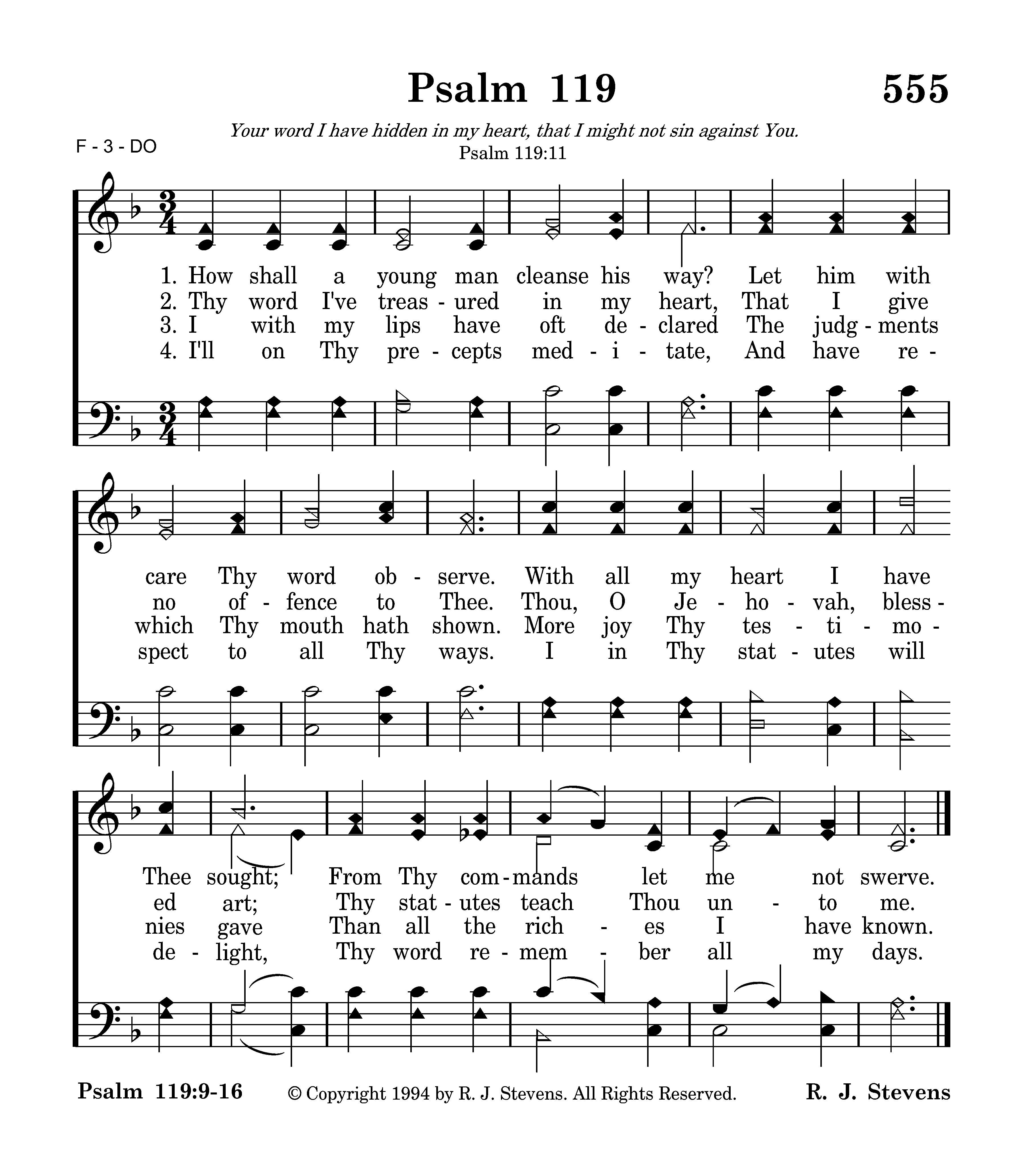 How shall a young man cleanse his way? Let him with care Thy word observe. With all my heart I have Thee sought; From Thy commands let me not swerve.
