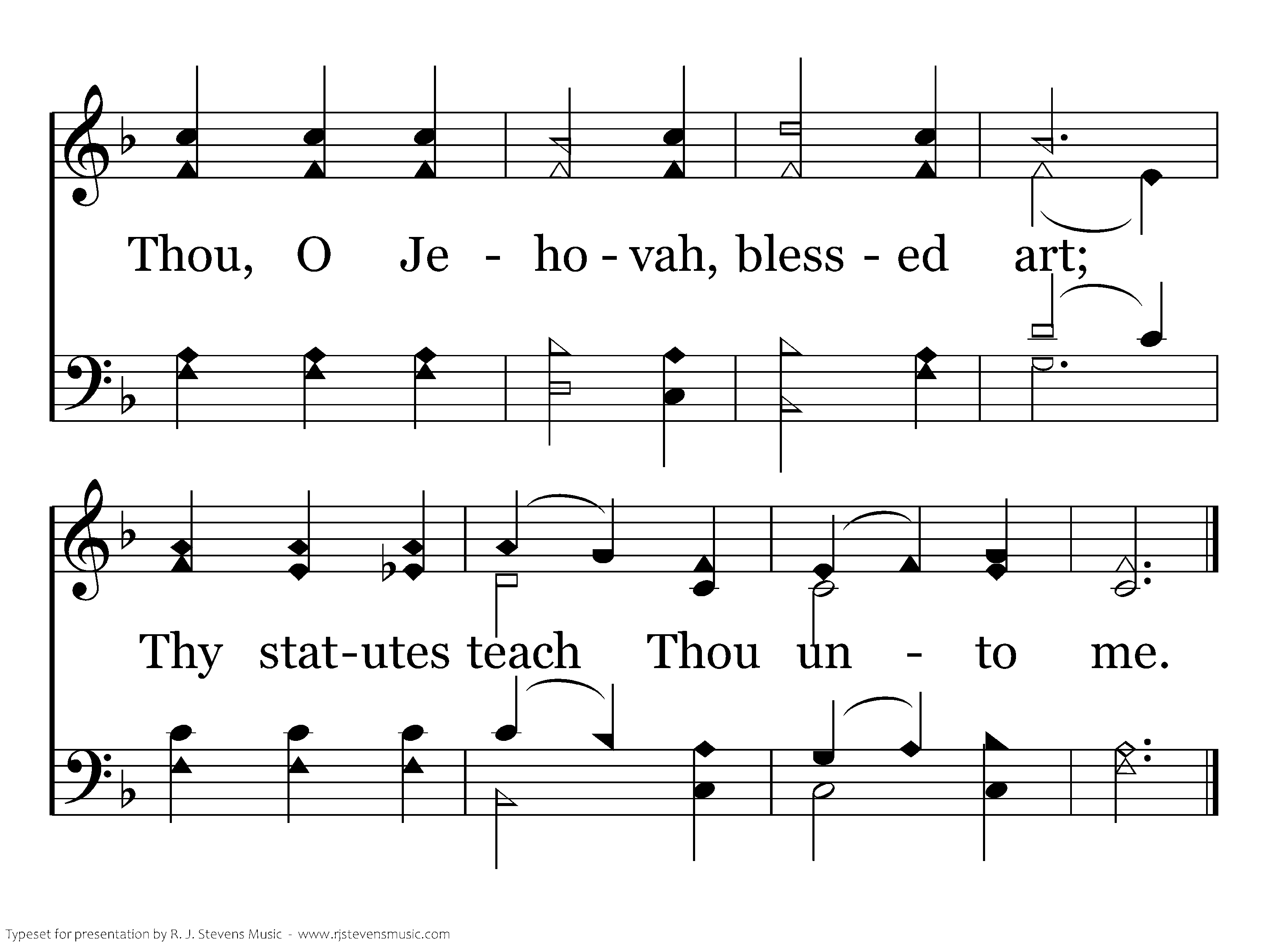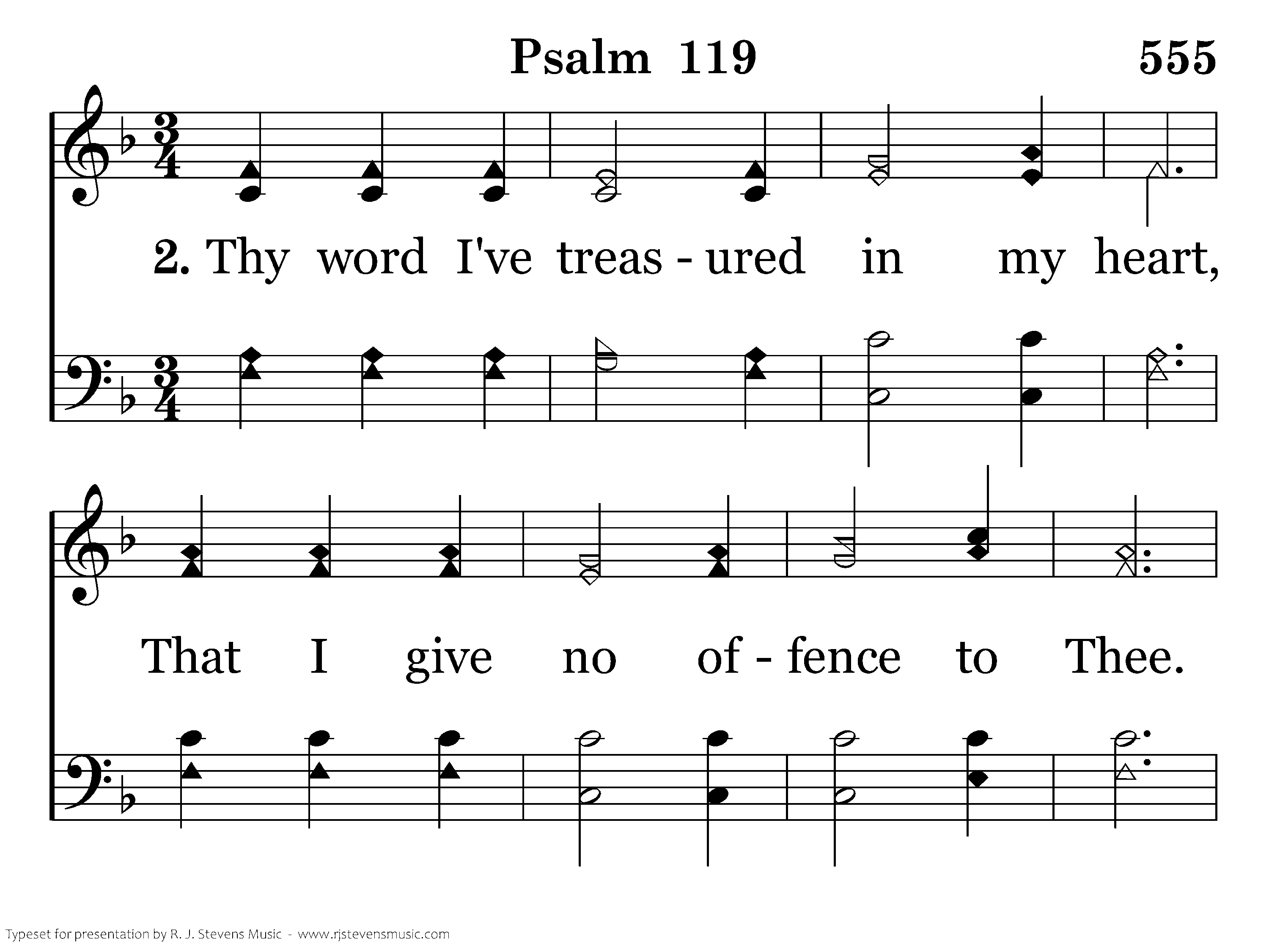 Thy word I've treasured in my heart, That I give no offence to Thee. Thou, O Jehovah, blessed art; Thy statutes teach Thou unto me.