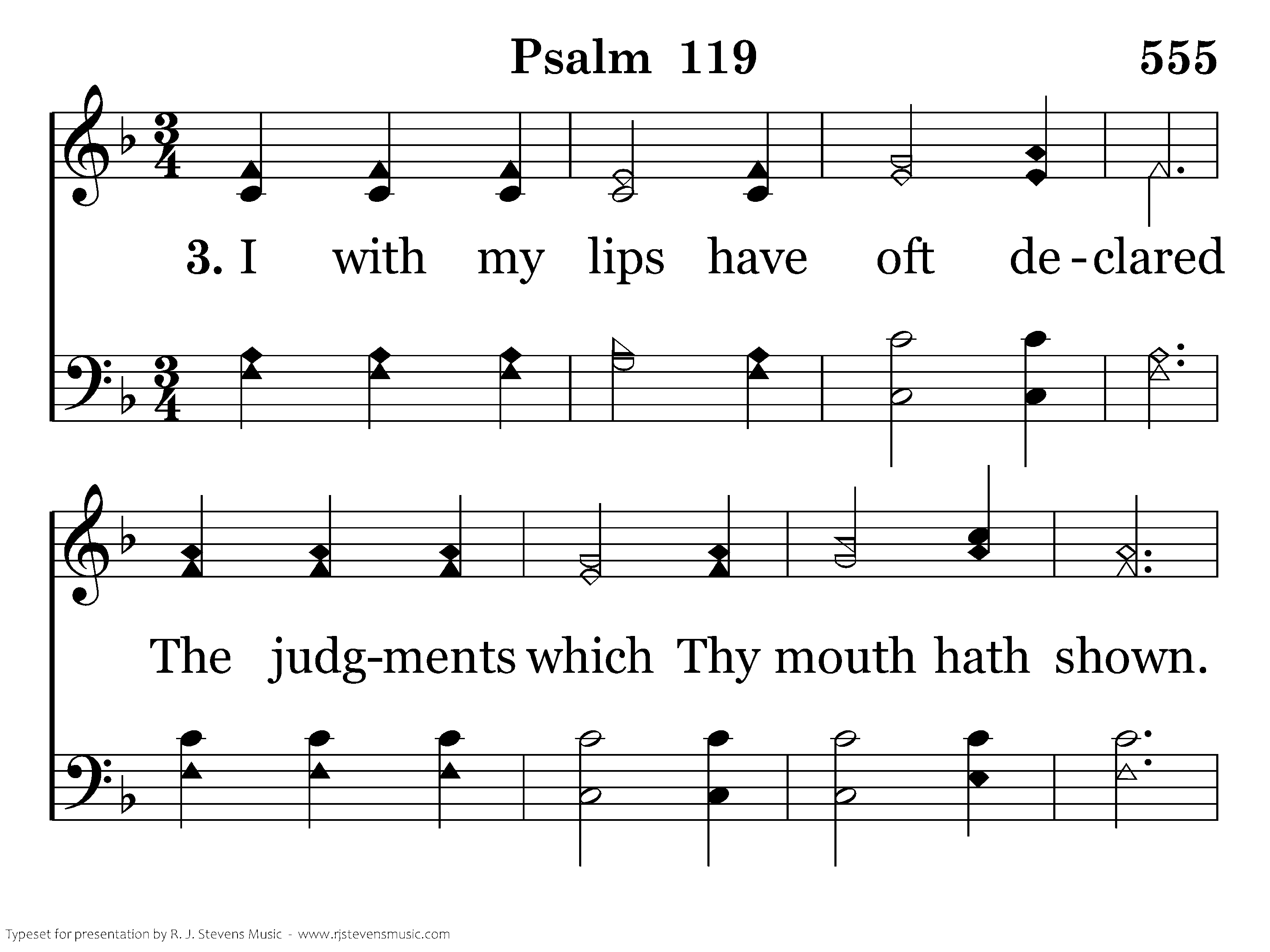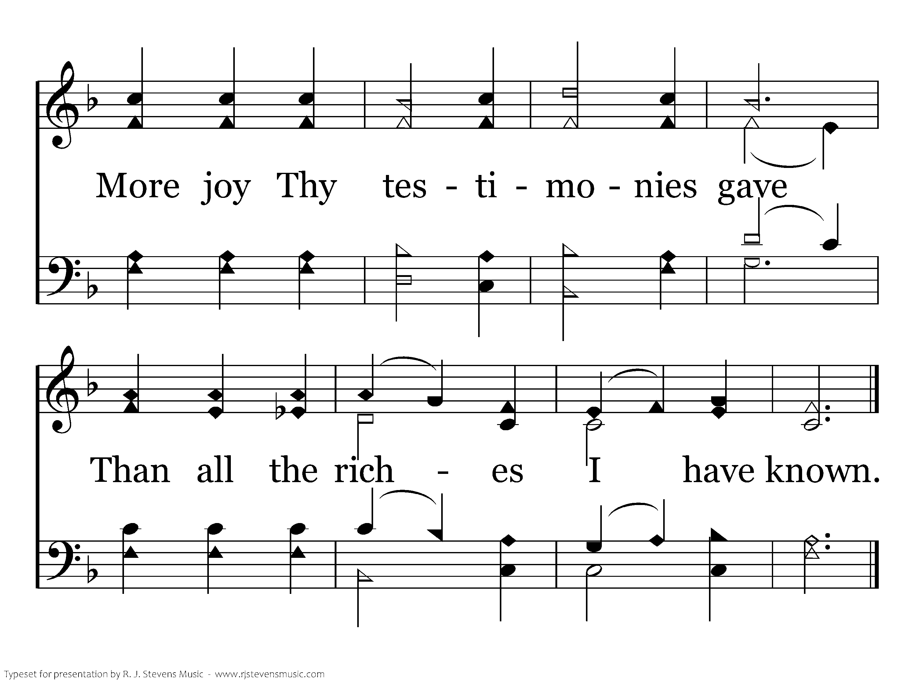 I with my lips have oft declared The judgments which Thy mouth hath shown. More joy Thy testimonies gave Than all the riches I have known.