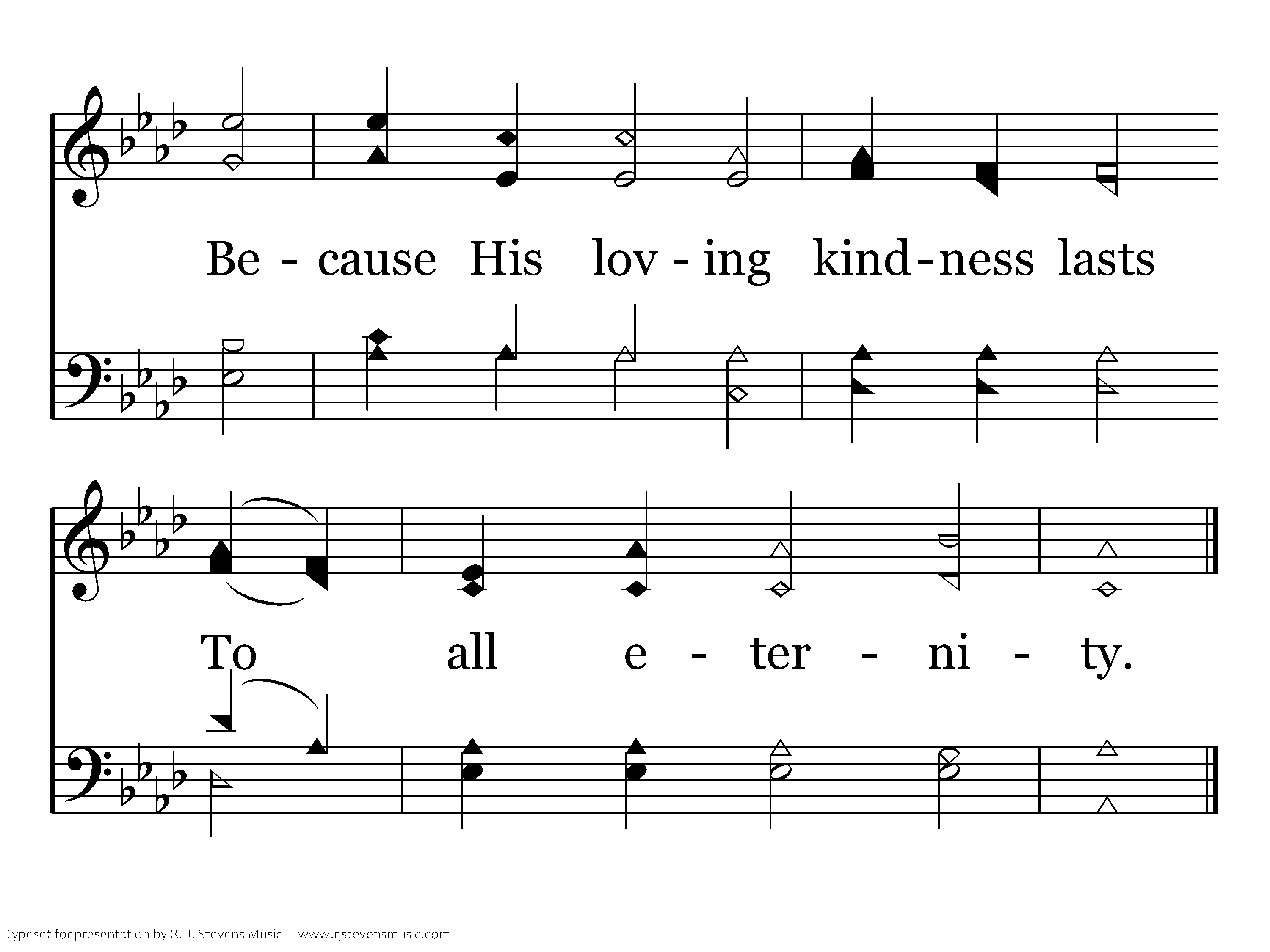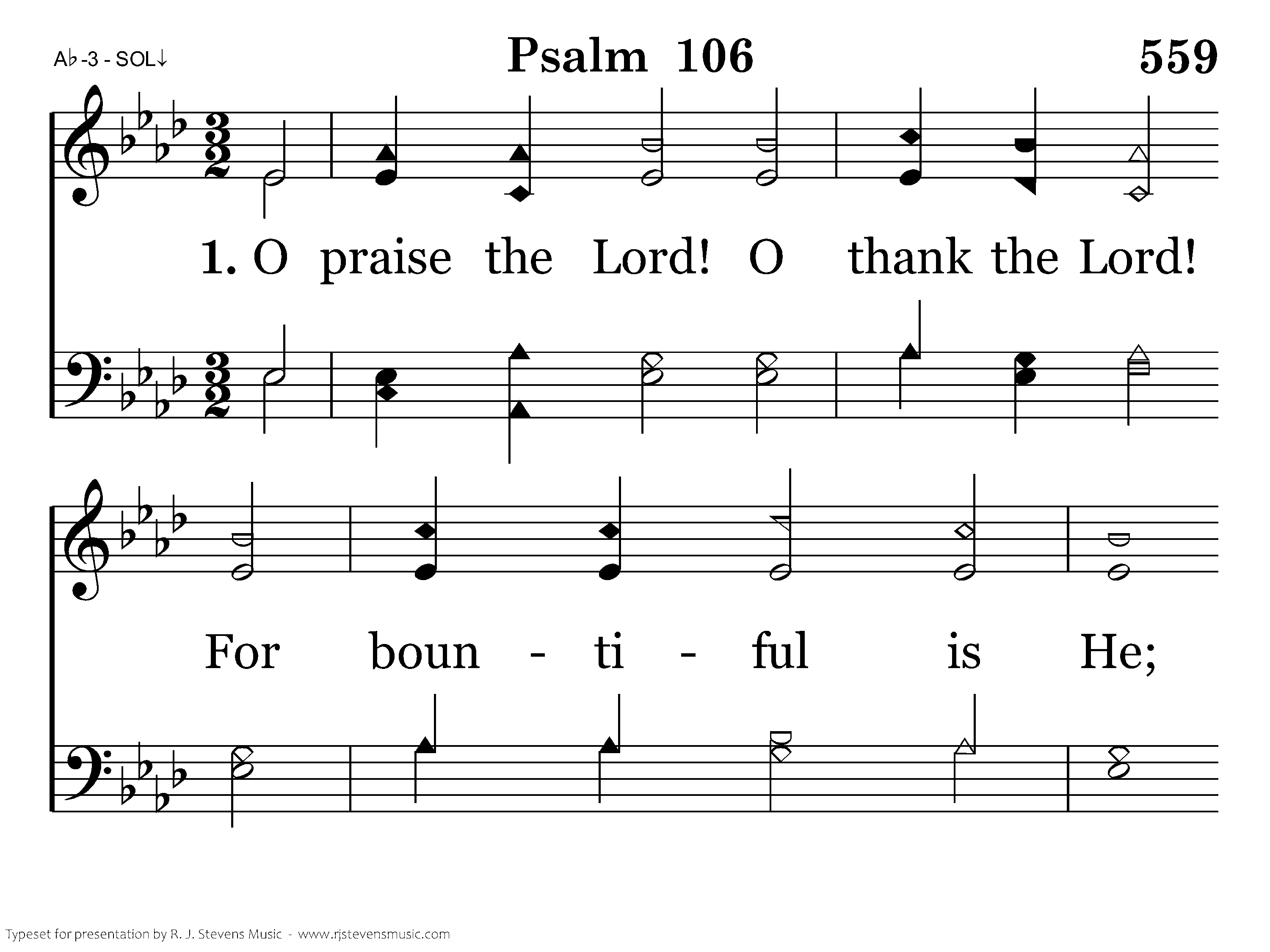 O praise the Lord! O thank the Lord! For bountiful is He; Because His loving kindness lasts To all eternity.