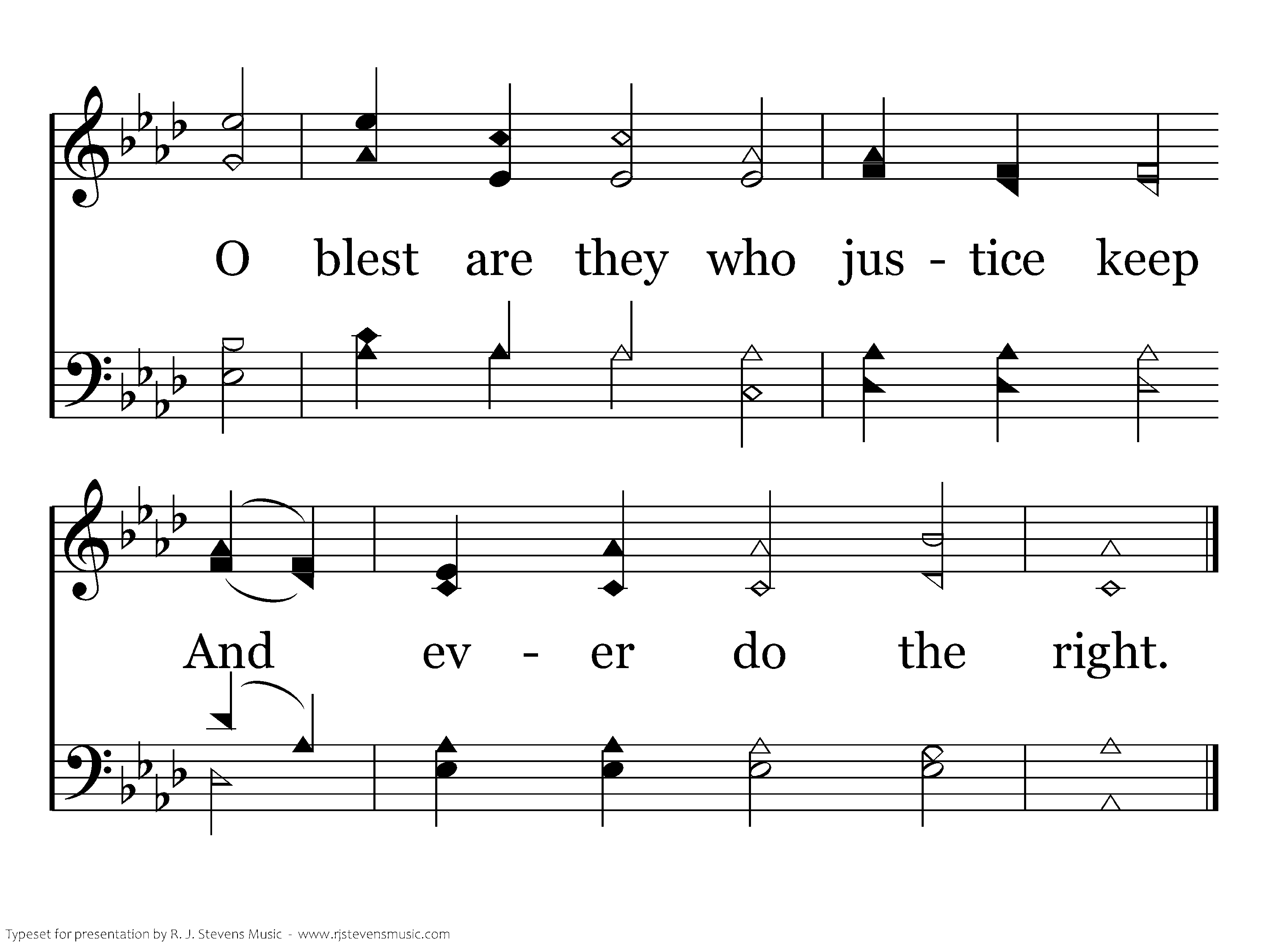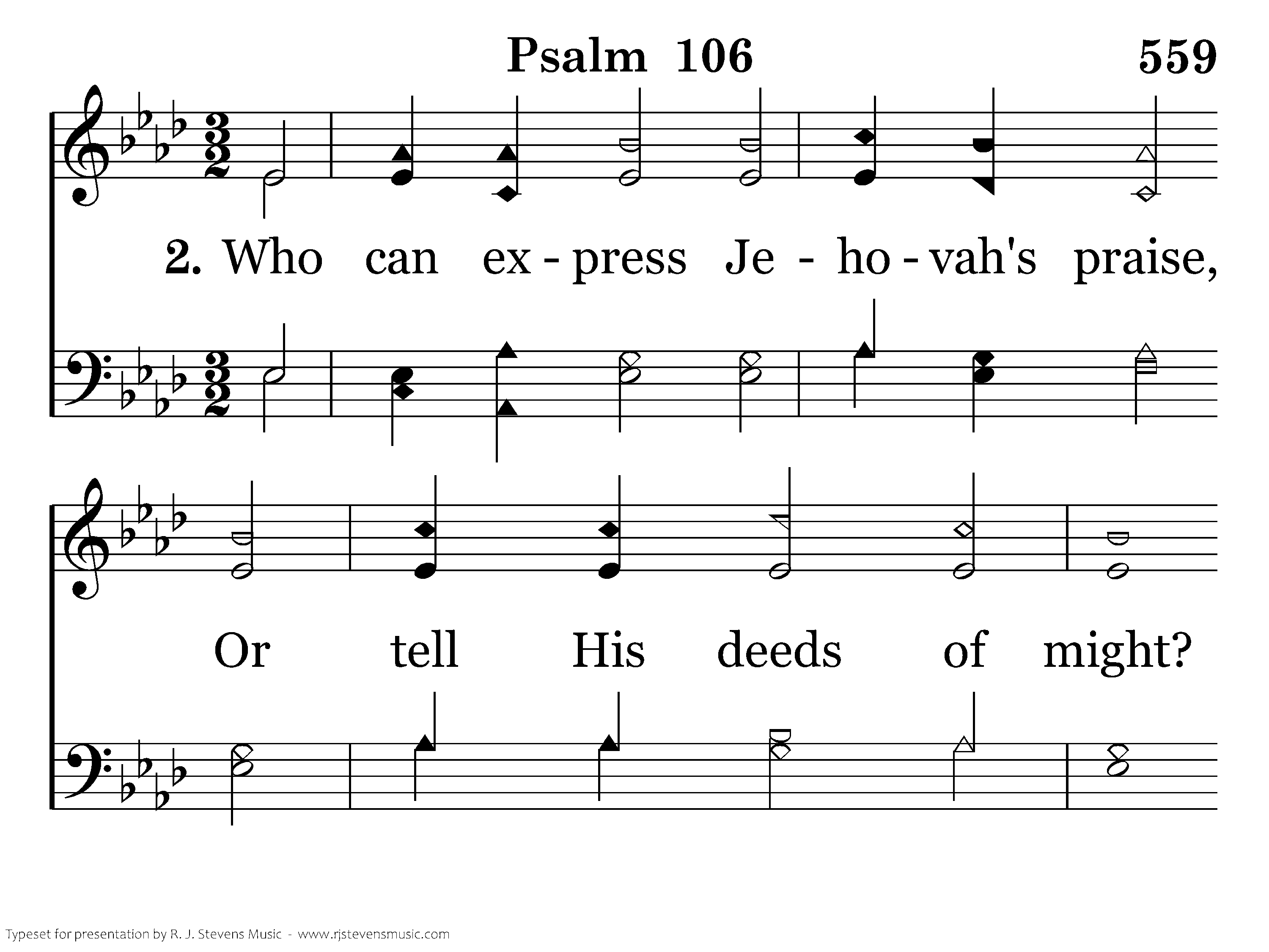 Who can express Jehovah's praise, Or tell His deeds of might? O blest are they who justice keep And ever do the right.