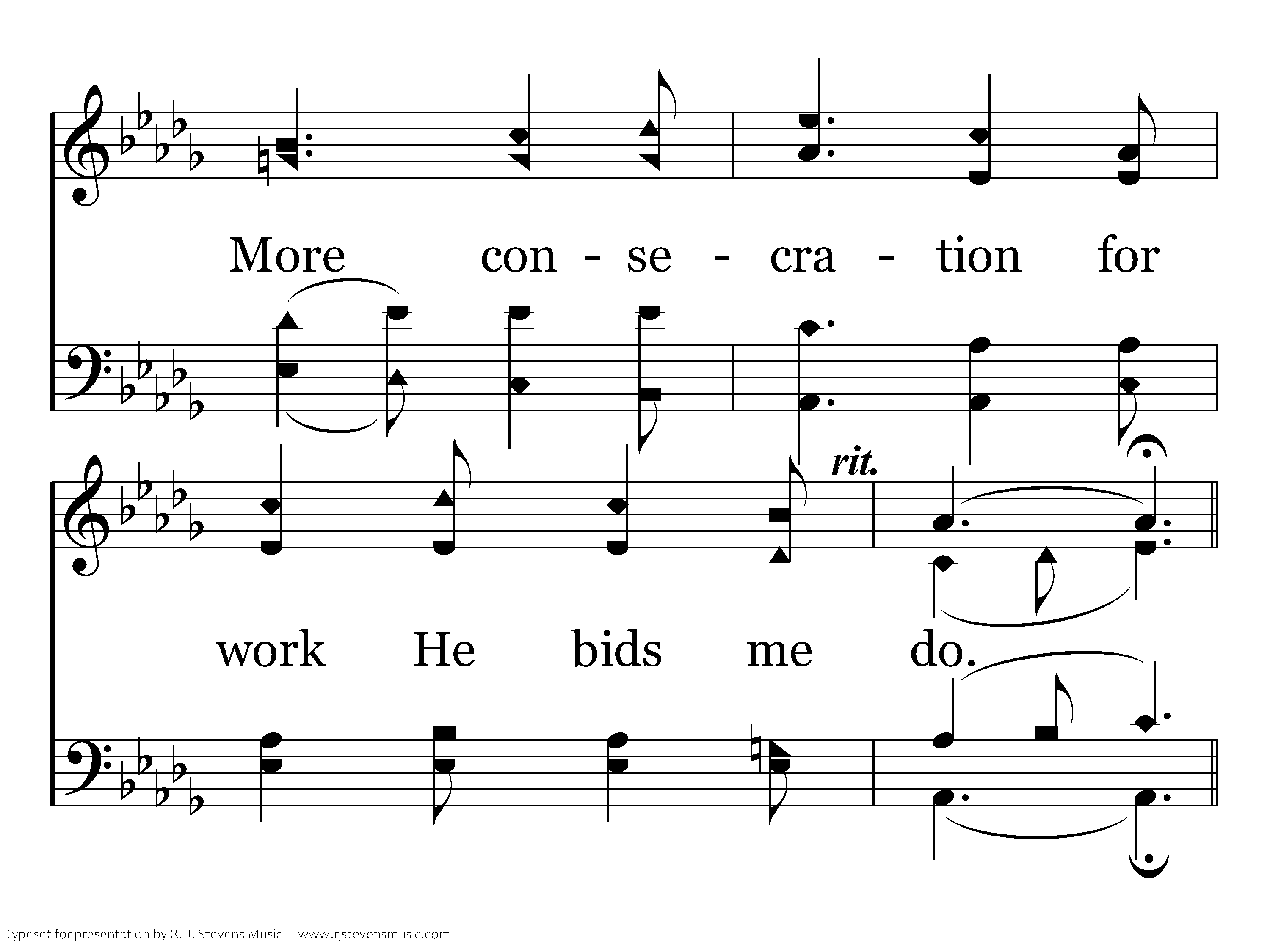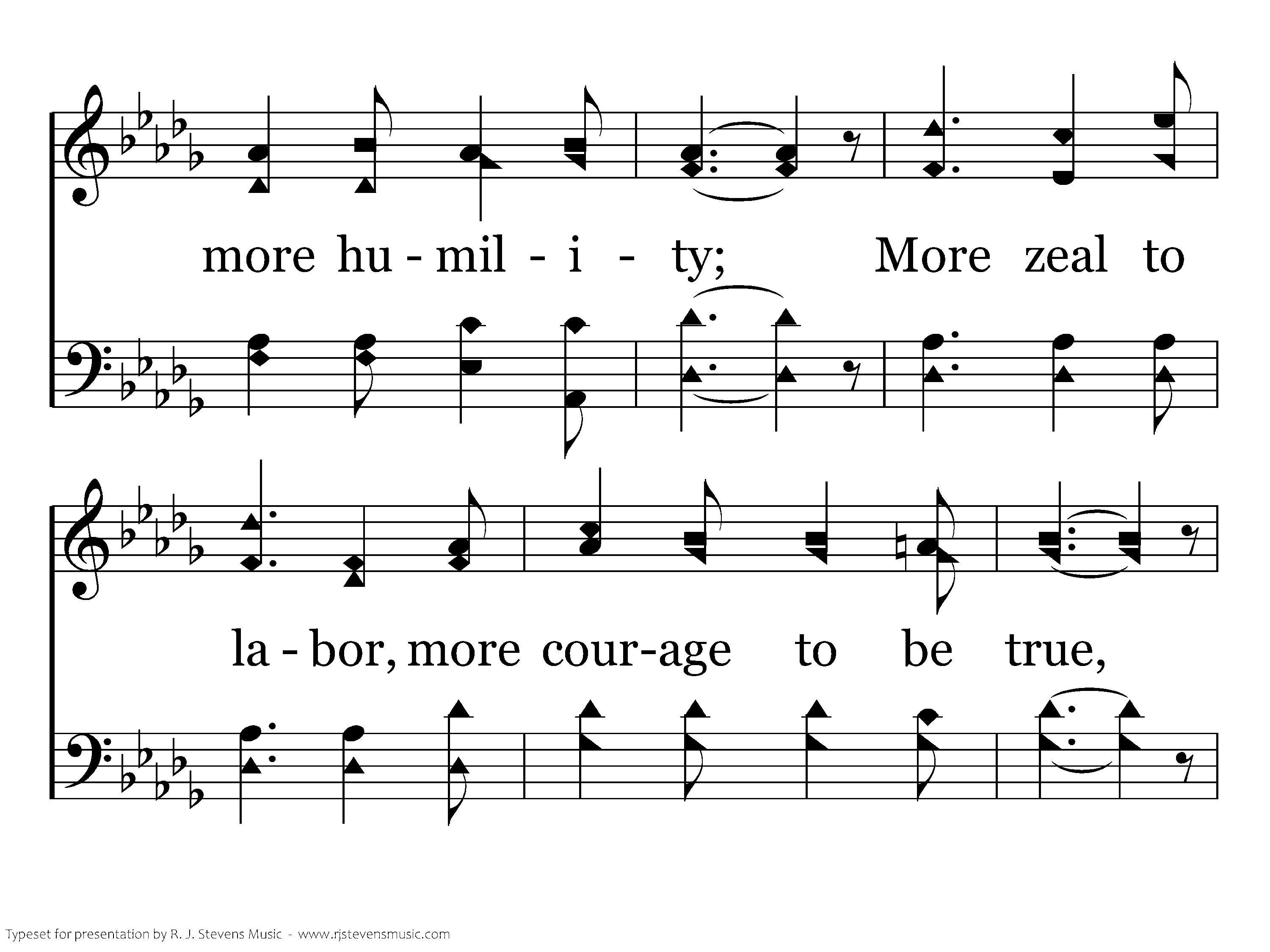 More like the Master I would ever be, More of His meekness, more humility; More zeal to labor, more courage to be true, More consecration for work He bids me do.
