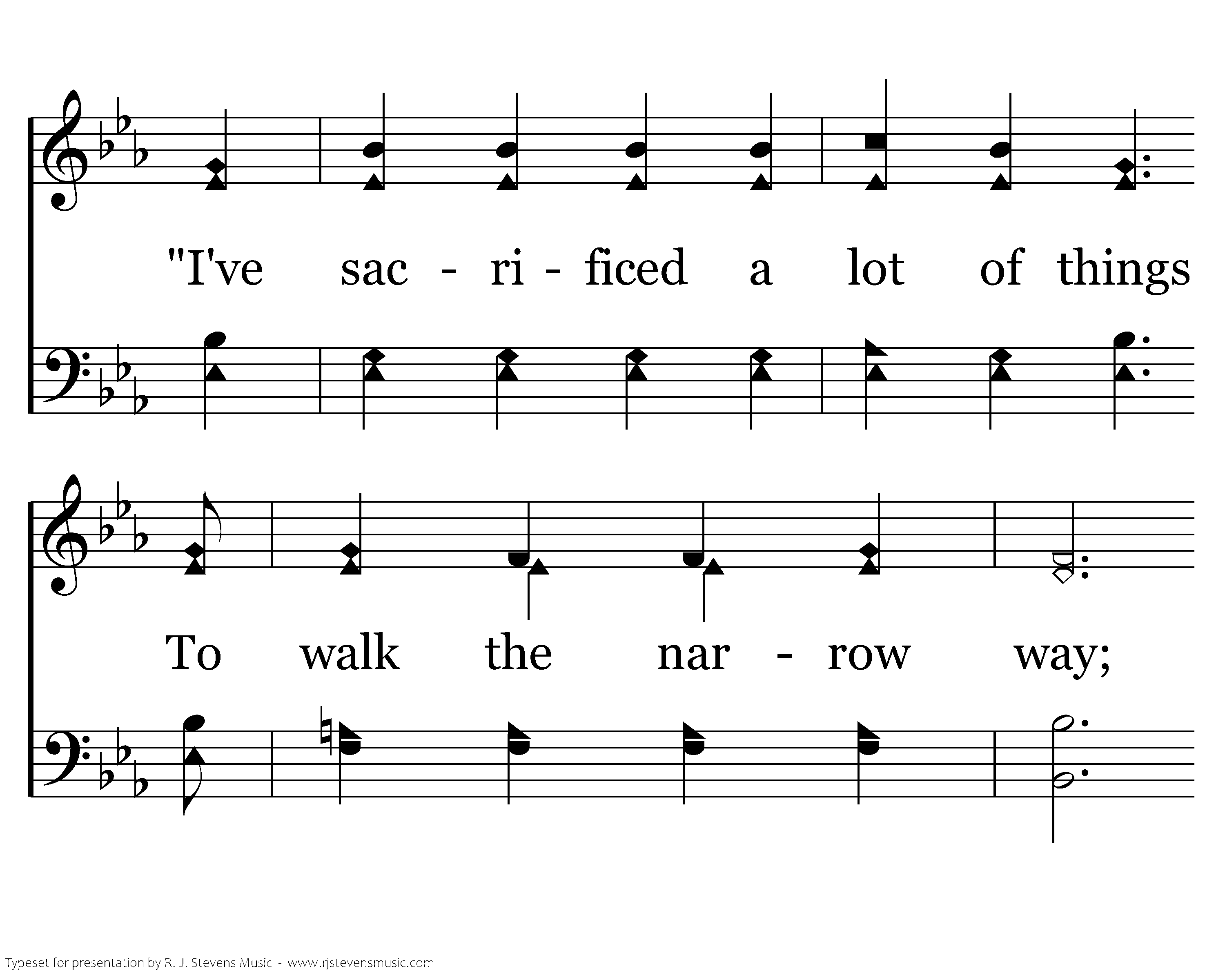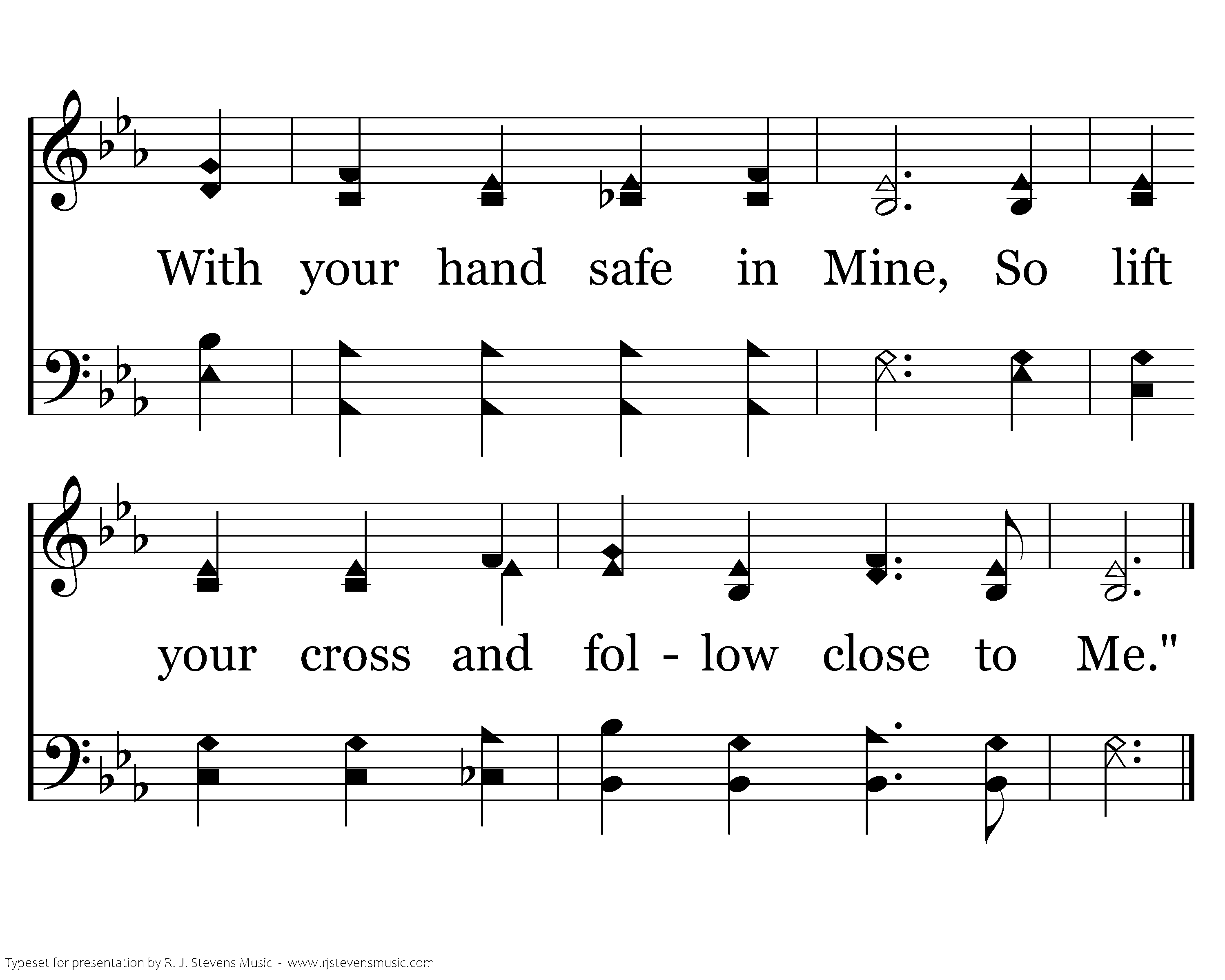 "I work so hard for Jesus" I often boast and say, "I've sacrificed a lot of things To walk the narrow way; I gave up fame and fortune; I'm worth a lot to Thee," And then I hear Him gently say to me: "I left the throne of glory And counted it but loss, My hands were nailed in anger Upon a cruel cross; But now we'll make the journey With your hand safe in Mine, So lift your cross and follow close to Me."