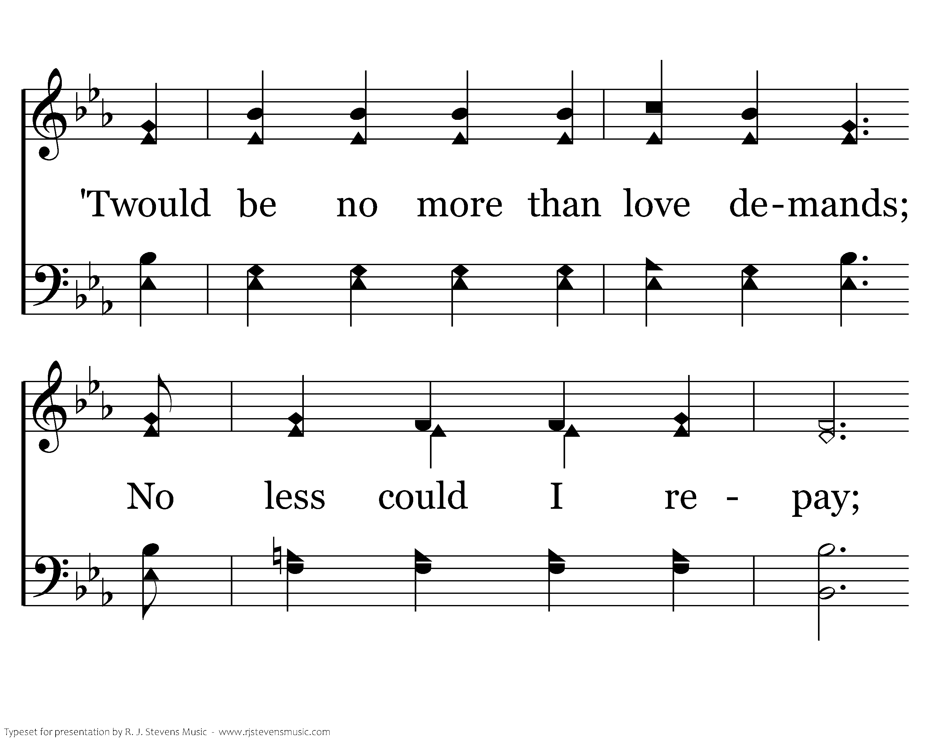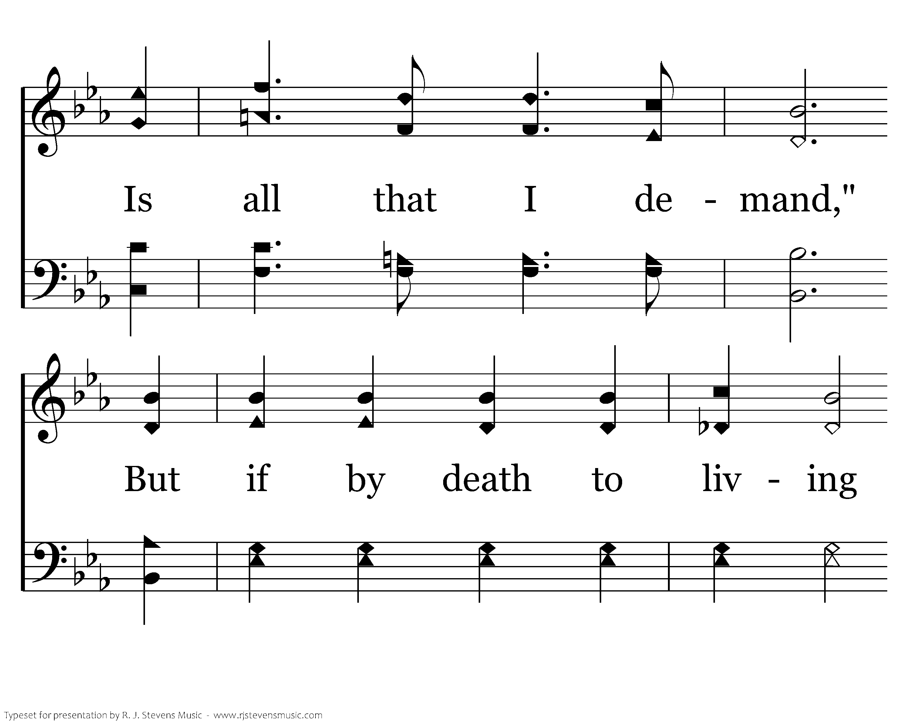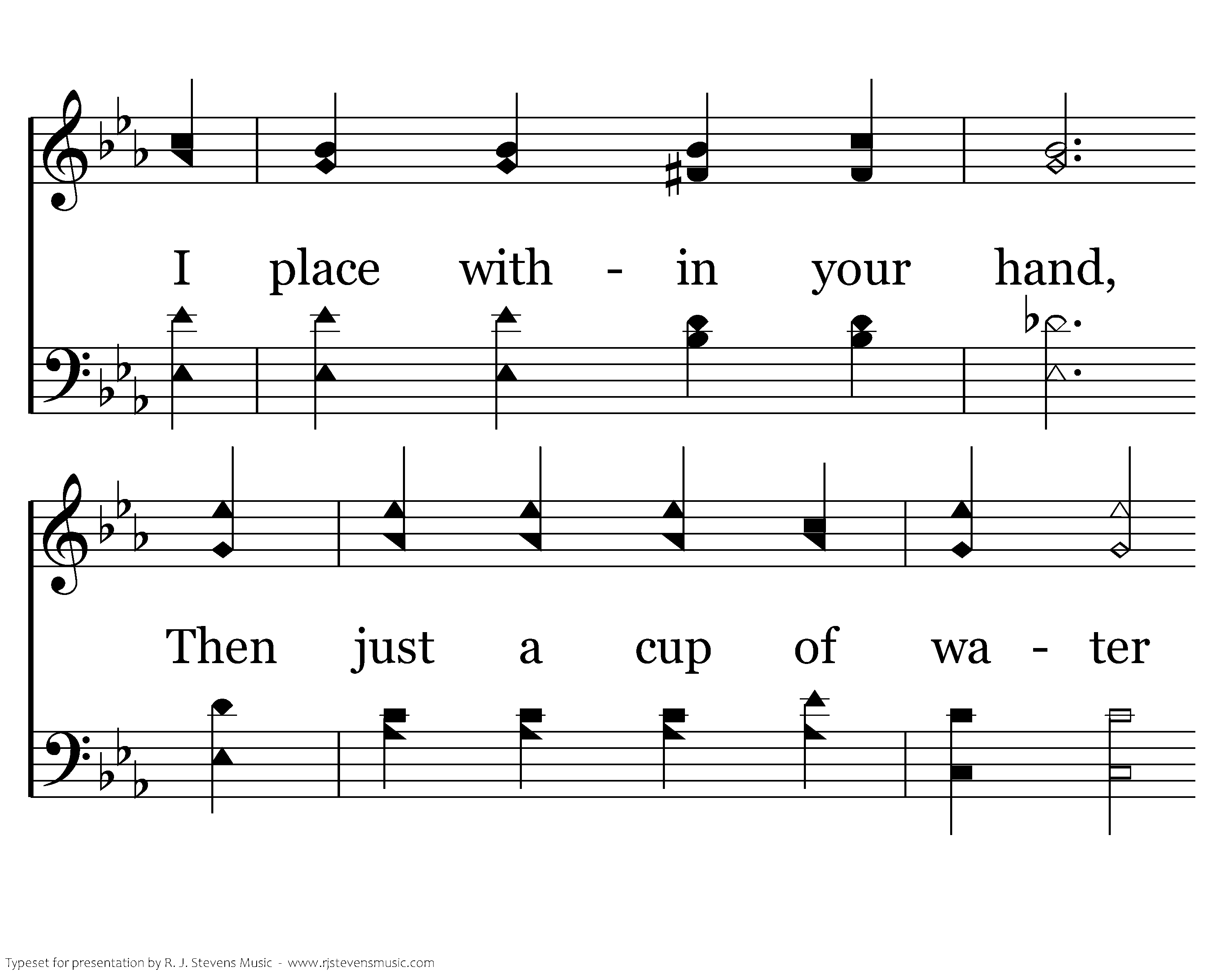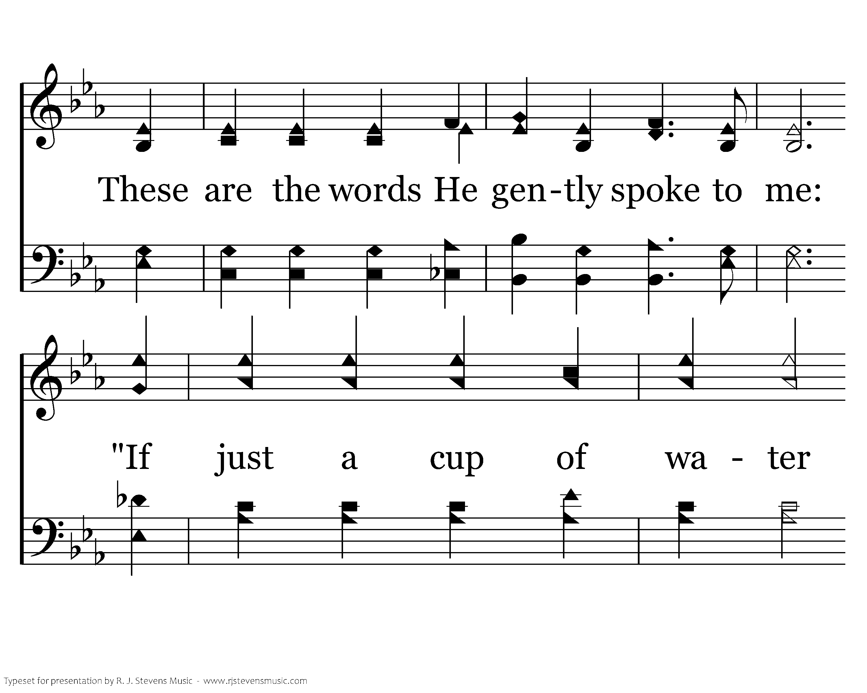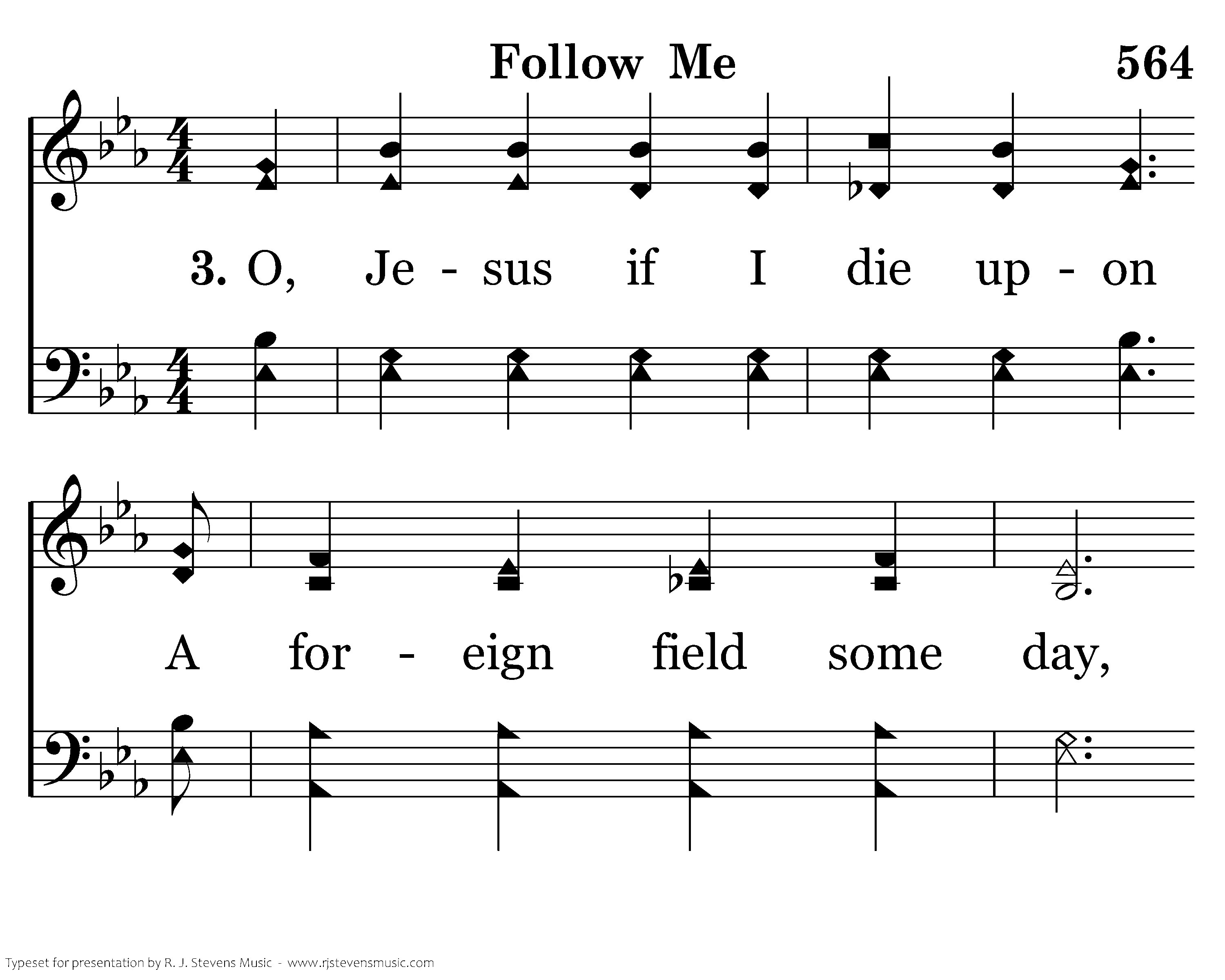O, Jesus if I die upon A foreign field some day, 'Twould be no more than love demands; No less could I repay; "No greater love hath mortal man Than for a friend to die," These are the words He gently spoke to me: "If just a cup of water I place within your hand, Then just a cup of water Is all that I demand;" But if by death to living They can Thy glory see, I'll take my cross and follow close to Thee.