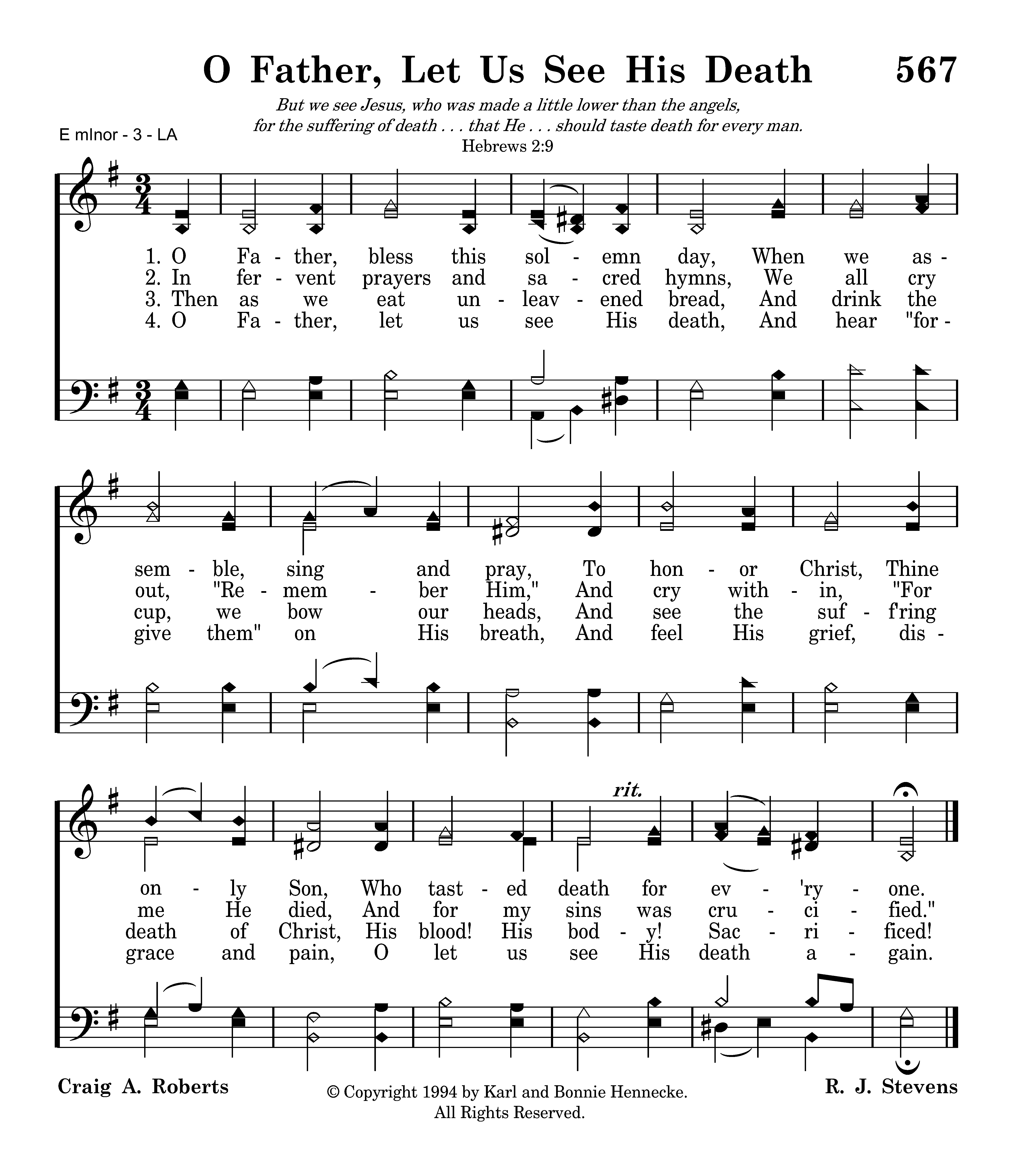 O Father, bless this solemn day, When we assemble, sing and pray, To honor Christ, Thine only Son, Who tasted death for ev'ryone.