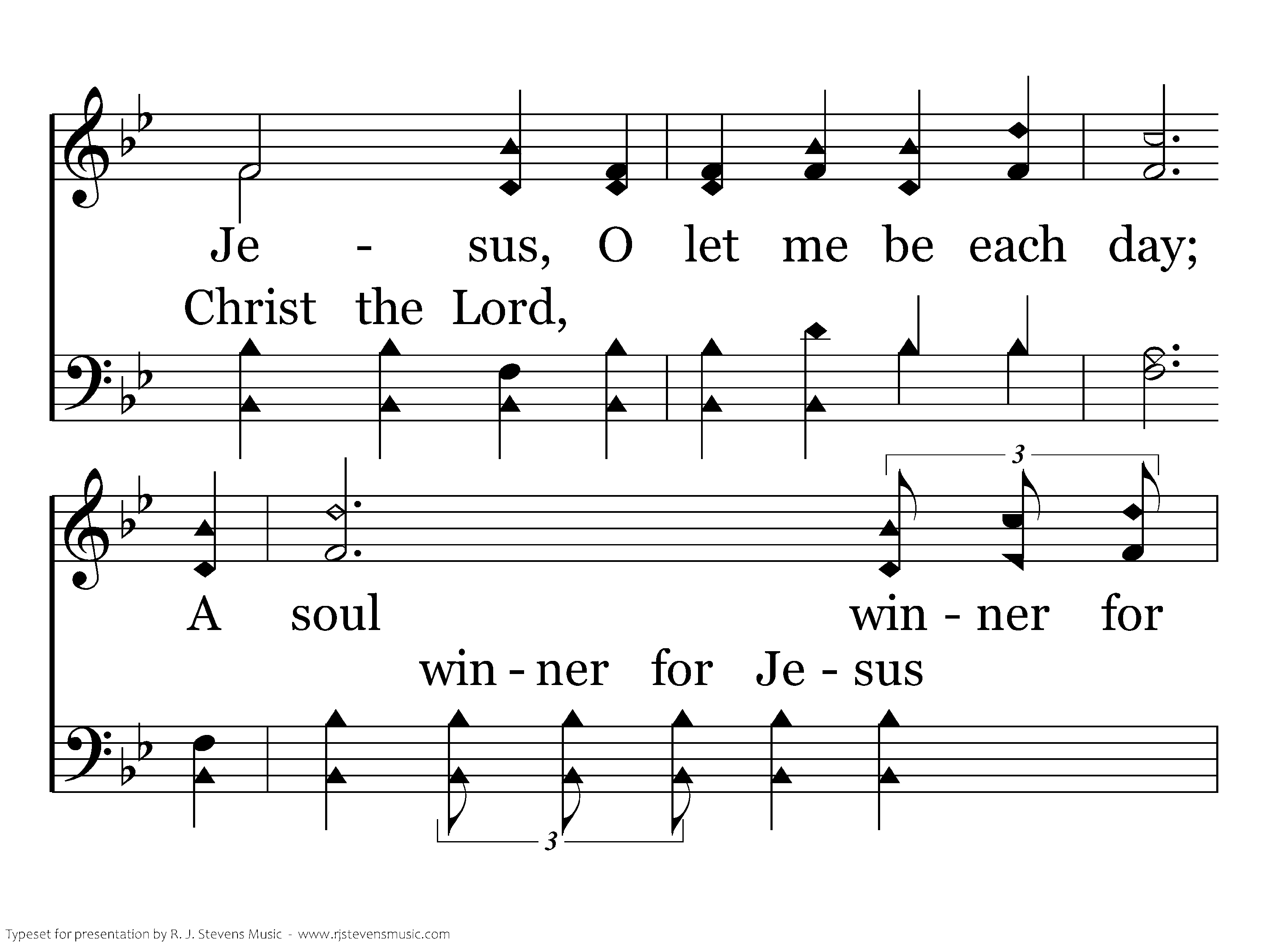 A soul winner for Jesus, A soul winner for Jesus, O let me be each day, A soul winner for Jesus, A soul winner for Jesus, He's done so much for me.
