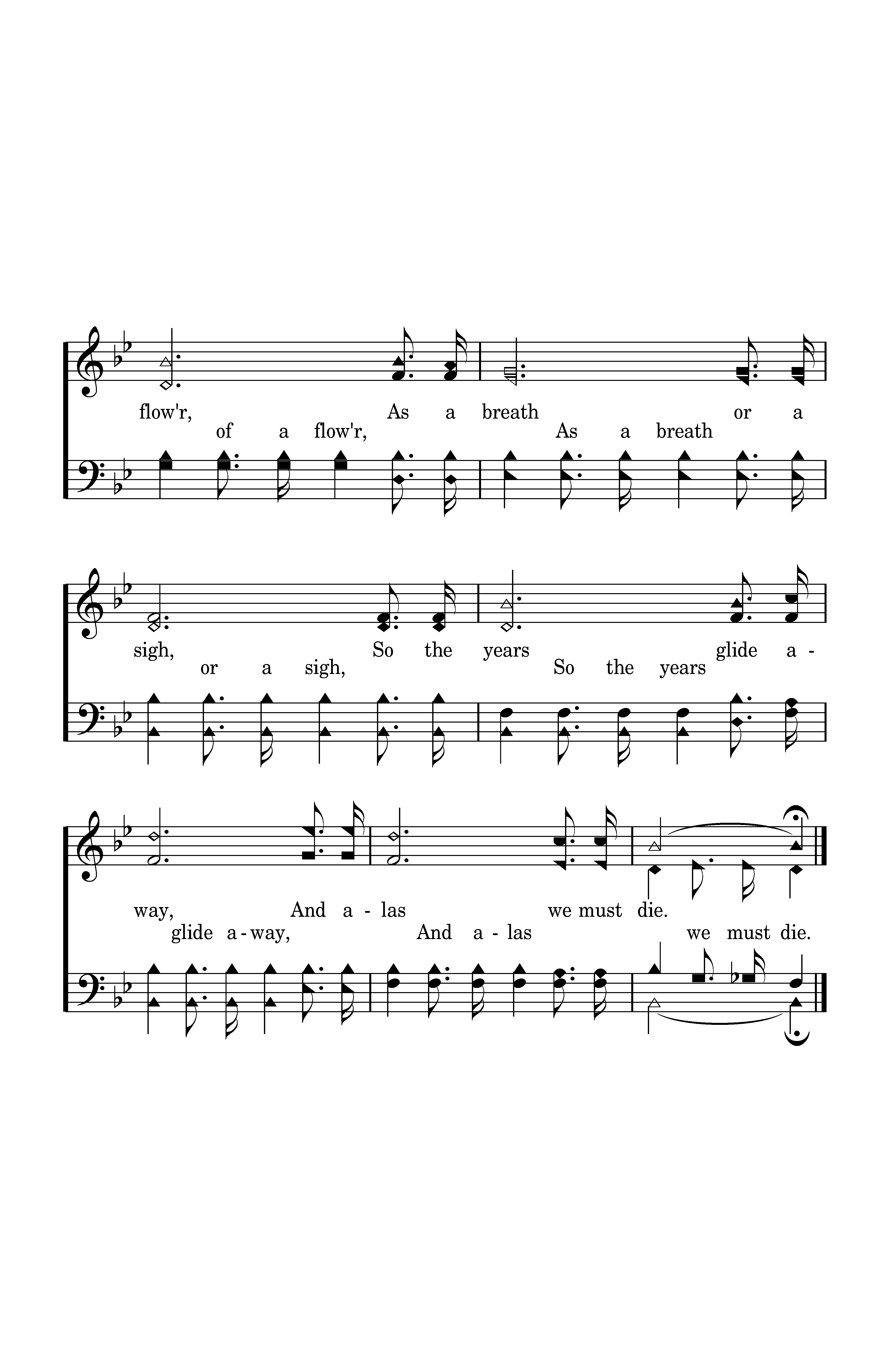 As the life of a flow'r, As a breath or a sigh, So the years glide away, And alas we must die.