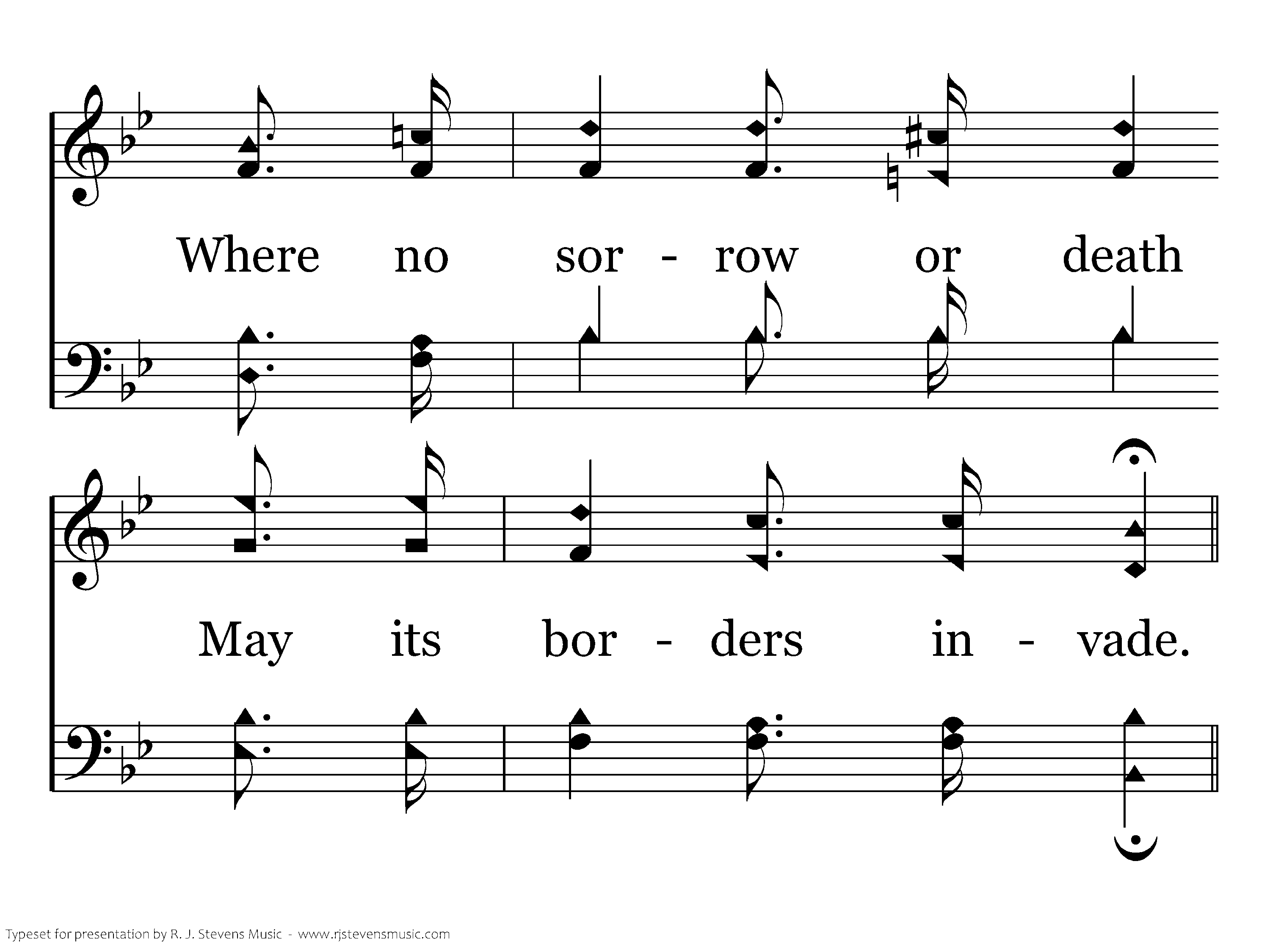 While we tarry below Let us trust and adore Him who leads us each day Tow'rd the radiant shore Where the sun never sets, And the flow'rs never fade, Where no sorrow or death May its borders invade.