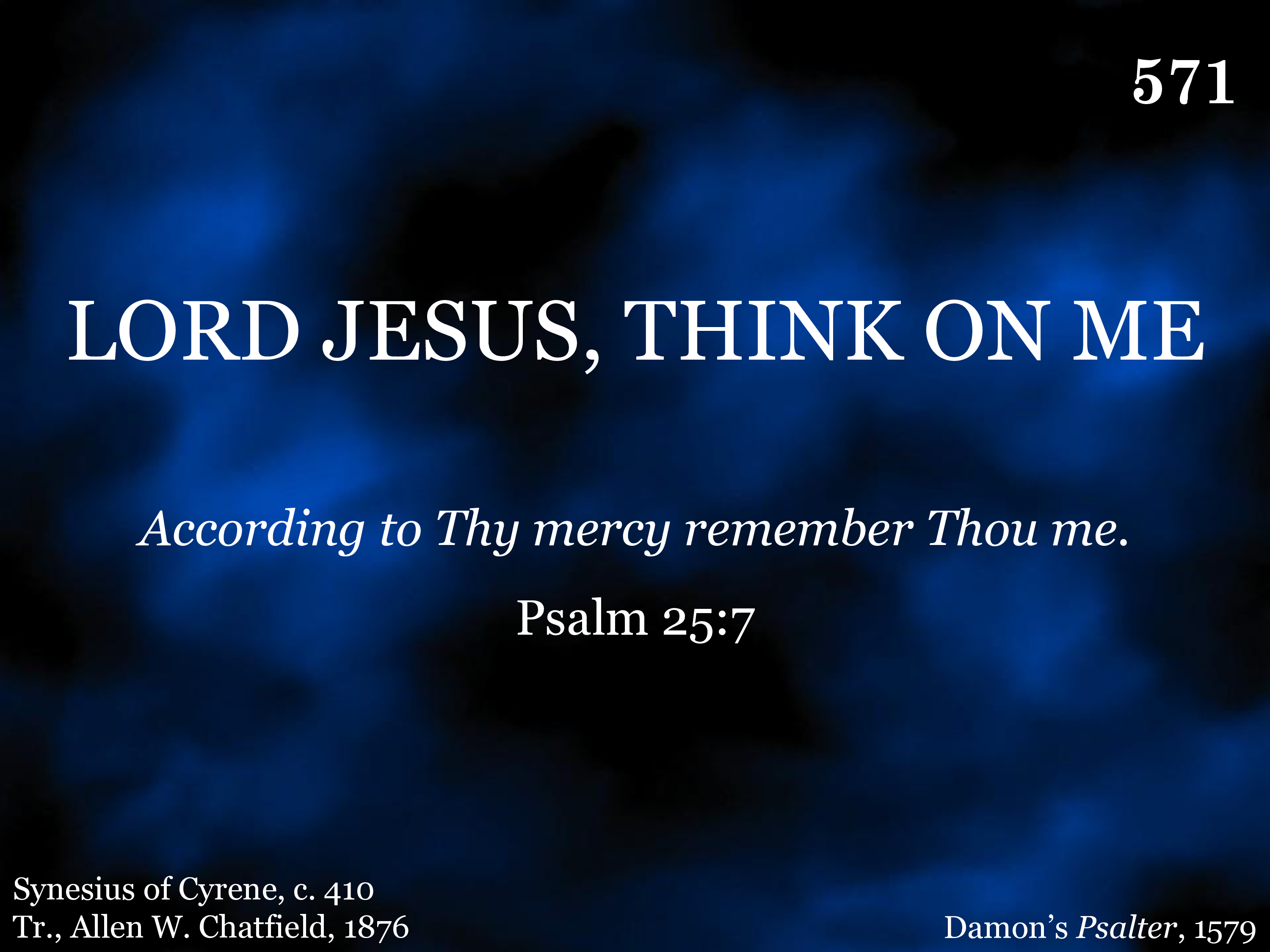 Lord Jesus, think on me, That when the flood is past, I may th'eternal brightness see And share Thy joy at last.