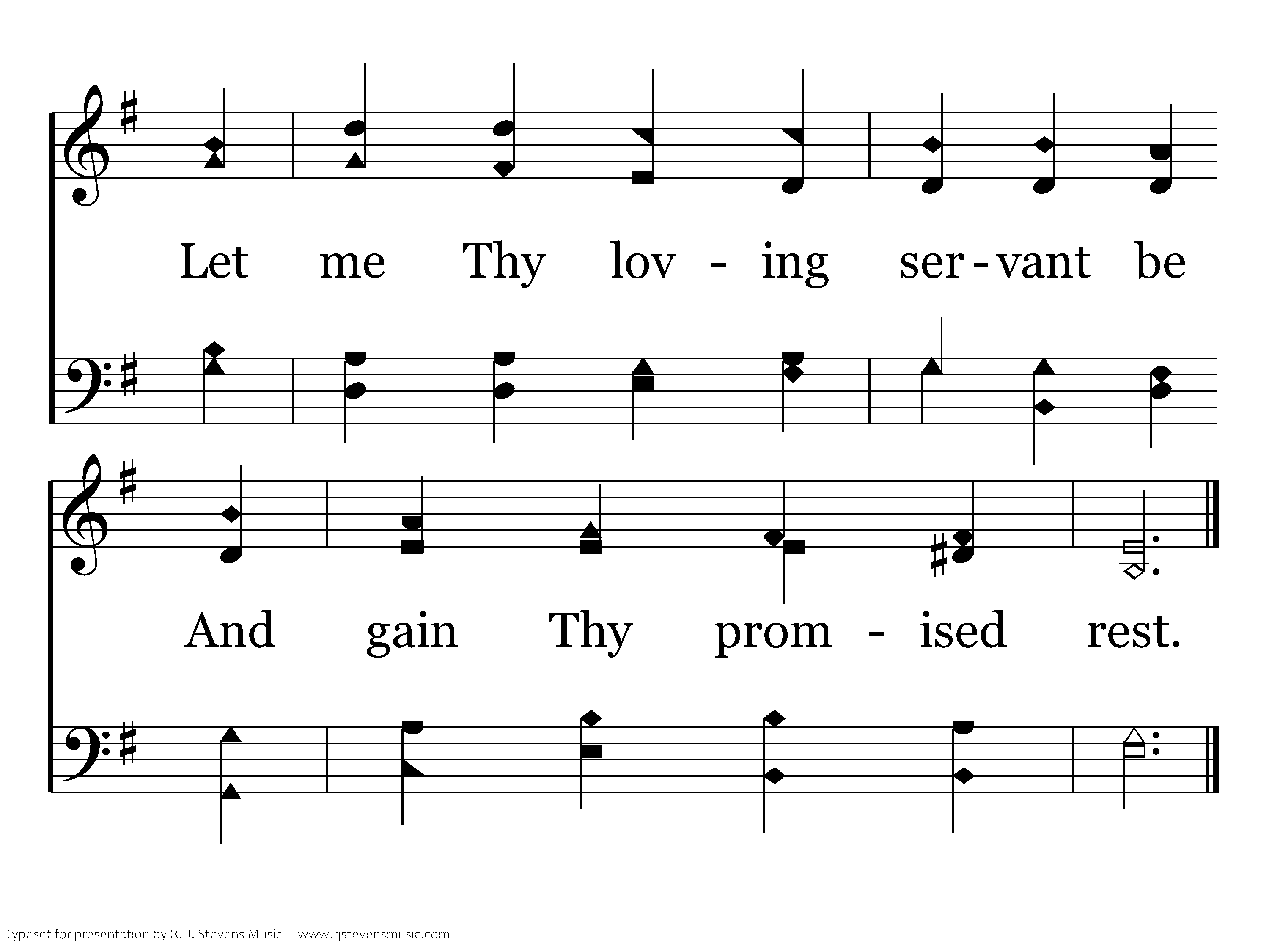 Lord Jesus, think on me, With care and woe oppressed; Let me Thy loving servant be And gain Thy promised rest.