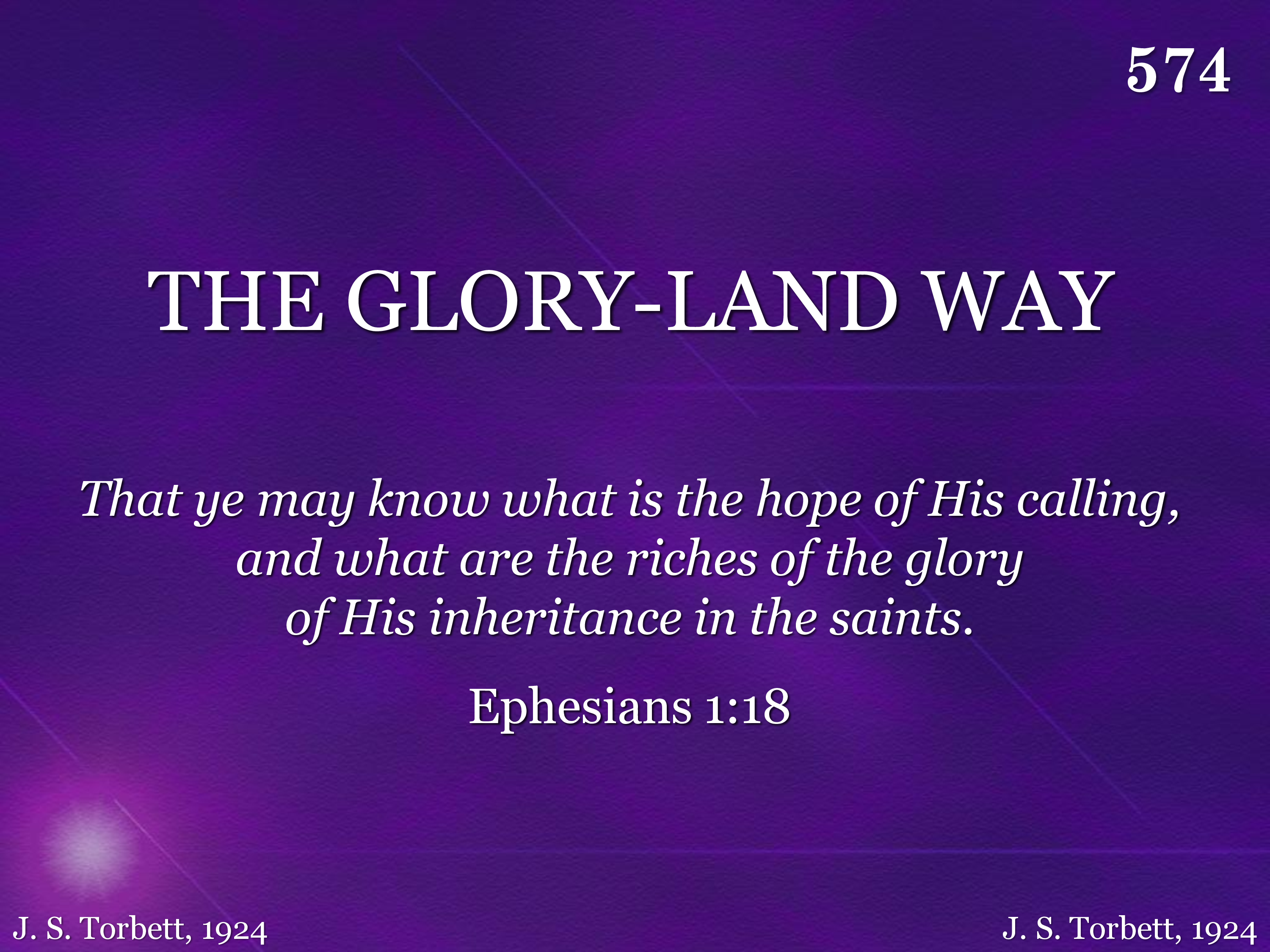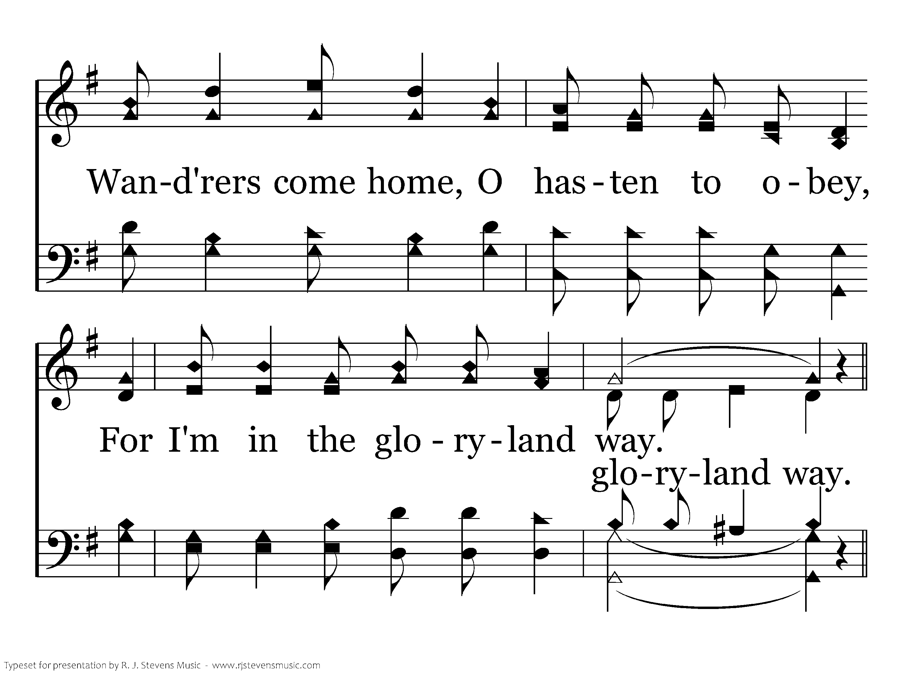 List to the call, the gospel call today, Get in the gloryland way; Wand'rers come home, O hasten to obey, For I'm in the gloryland way.