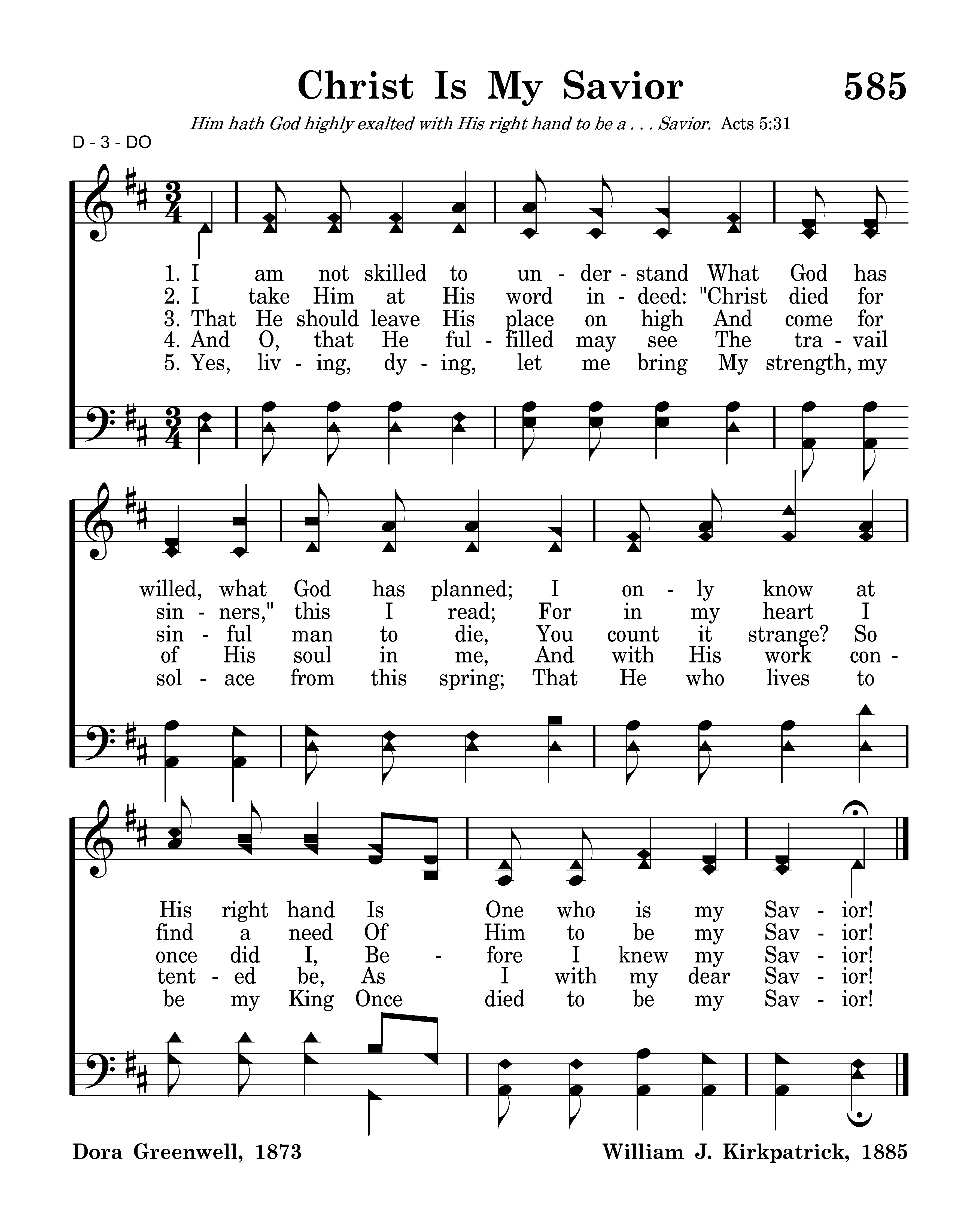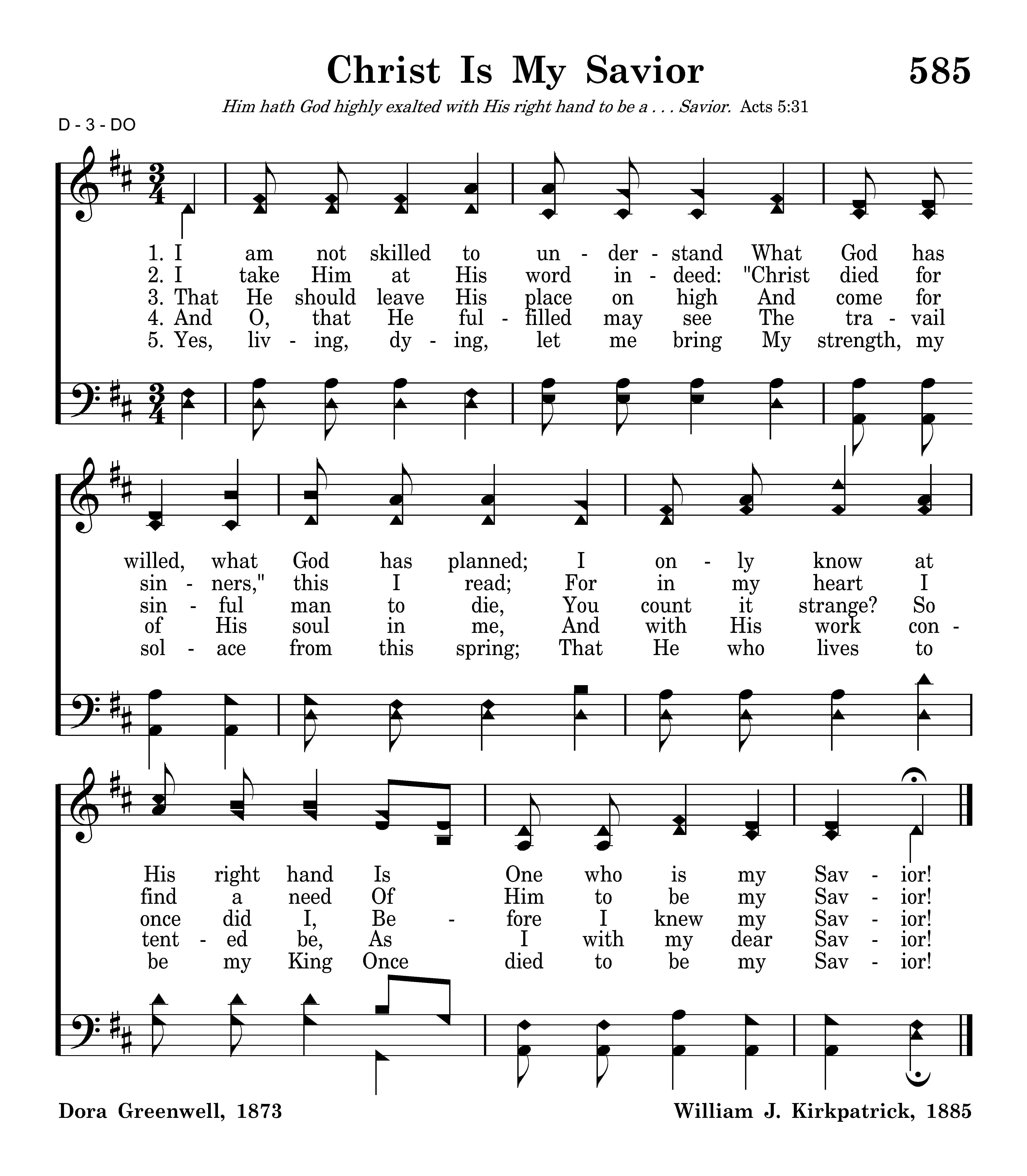 I am not skilled to understand What God has willed, what God has planned; I only know at His right hand Is One who is my Savior!