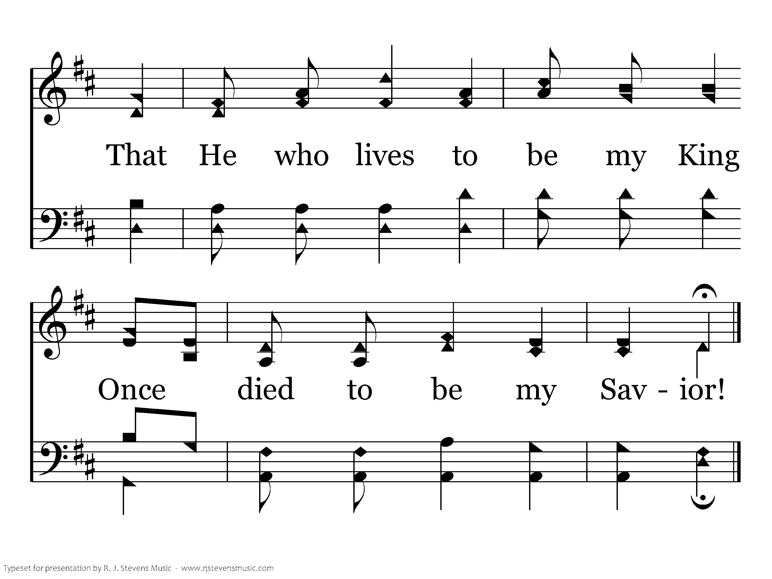 Yes, living, dying, let me bring My strength, my solace from this spring; That He who lives to be my King Once died to be my Savior!