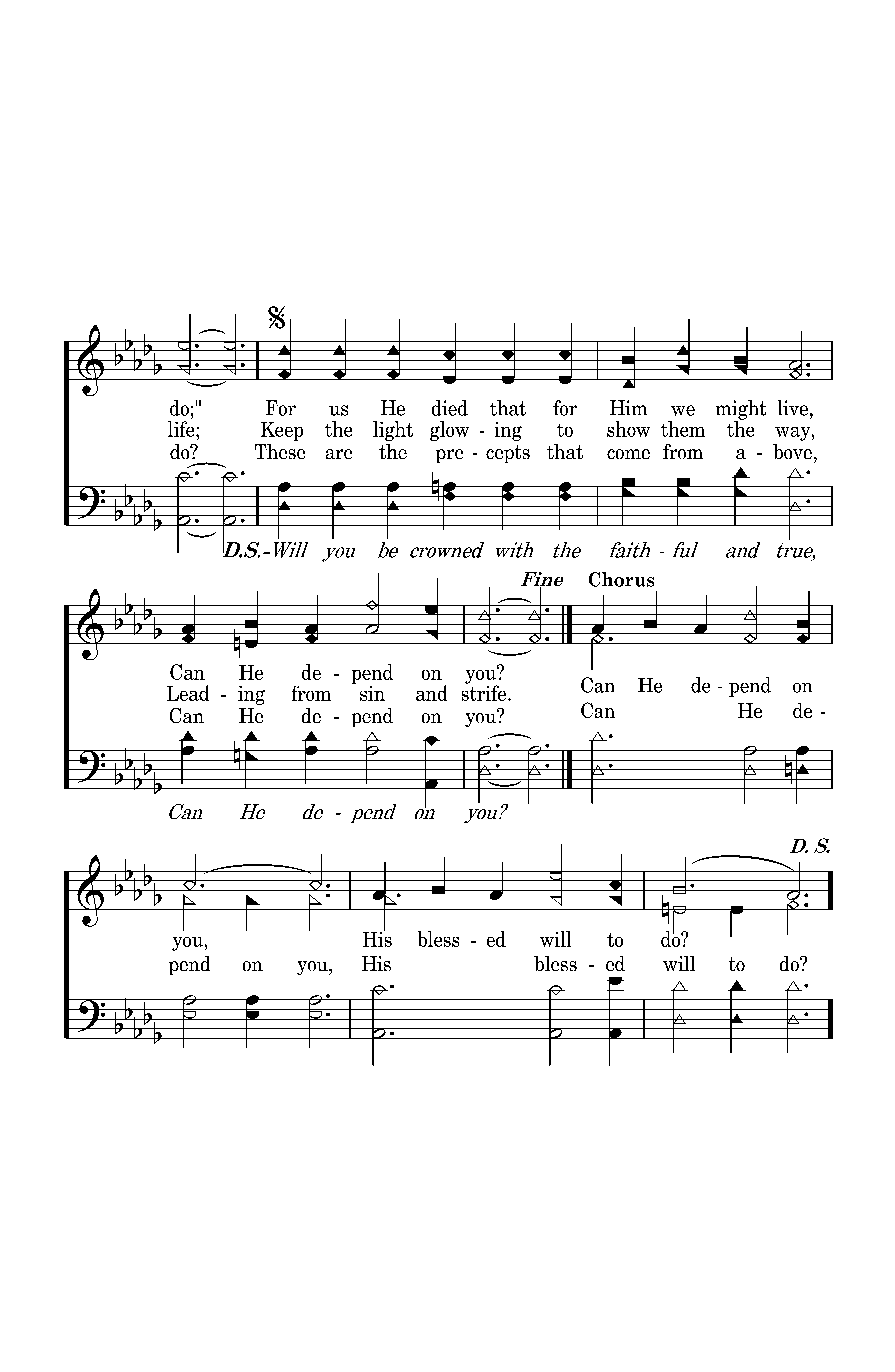Can He depend on you, His blessed will to do? Will you be crowned with the faithful and true, Can He depend on you?