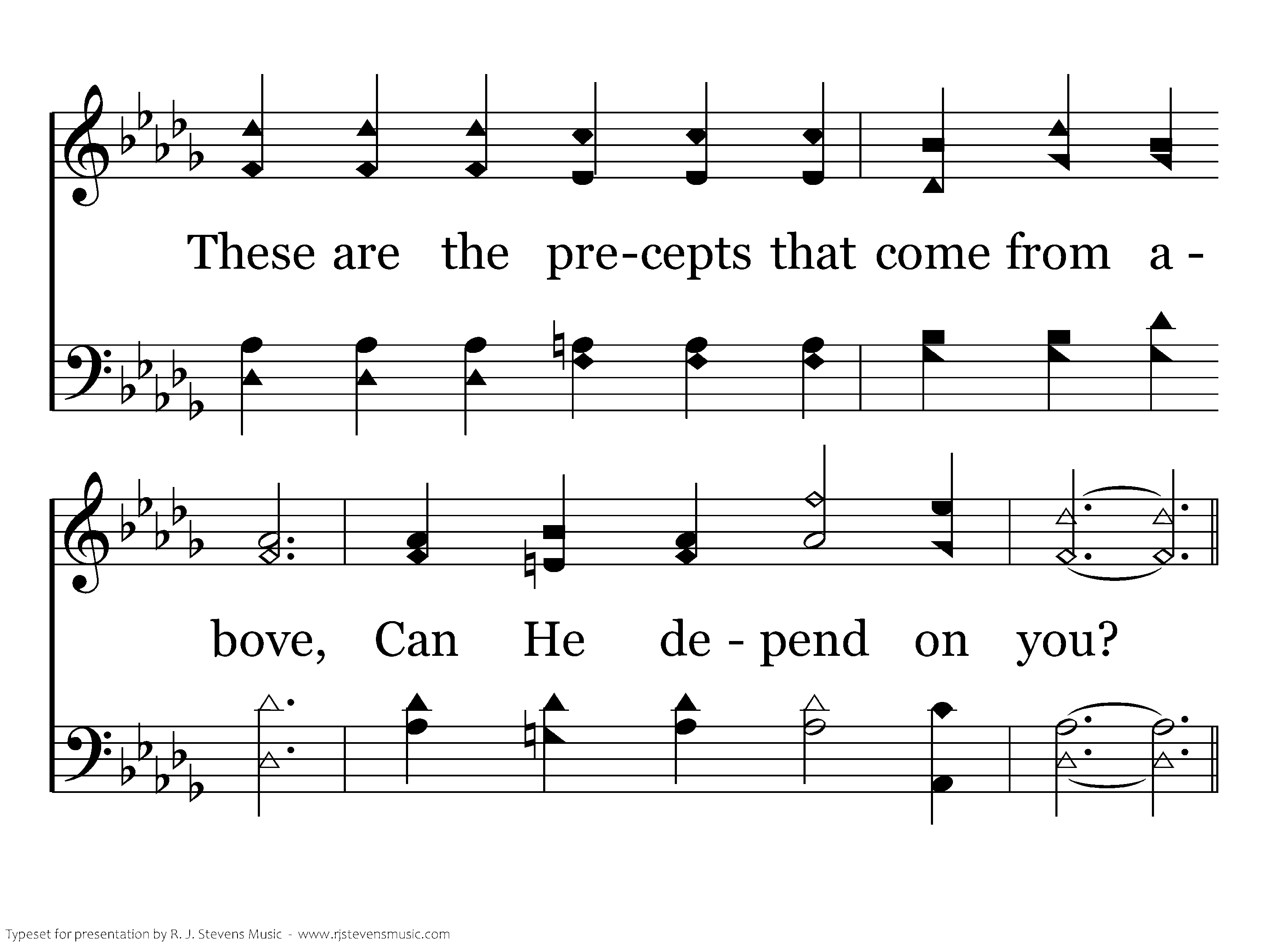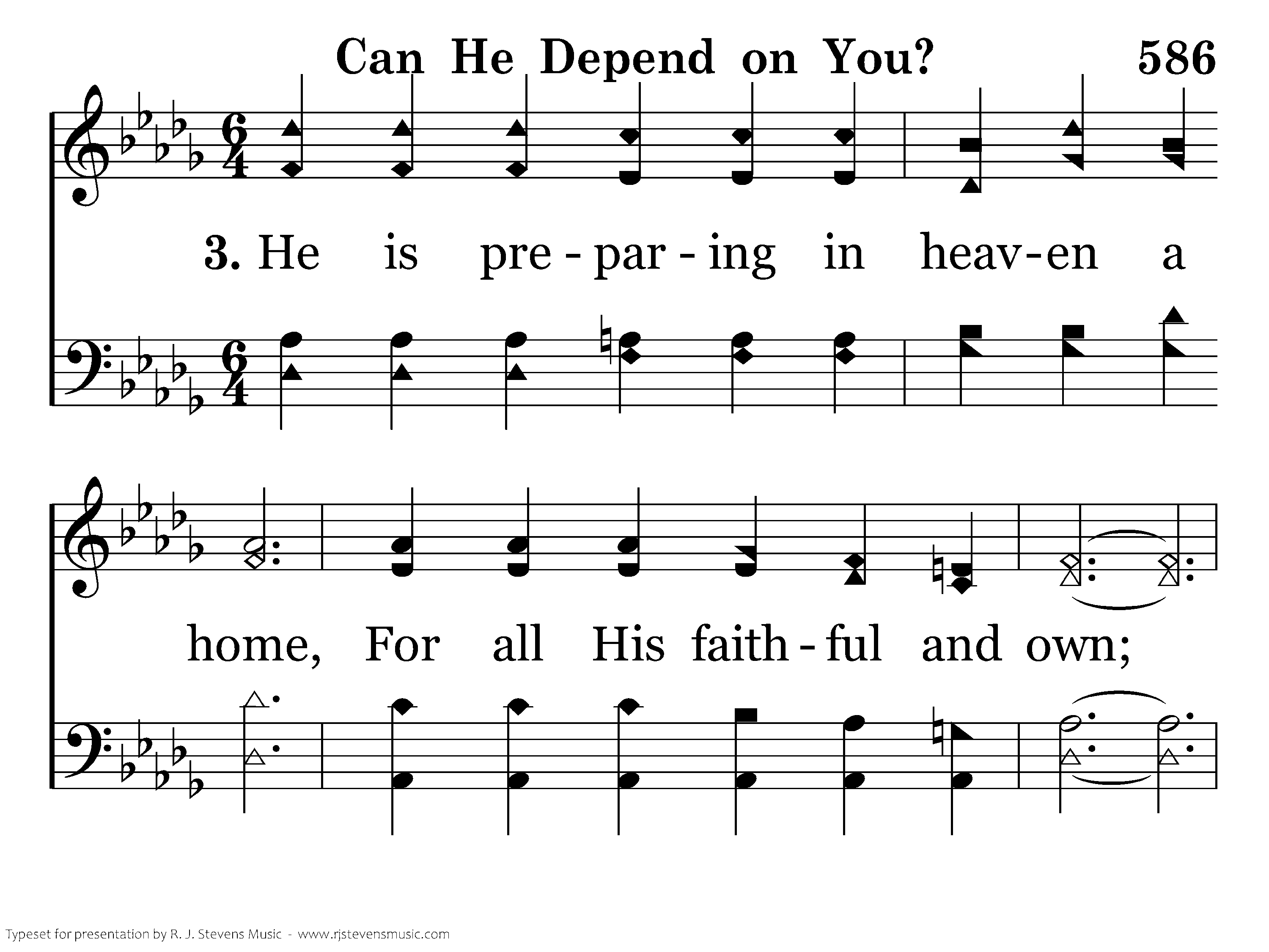 He is preparing in heaven a home, For all His faithful and own; Are you preparing to stand by His side, or in that day be denied? Have you told others the story of love, Showing them what they should do? These are the precepts that come from above, Can He depend on you?
