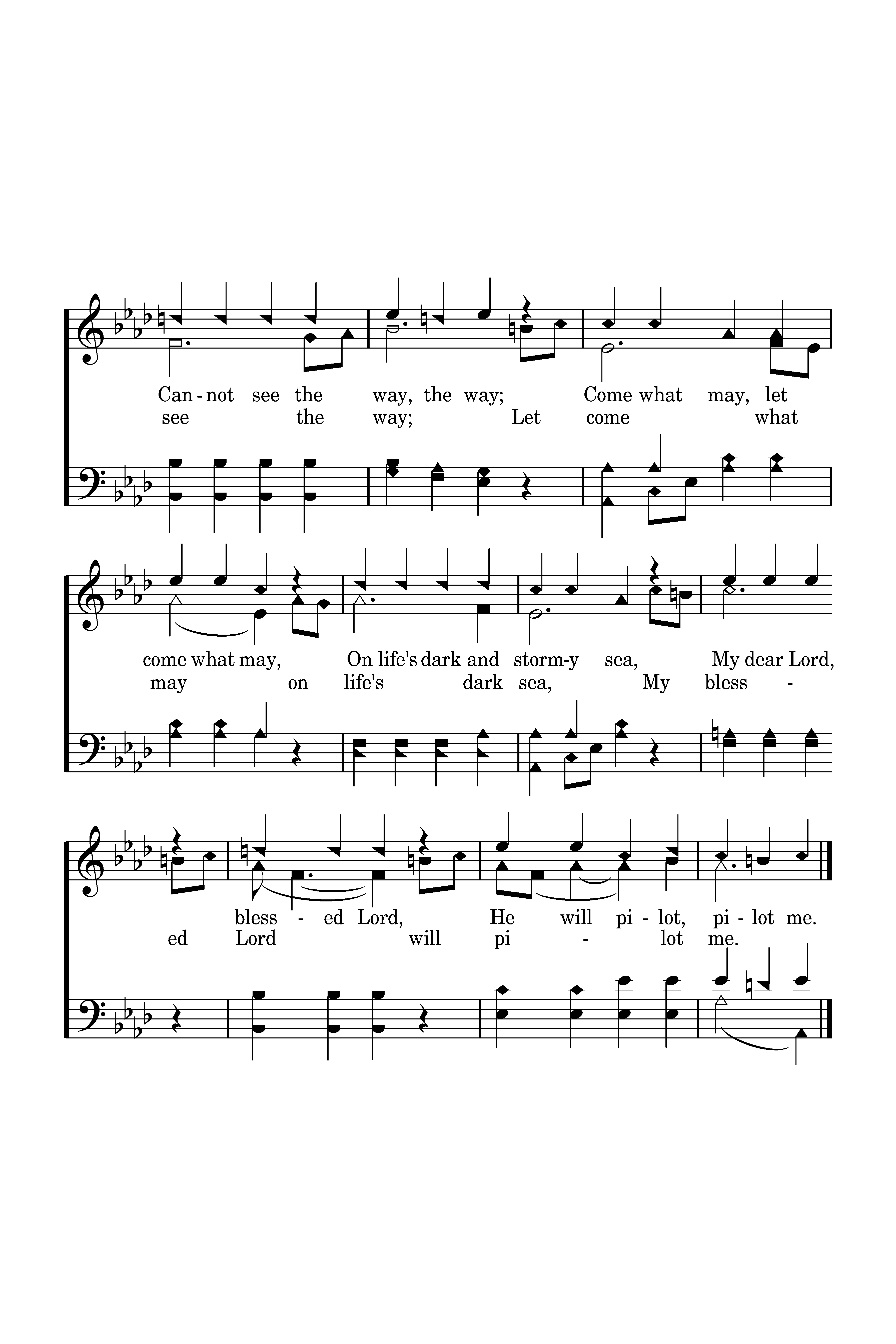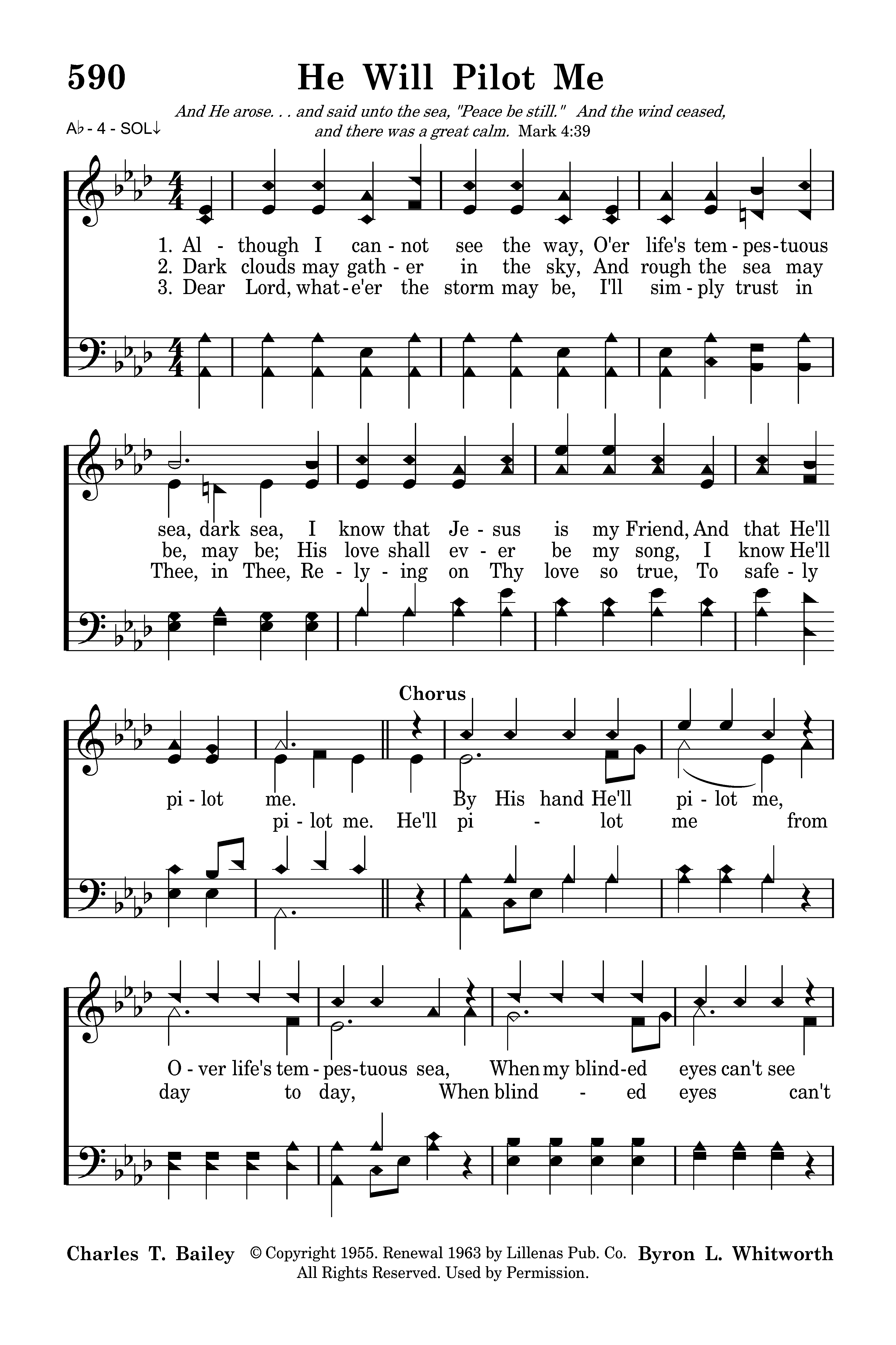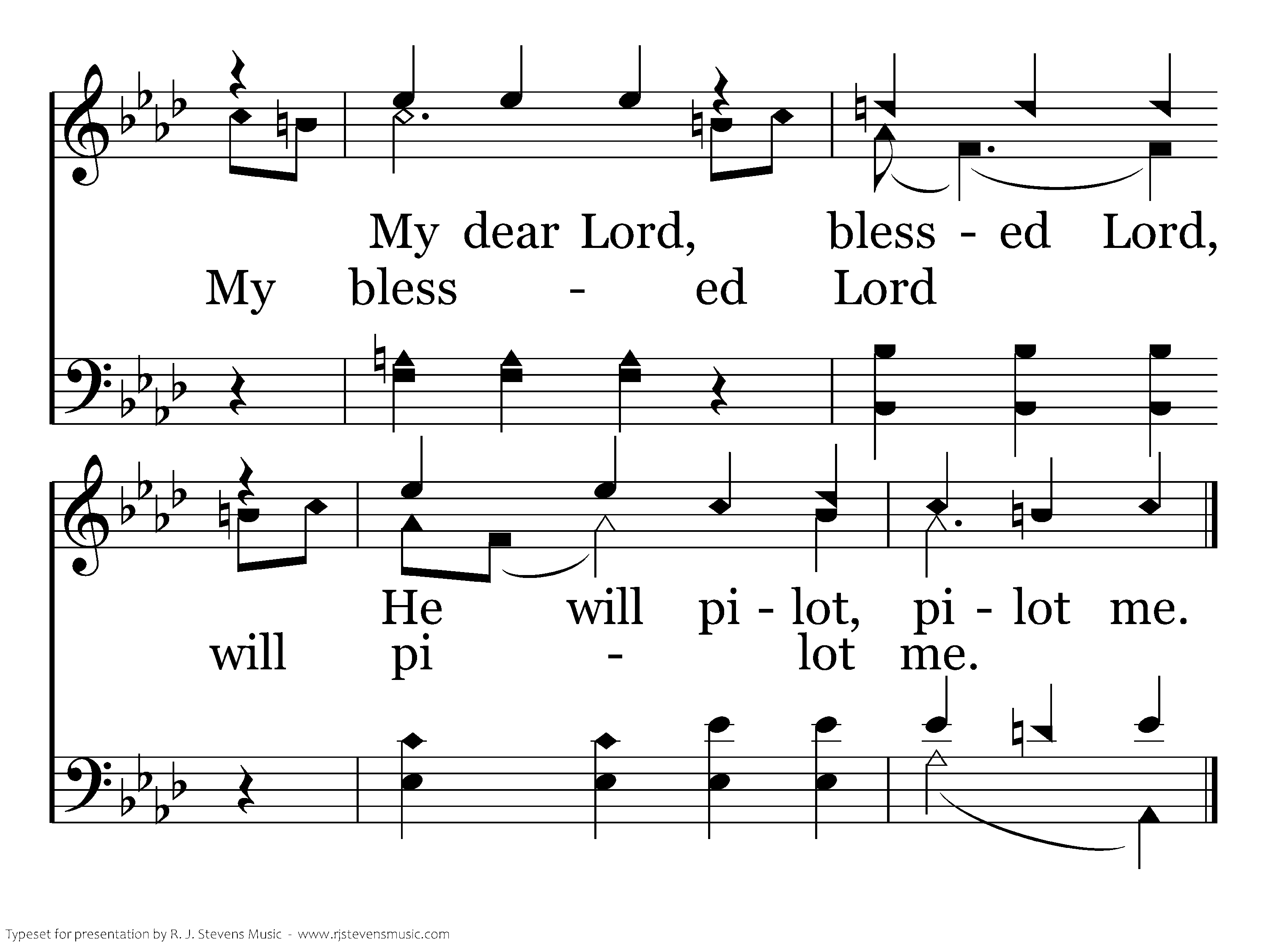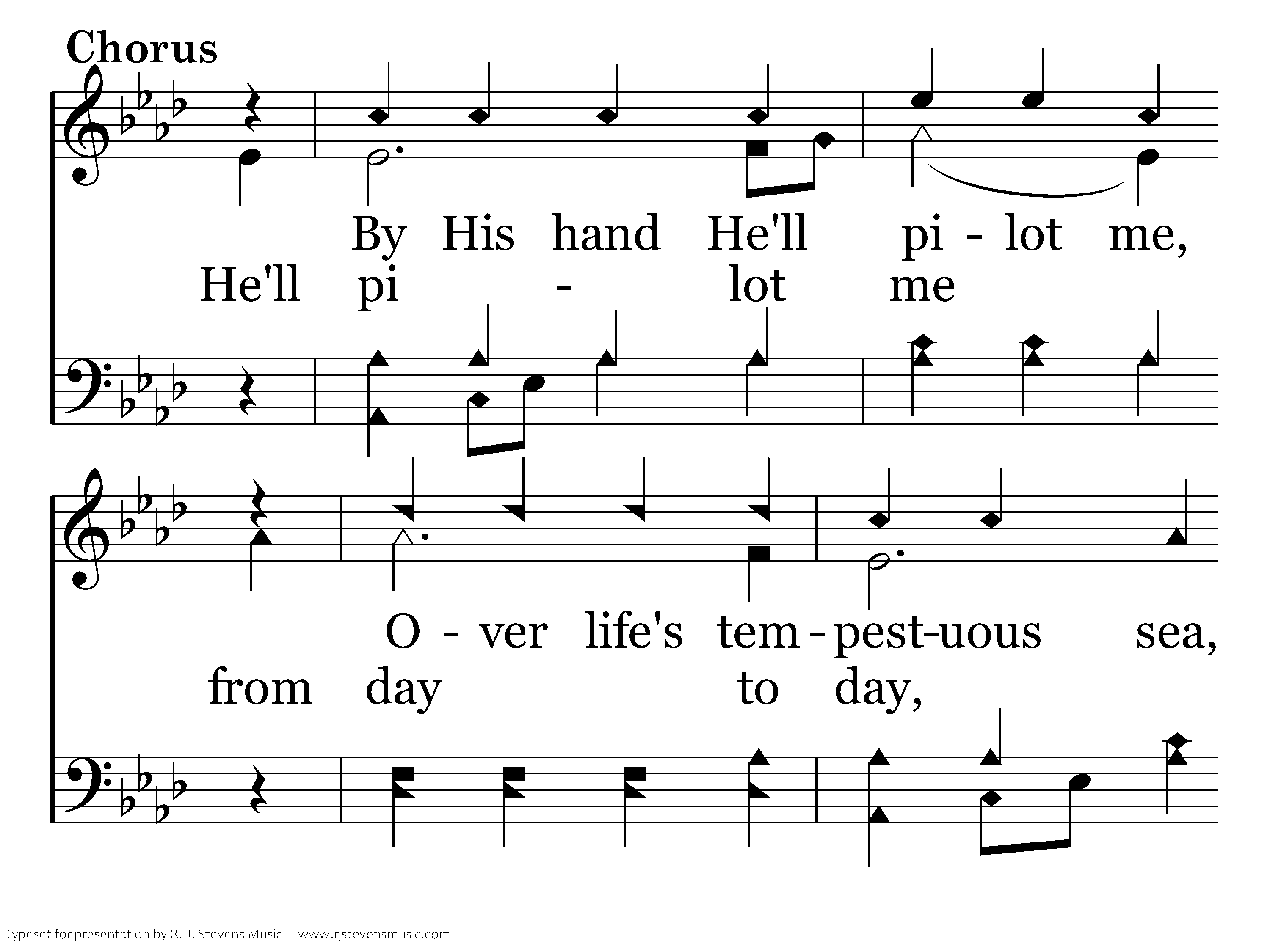 He'll pilot me from day to day, When blinded eyes can't see the way, Let come what may on life's dark sea, My blessed Lord will pilot me.