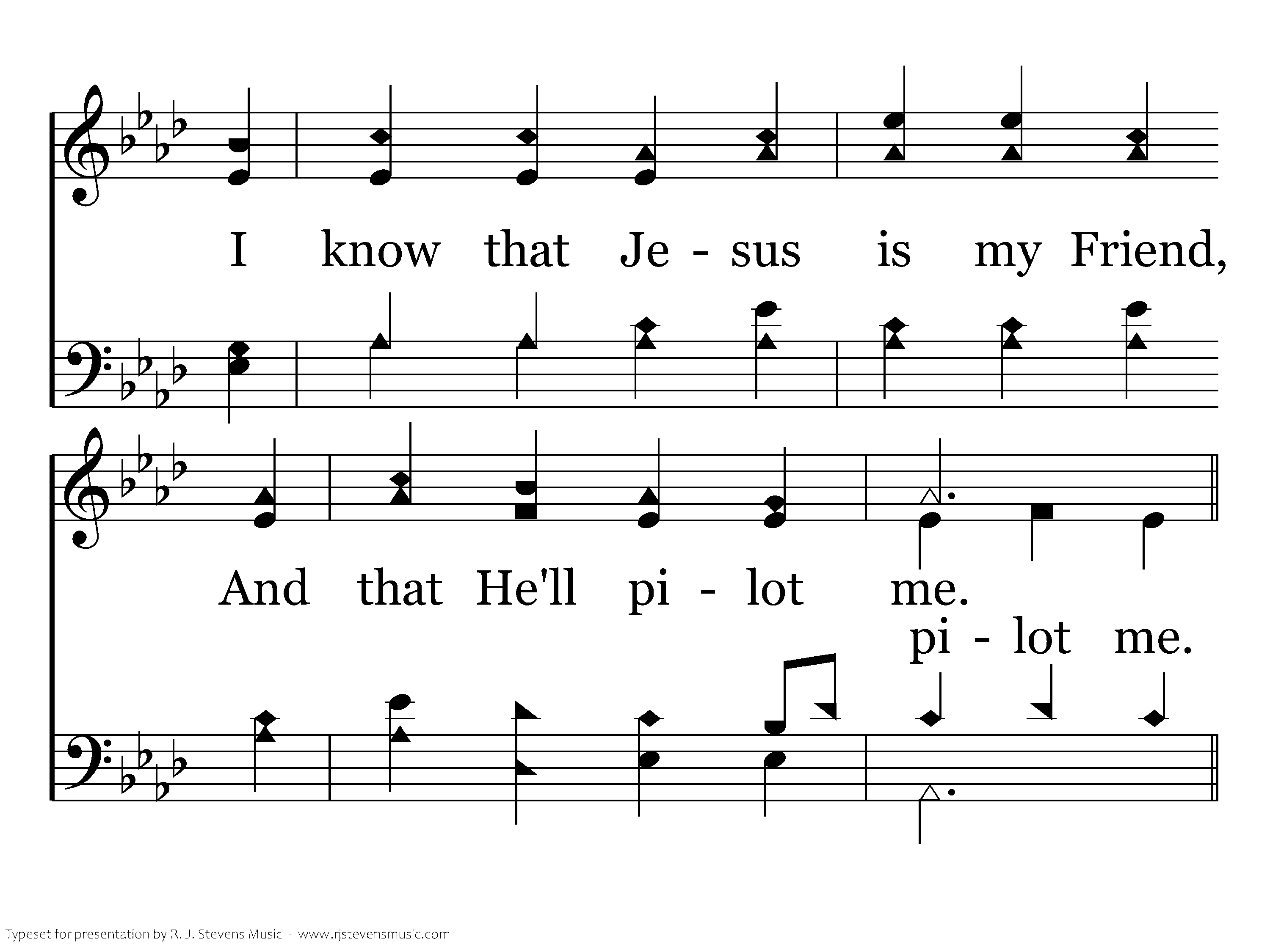 Although I cannot see the way, O'er life's tempestuous sea, I know that Jesus is my Friend, And that He'll pilot me.