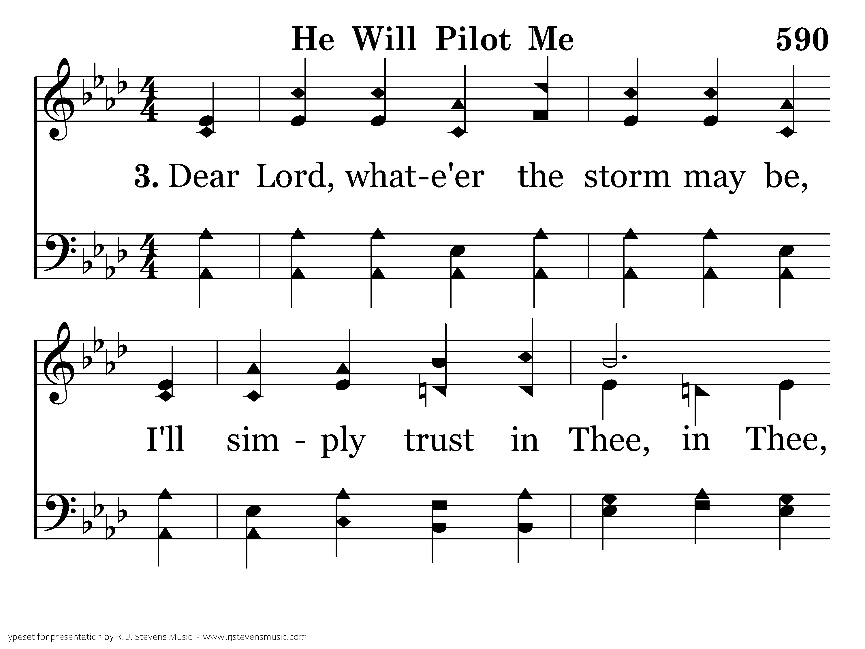 Dear Lord, whate'er the storm may be, I'll simply trust in Thee, Relying on Thy love so true, To safely pilot me.