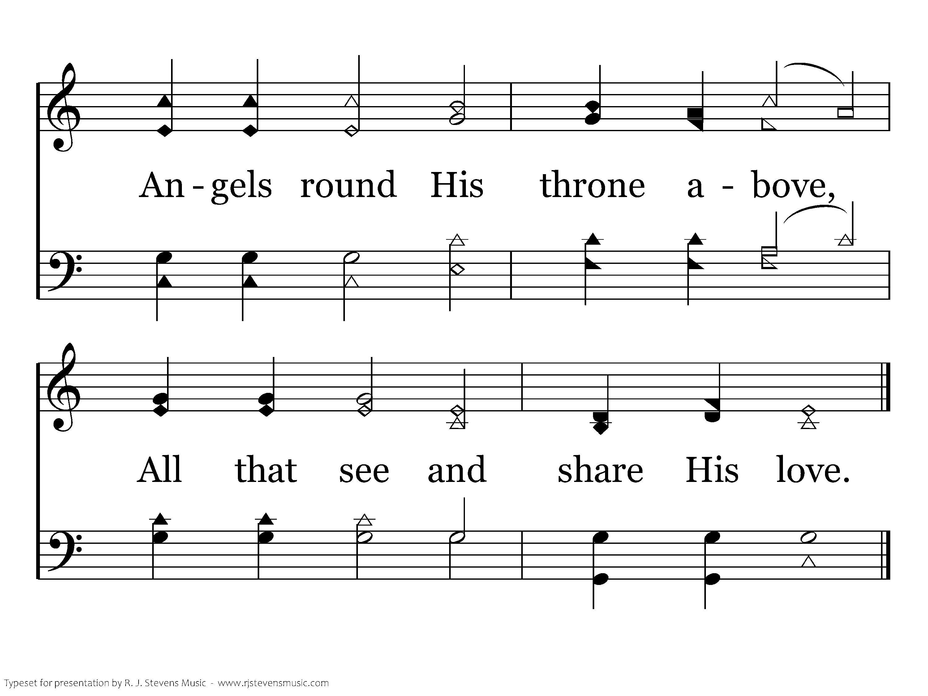 Praise the Lord, His glories show, Saints within His courts below, Angels round His throne above, All that see and share His love.